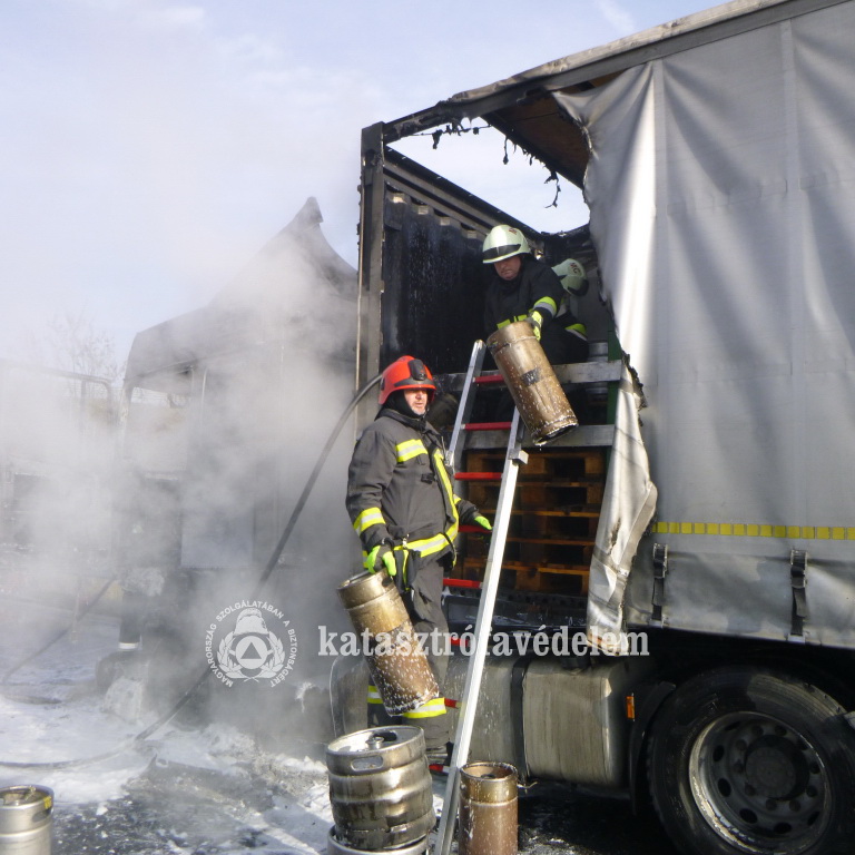 A szőkedencsi önkéntes tűzoltók érkeztek elsőként a helyszínre, akik rövid időn belül vízsugarakat szereltek, hogy megakadályozzák a tűz továbbterjedését a rakomány egészére. Pár perccel később a marcali hivatásos tűzoltók is bekapcsolódtak a lángok oltásába. Az egységek végül négy vízsugárral, csaknem fél óra alatt tudták teljesen eloltani a tüzet, majd visszahűtötték a felforrósodott alkatrészeket. Végül a tűzoltók biztonságba helyezték a pótkocsin szállított söröshordókat és rekeszeket. A kamionban csak a sofőr utazott, aki nem sérült meg a tűzeset során.