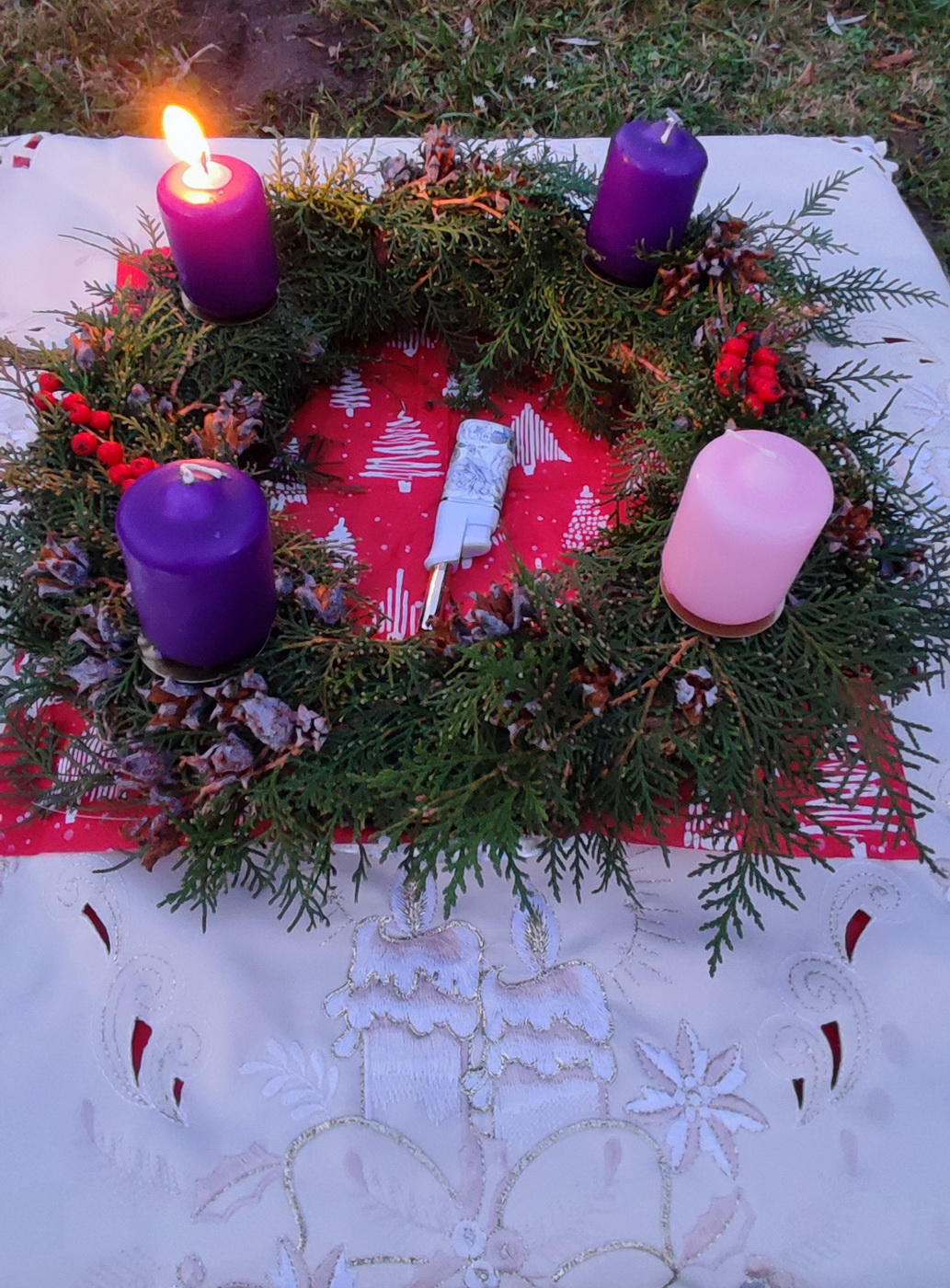 A boronkai adventi koszorút Papp István és a Boronkai Nyugdíjas Egyesület tagjai készítették el.