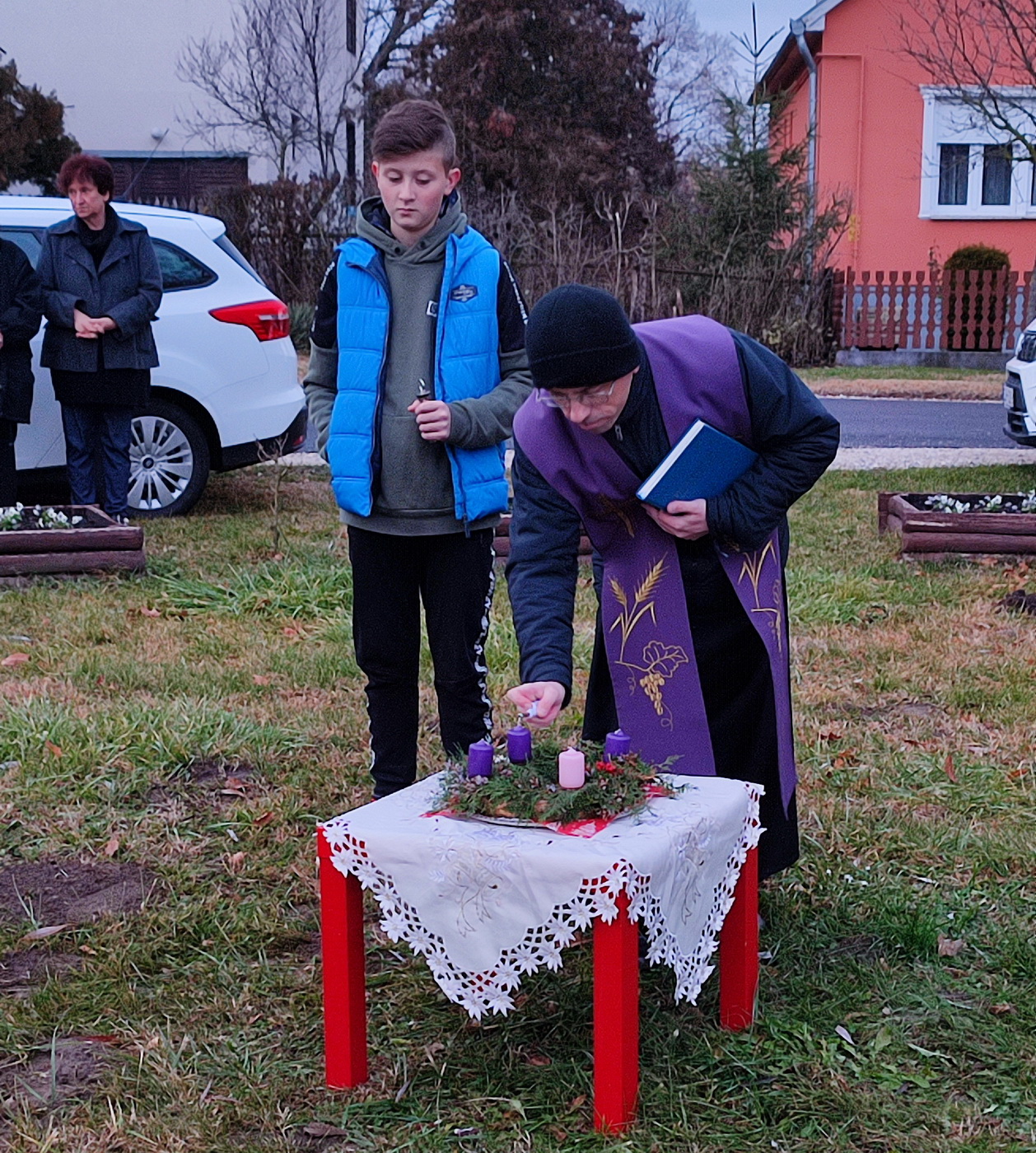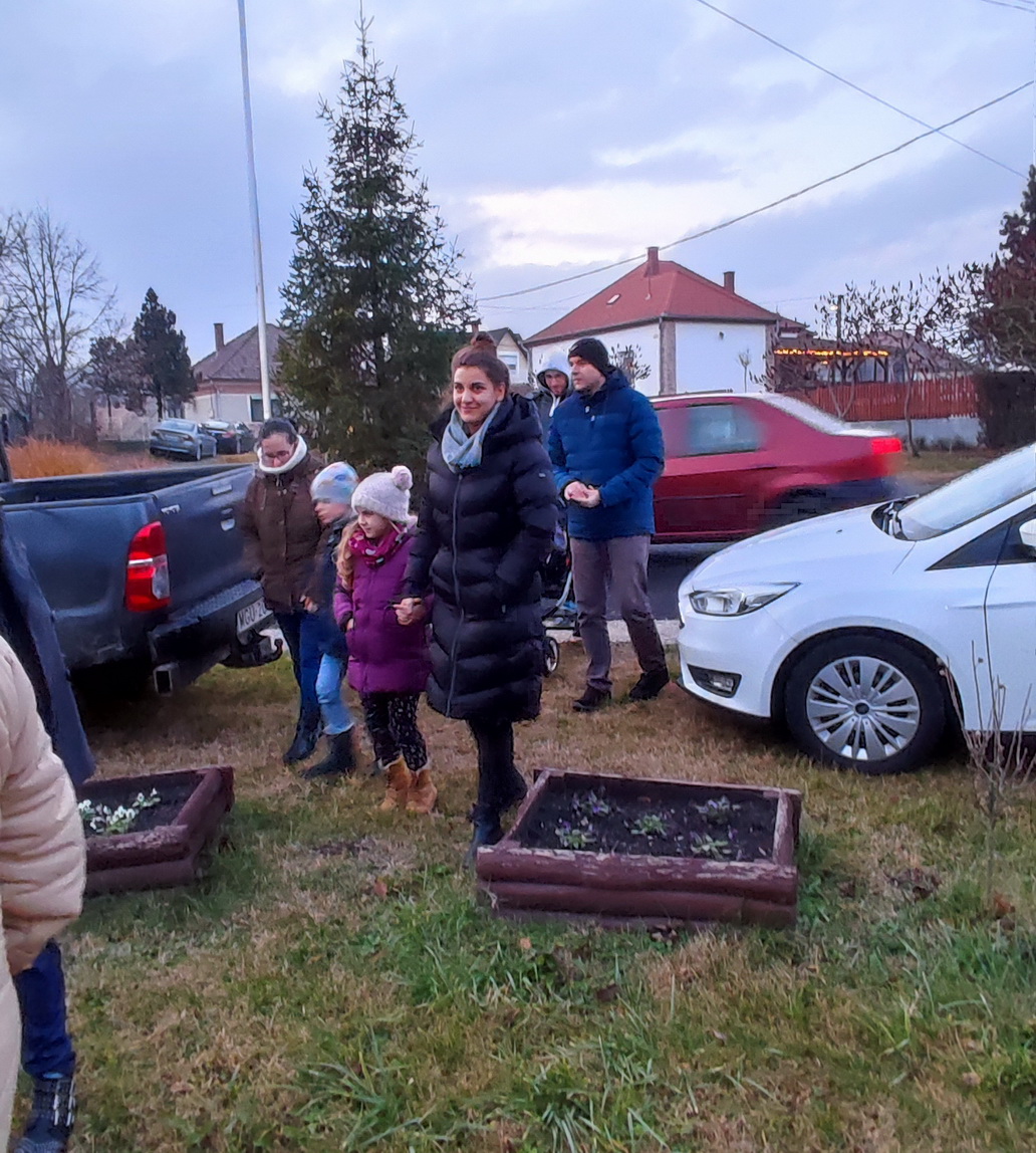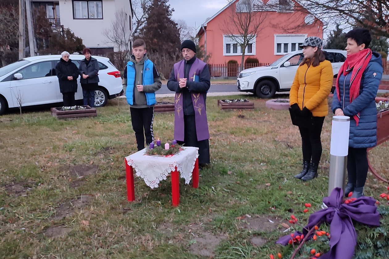 Szombat késő délután Németh József atya megáldotta a falu adventi koszorúját és meggyújtotta az első gyertyát. Elmondta milyen fontos a várakozás időszakában az egyszerűség, az egymásra figyelés és a szeretet. A szép számmal összegyűlt faluközösség a gyertyagyújtást követően még sokáig beszélgettek, hiszen örültek hogy egy újabb alkalom nyílt a közös együttlétre.