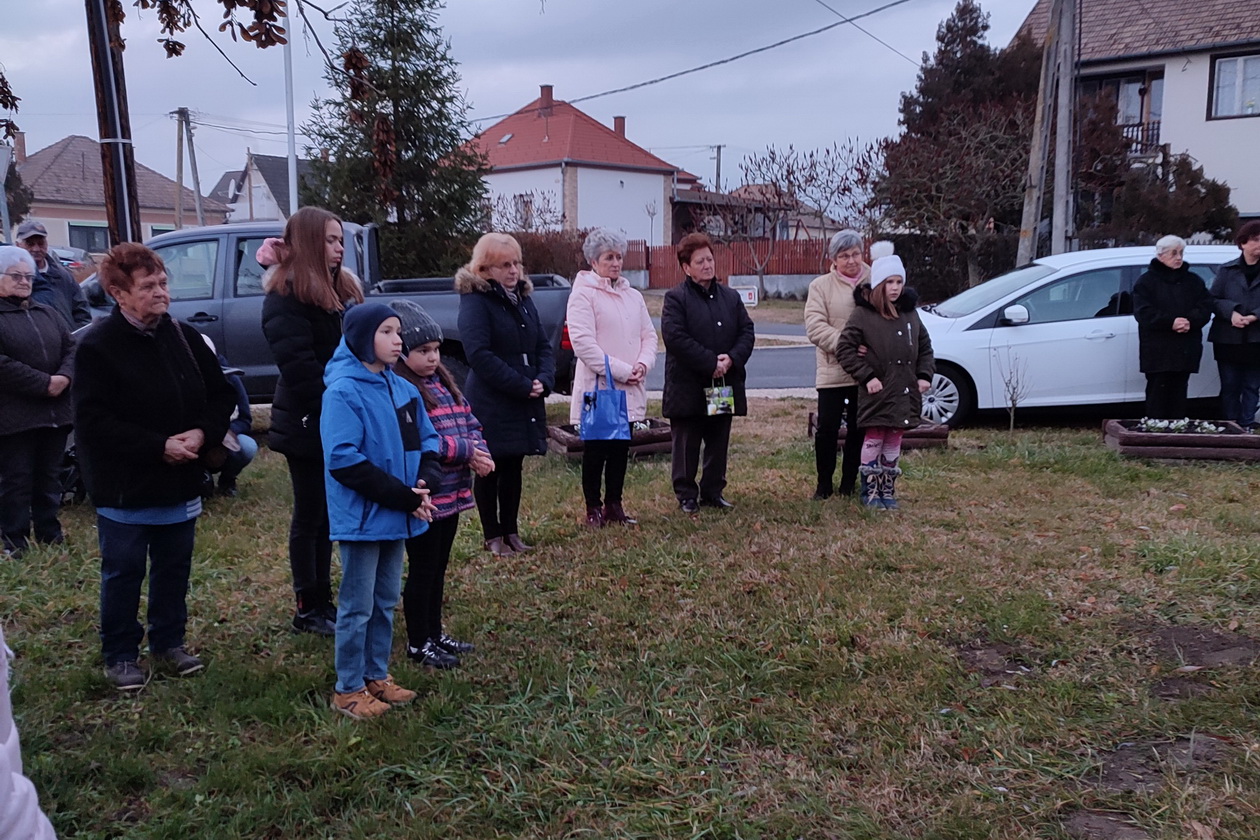 Szombat késő délután Németh József atya megáldotta a falu adventi koszorúját és meggyújtotta az első gyertyát. Elmondta milyen fontos a várakozás időszakában az egyszerűség, az egymásra figyelés és a szeretet. A szép számmal összegyűlt faluközösség a gyertyagyújtást követően még sokáig beszélgettek, hiszen örültek hogy egy újabb alkalom nyílt a közös együttlétre.