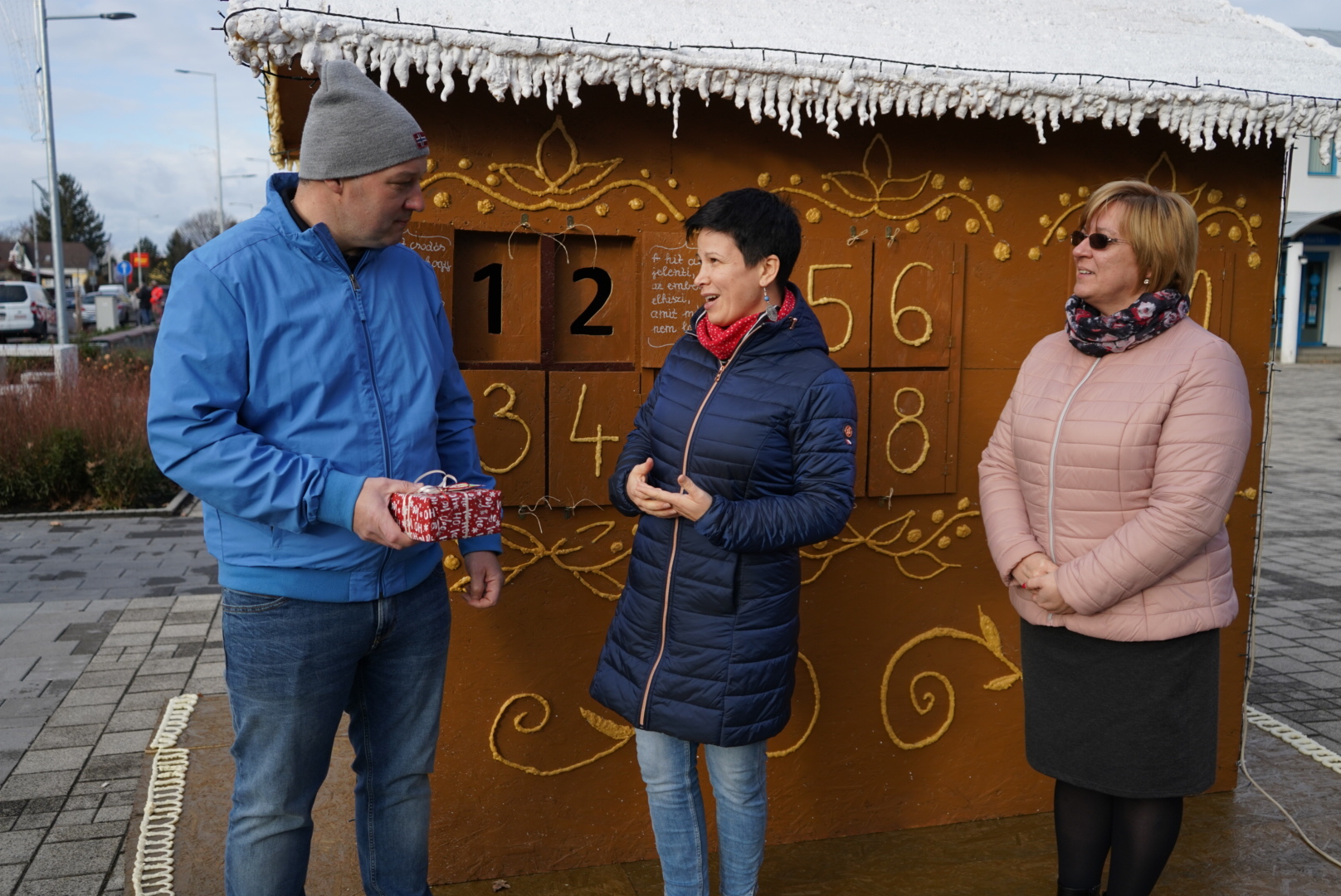 Kinyílt a harmadik ablak a Künzelsau téren felállított városi adventi naptáron. Ható András, a Kétmester Marcali KFT. képviseletében nyitotta ki az ablakot és adta át pénzbeli felajánlását a Bóbita Óvoda részére.