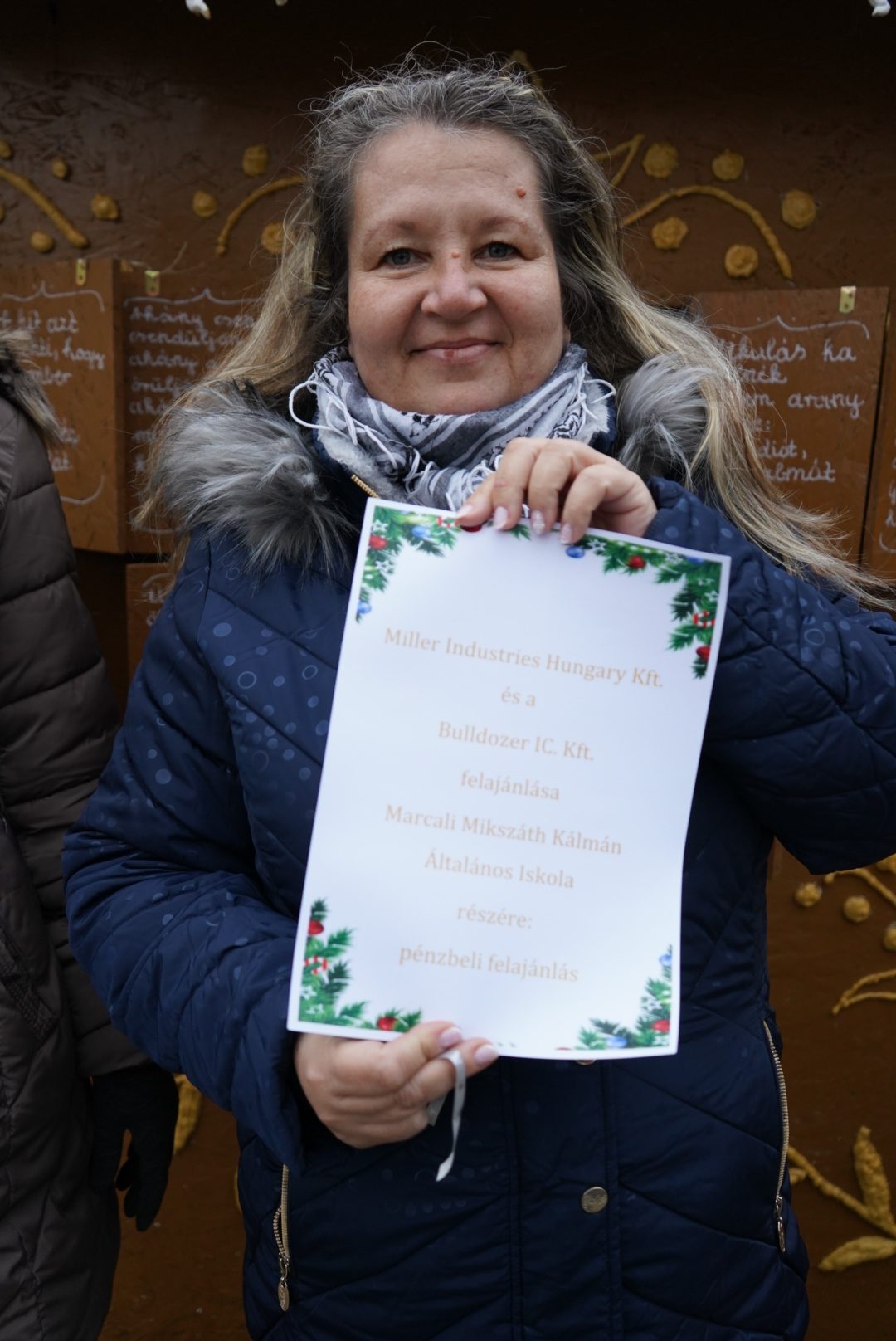 A tizedik ablak a Miller Industries Hungary Kft. és a Bulldozer IC. Kft. pénzbeli felajánlását rejtette. Az ajándékot Jobbágyné Szarka Tímea, a Marcali Mikszáth Kálmán Általános Iskola megbízott igazgatója vette át.