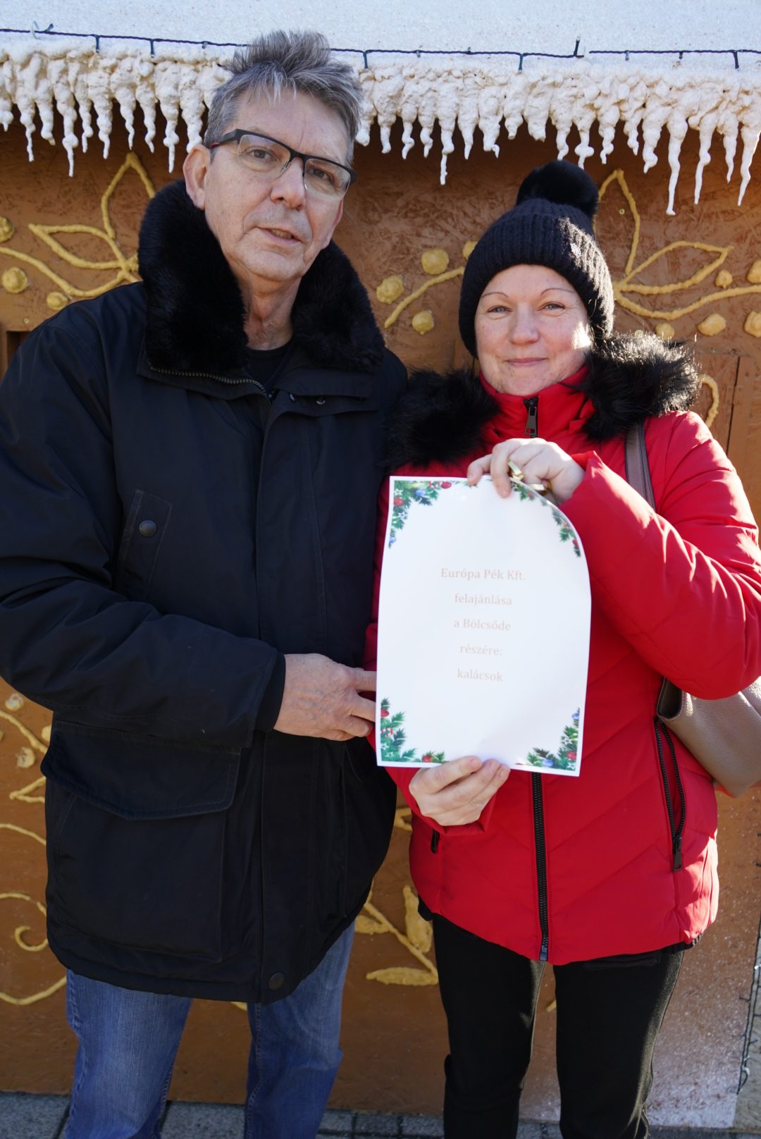 Varga Béla az Európa Pék Kft. ügyvezető igazgatója nyitotta ki az ablakot és adta át a cég ajándékát a Bölcsőde intézményvezetőjének, Pápai Évának.