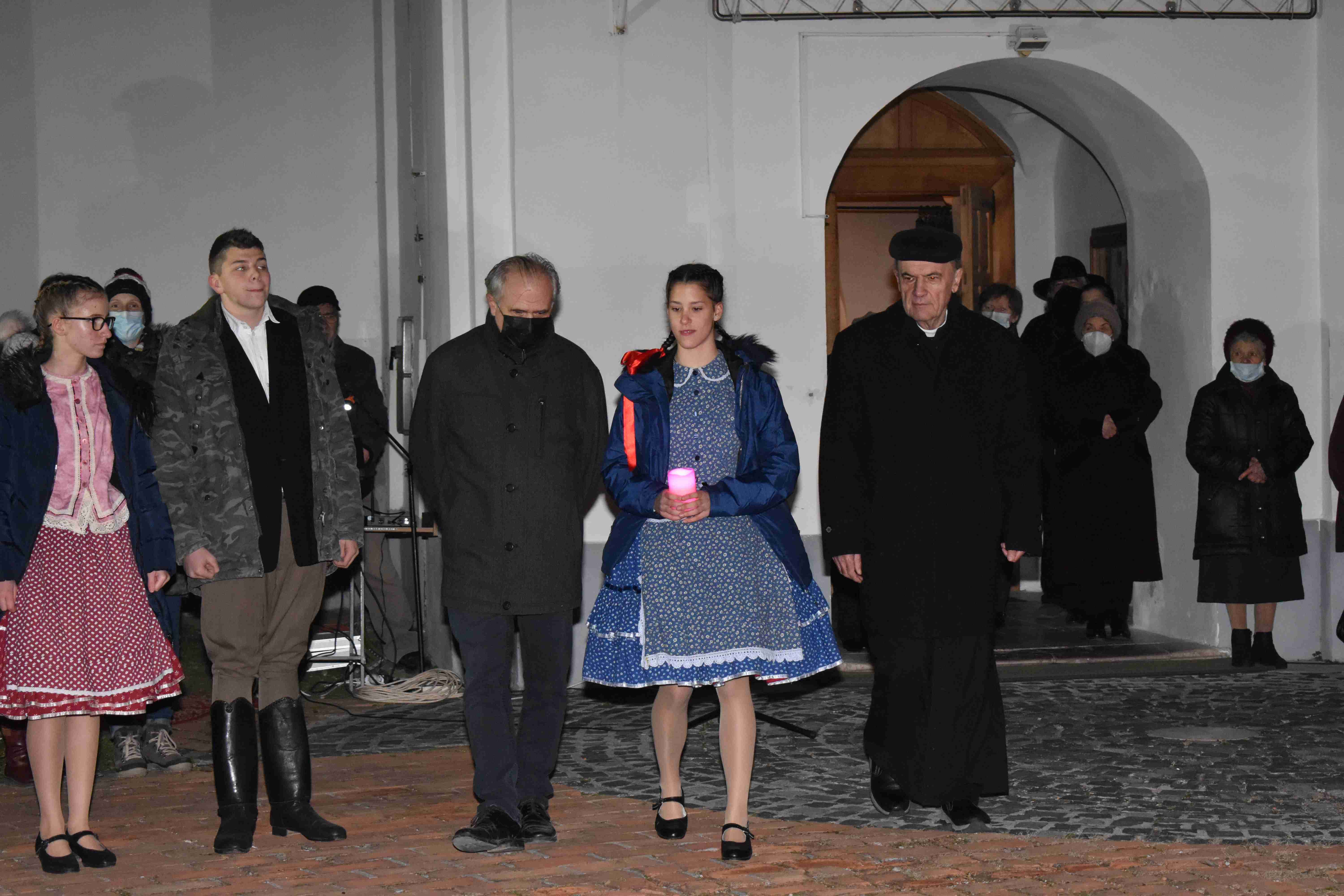 A megjelenteket Kiss Iván c. prépost, plébános köszöntötte, majd bevezető gondolatai utána marcali hittanos diákok ünnepi prózai-táncos összeállítása következett. A 20 fős gyermekcsoport a Noszlopy Gáspár Általános és Alapfokú Művészeti Iskola Hidas Frigyes Alapfokú Művészeti Iskoláját képviselte. A műsor narrátora Király Júlia volt. A táncot Takács Gábor és Takács Gáborné tanították be. A Noszlopy iskolát Patkó Imre igazgató, a művészeti iskolát pedig Weinhardt-Kozma Zsófia képviselte.