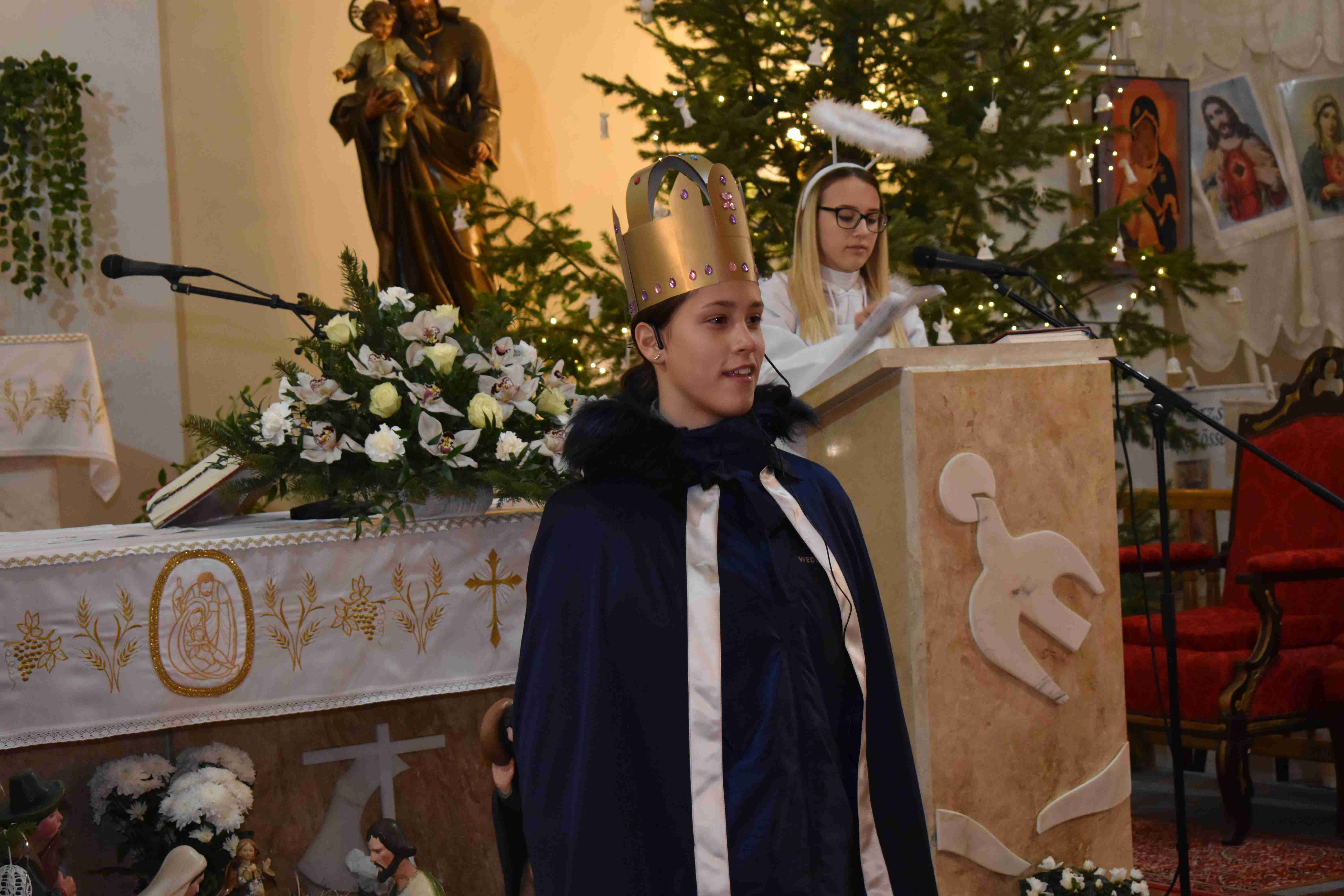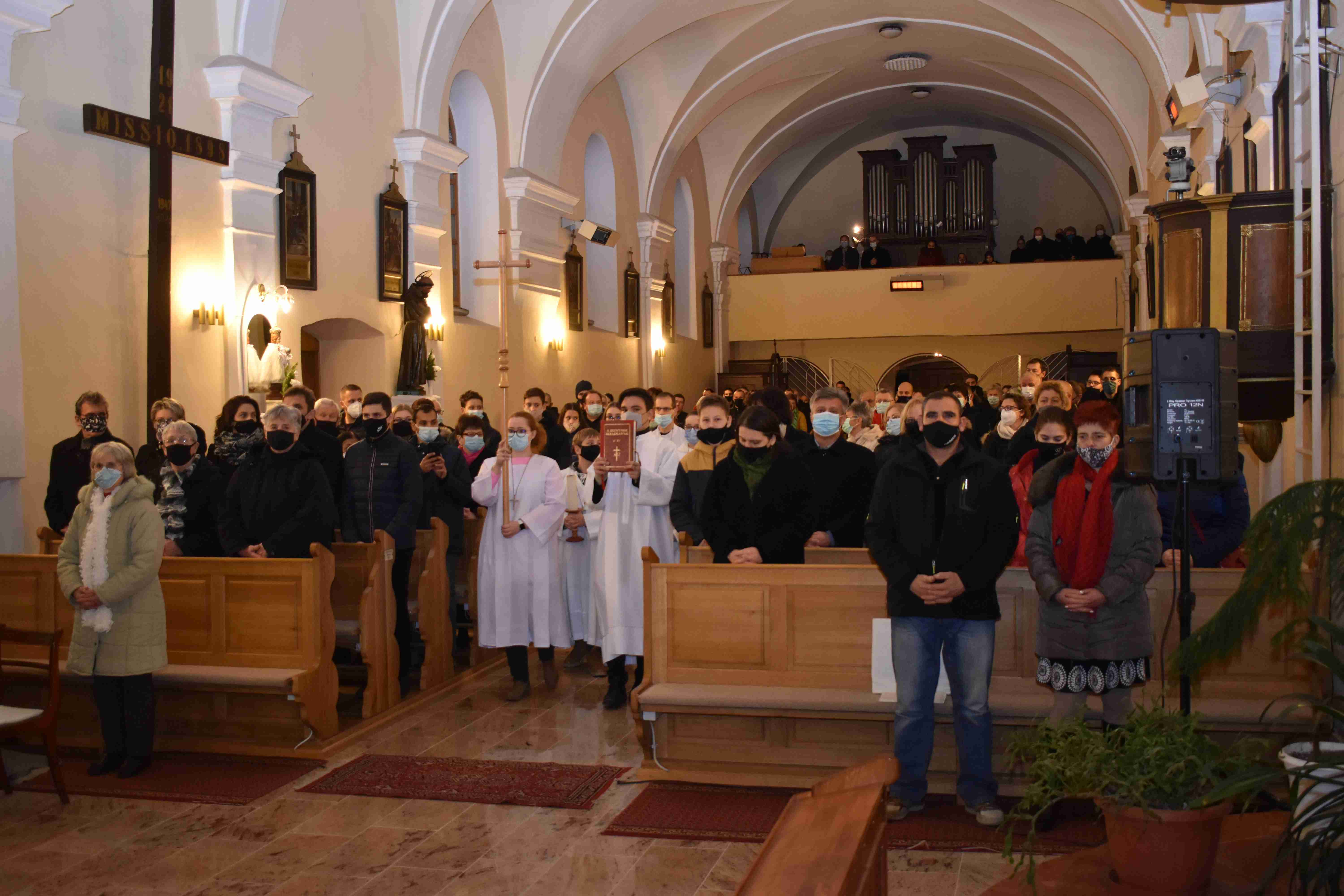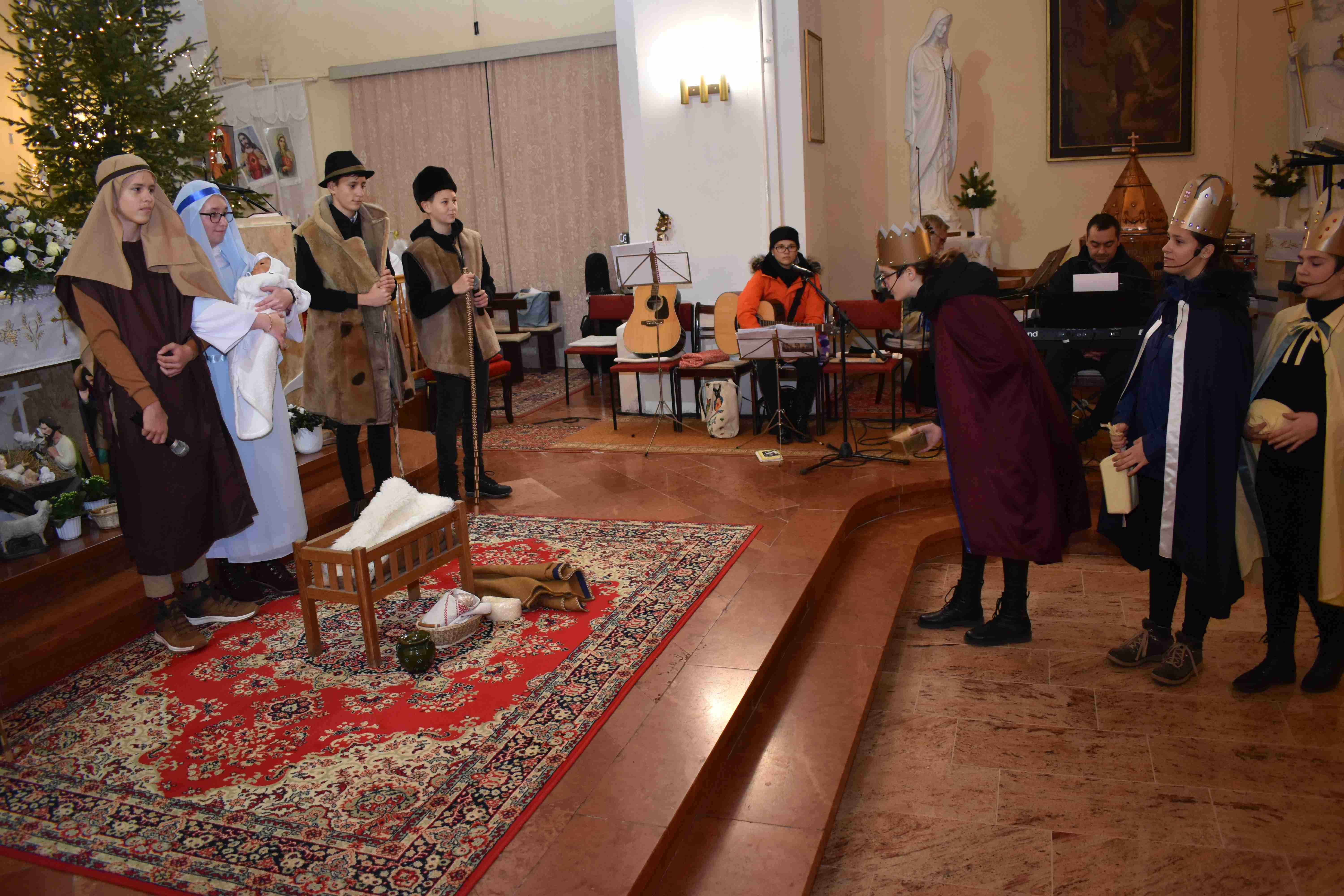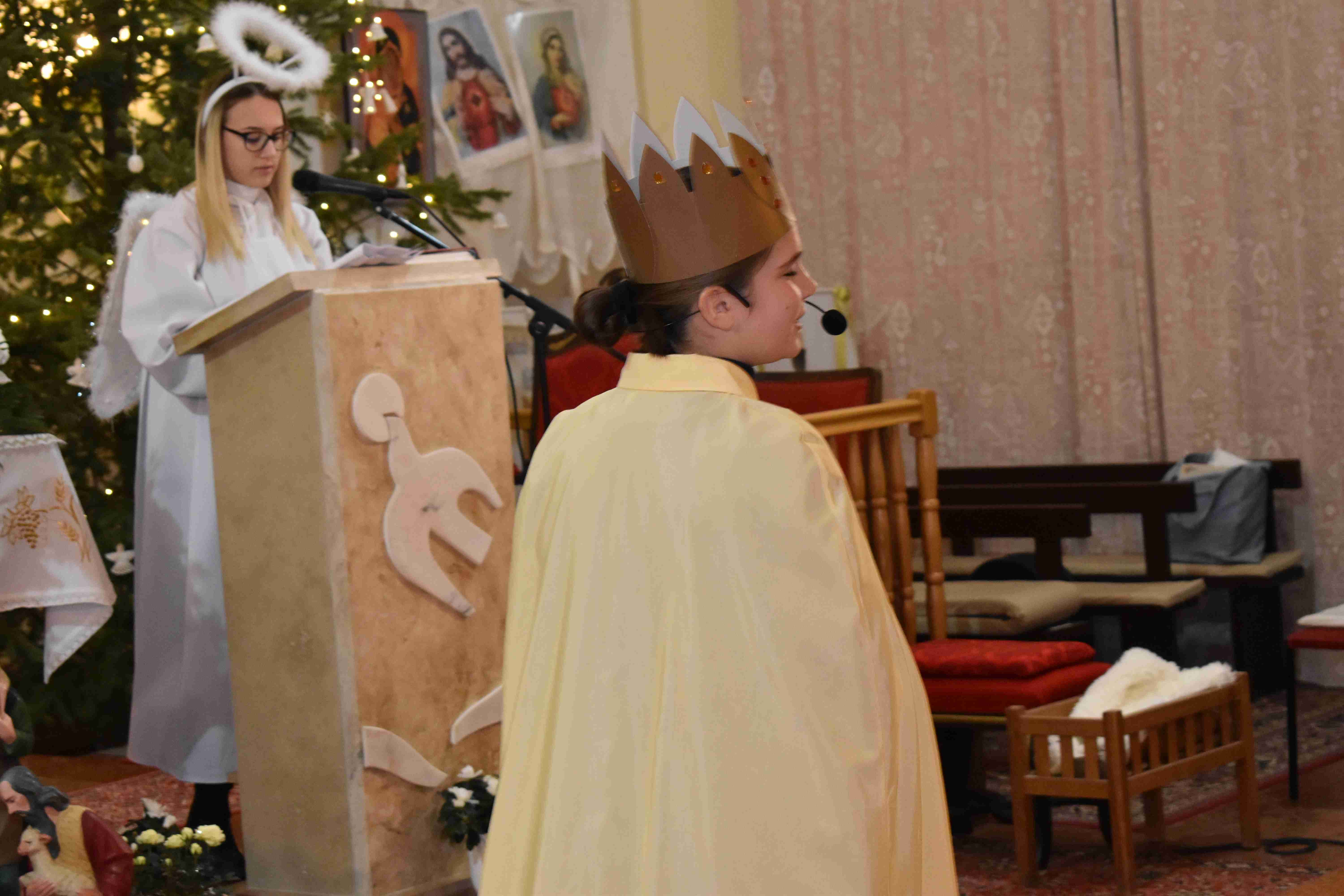 2021. december 24-én, pénteken, Szenteste 23.30 órakor, a Noszlopy iskola 15 hittanos tanulójának pásztorjátékával kezdődött a karácsonyi ünnepség a Gyümölcsoltó Boldogasszony plébániatemplomban.