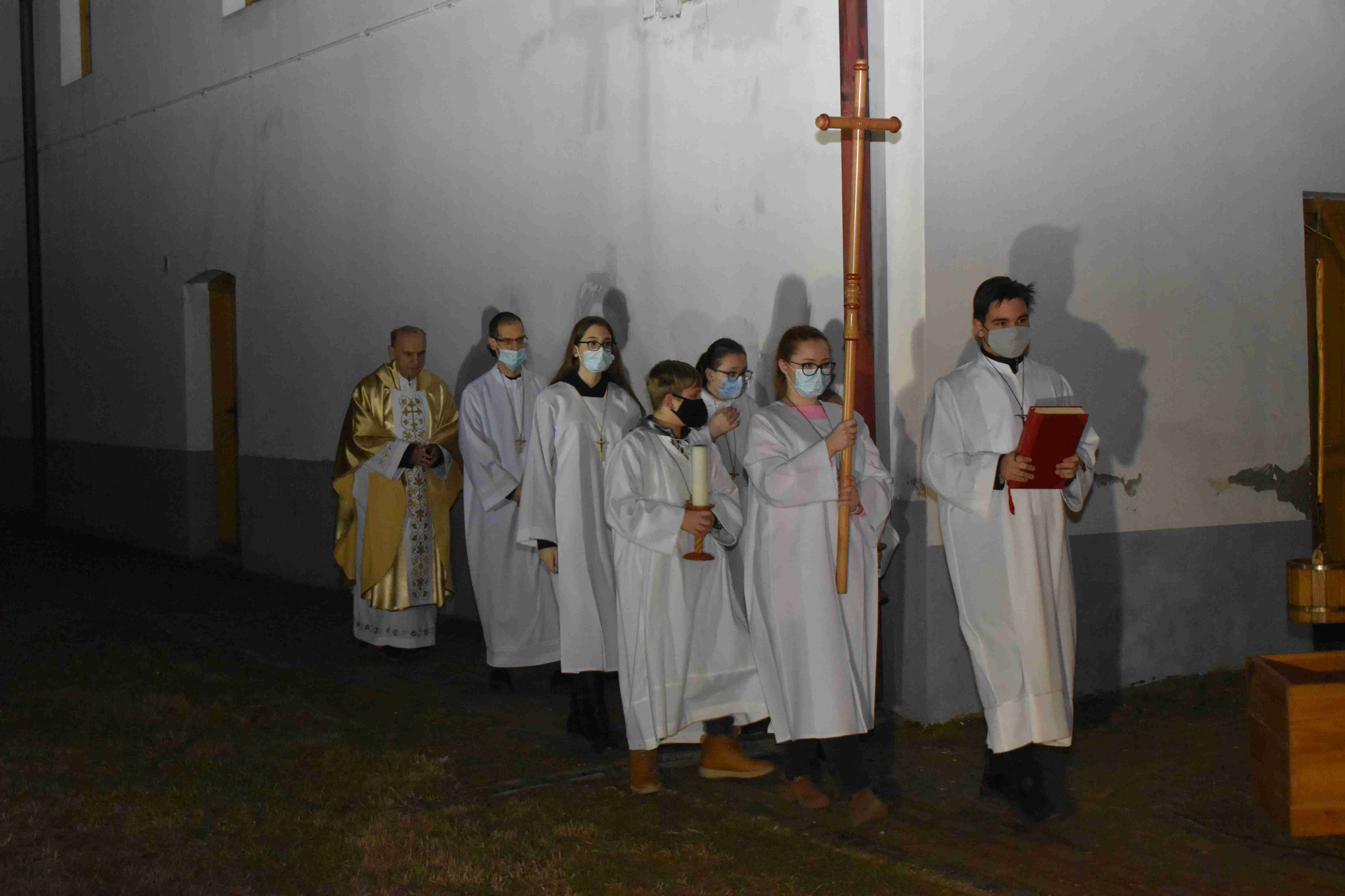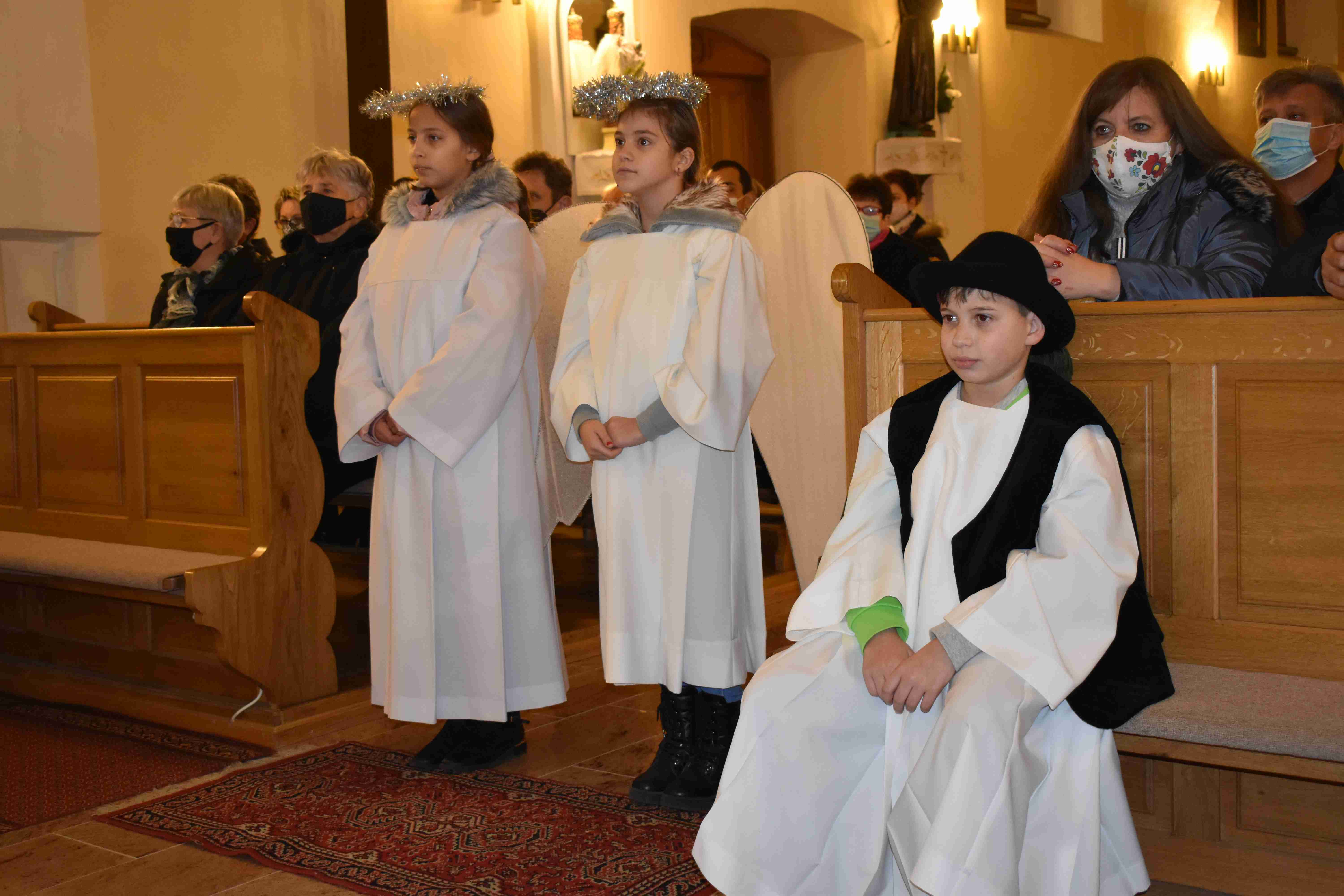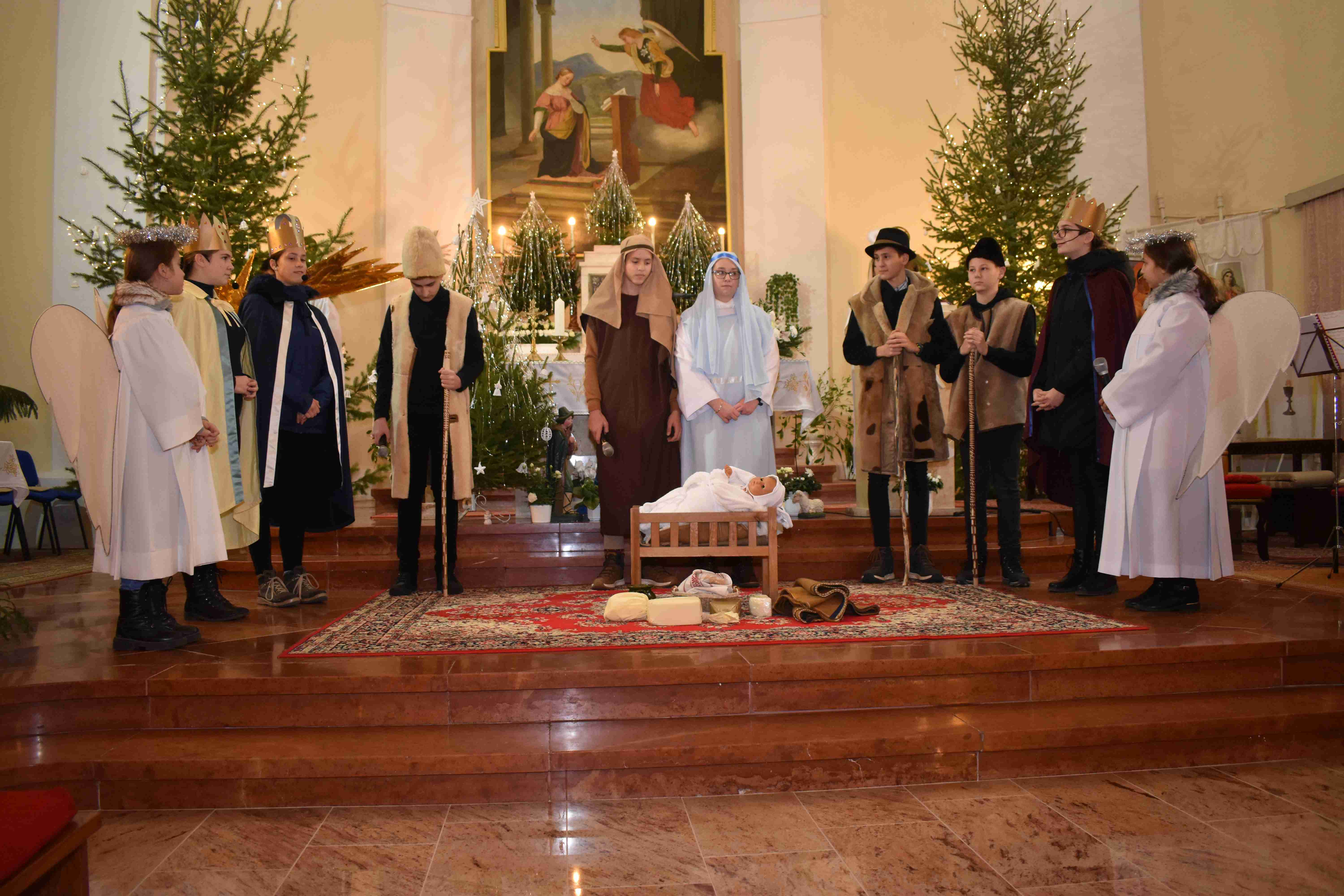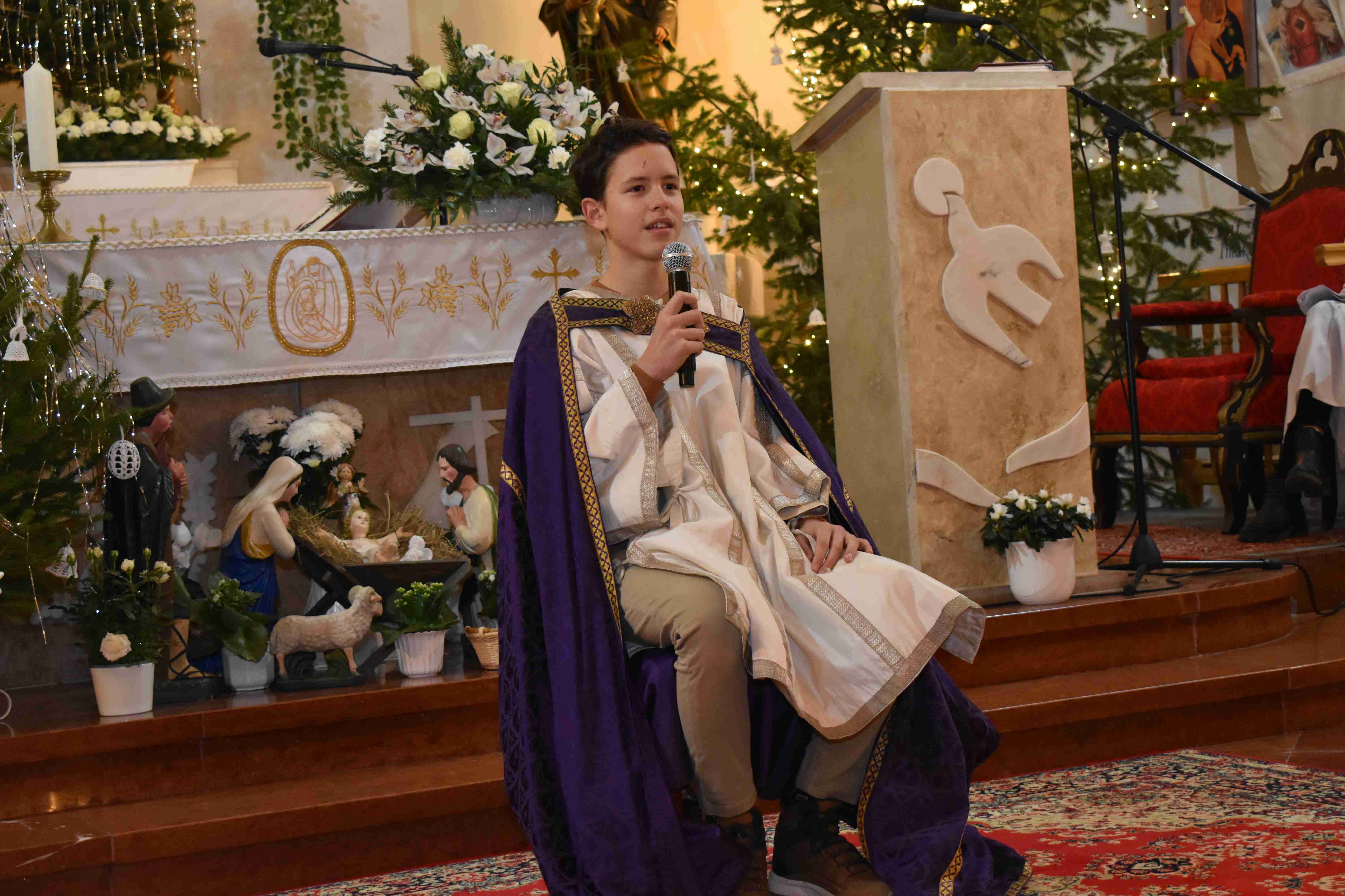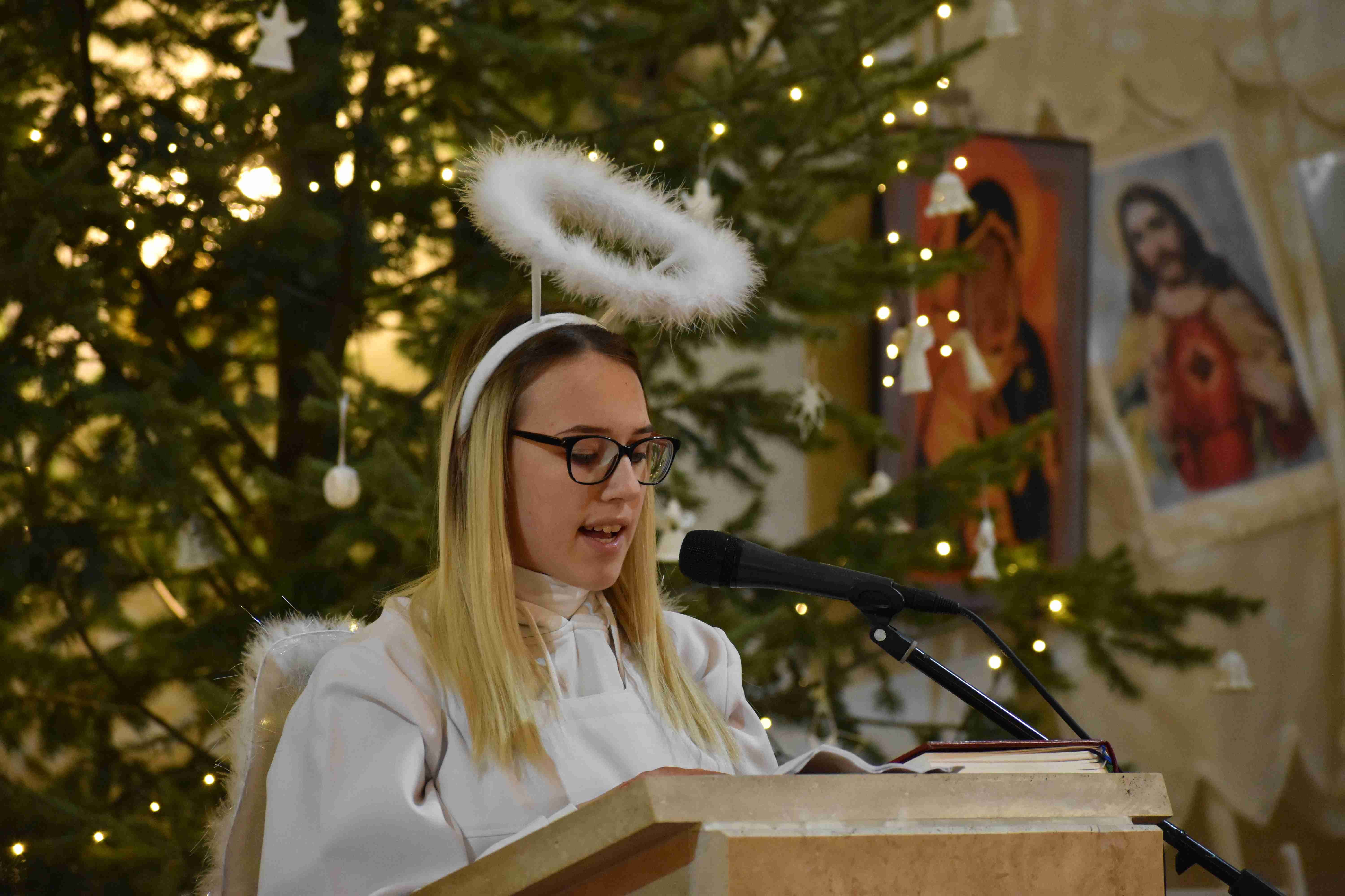 2021. december 24-én, pénteken, Szenteste 23.30 órakor, a Noszlopy iskola 15 hittanos tanulójának pásztorjátékával kezdődött a karácsonyi ünnepség a Gyümölcsoltó Boldogasszony plébániatemplomban.