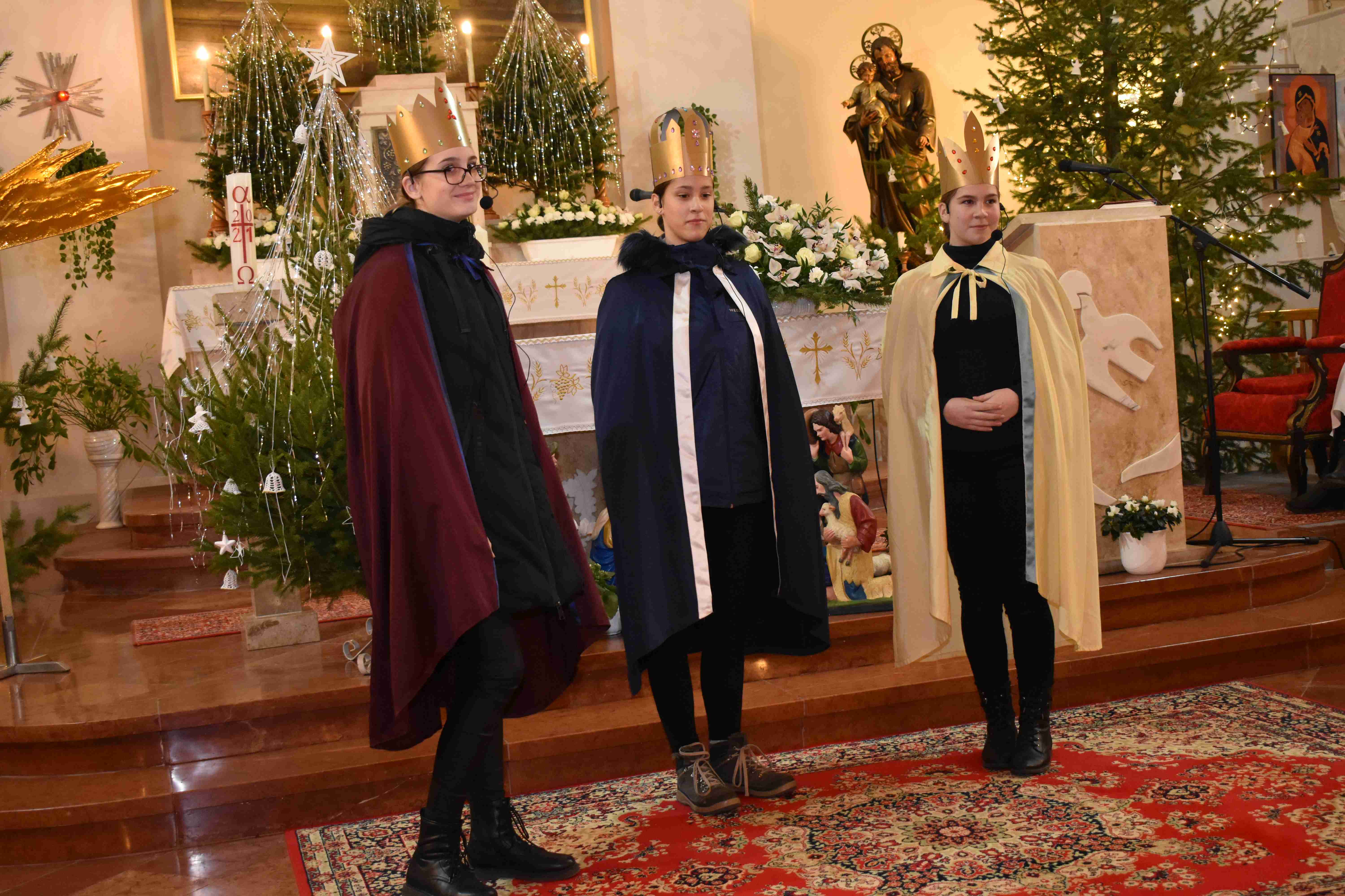 „A három királyok útja” című előadás Jézus születésének történéseit mutatta be hagyományos formában, a Szentcsaláddal, az angyalokkal, pásztorokkal és a napkeleti bölcsekkel, akiket a néphagyomány három királyokként tart számon. A darabot dr. Gyulainé Domján Zsuzsanna hitoktatónő tanította be a gyermekeknek, közreműködött a Marcali Fény Gyermekei Zenekar gitáros énekekkel.