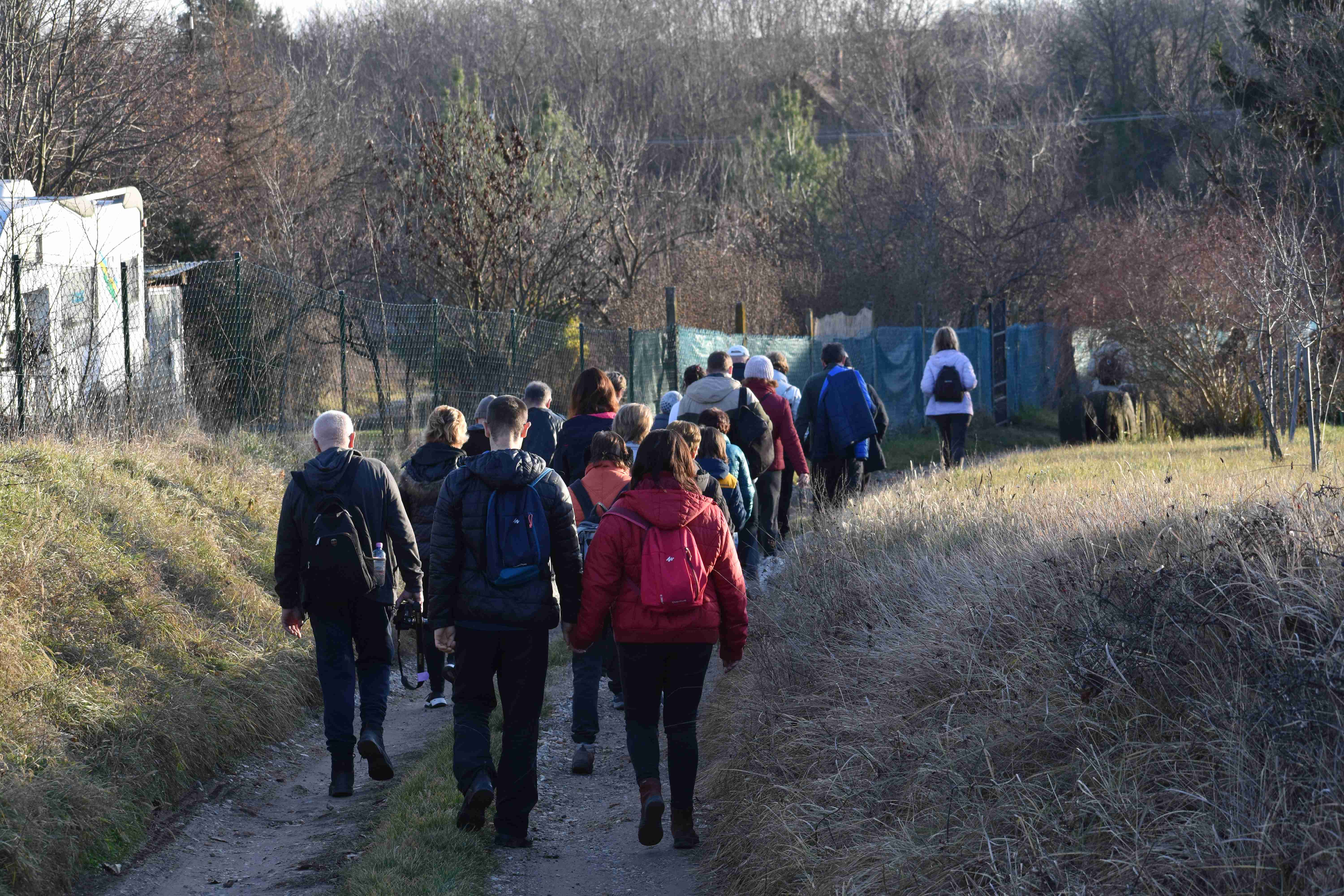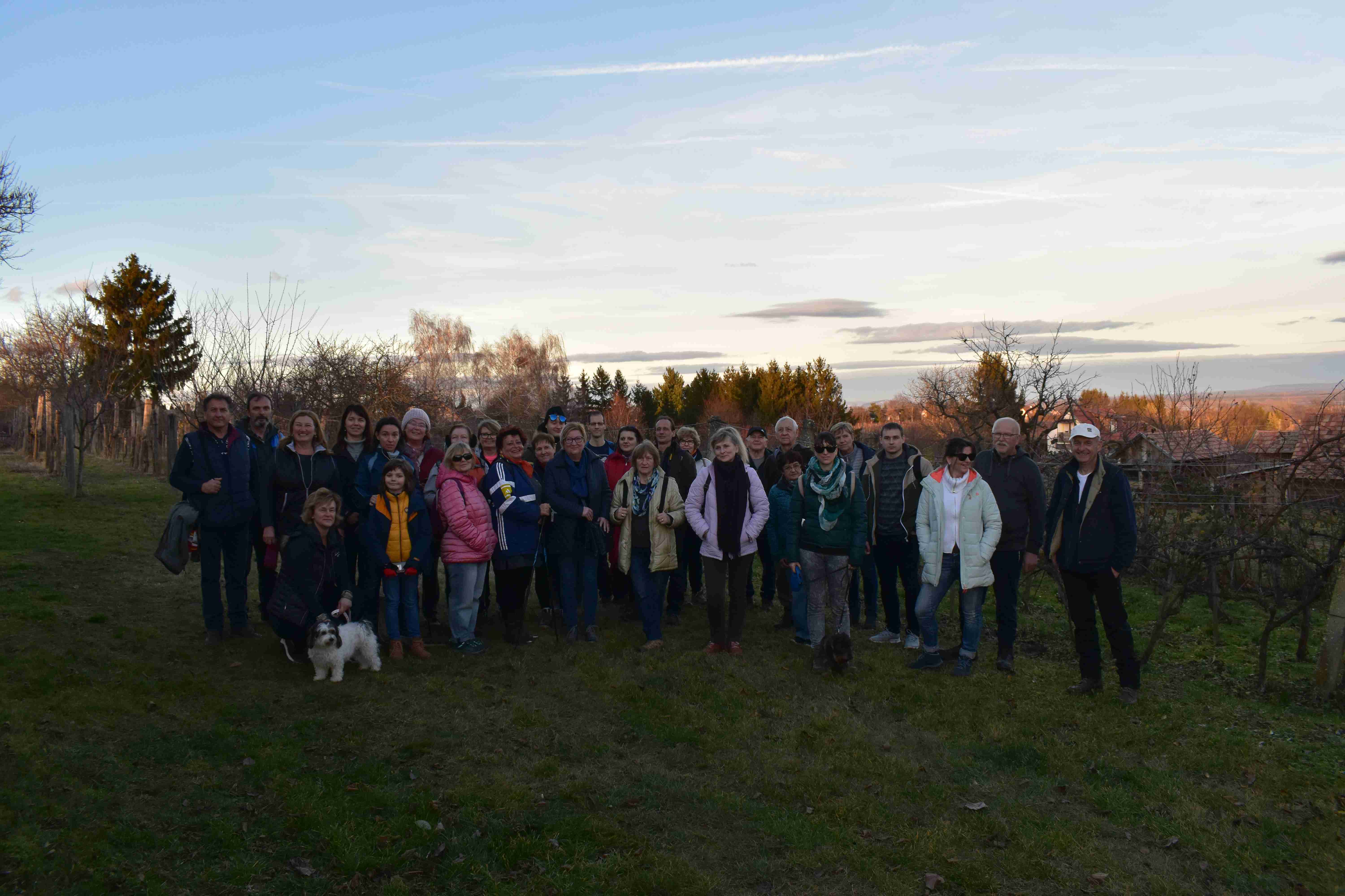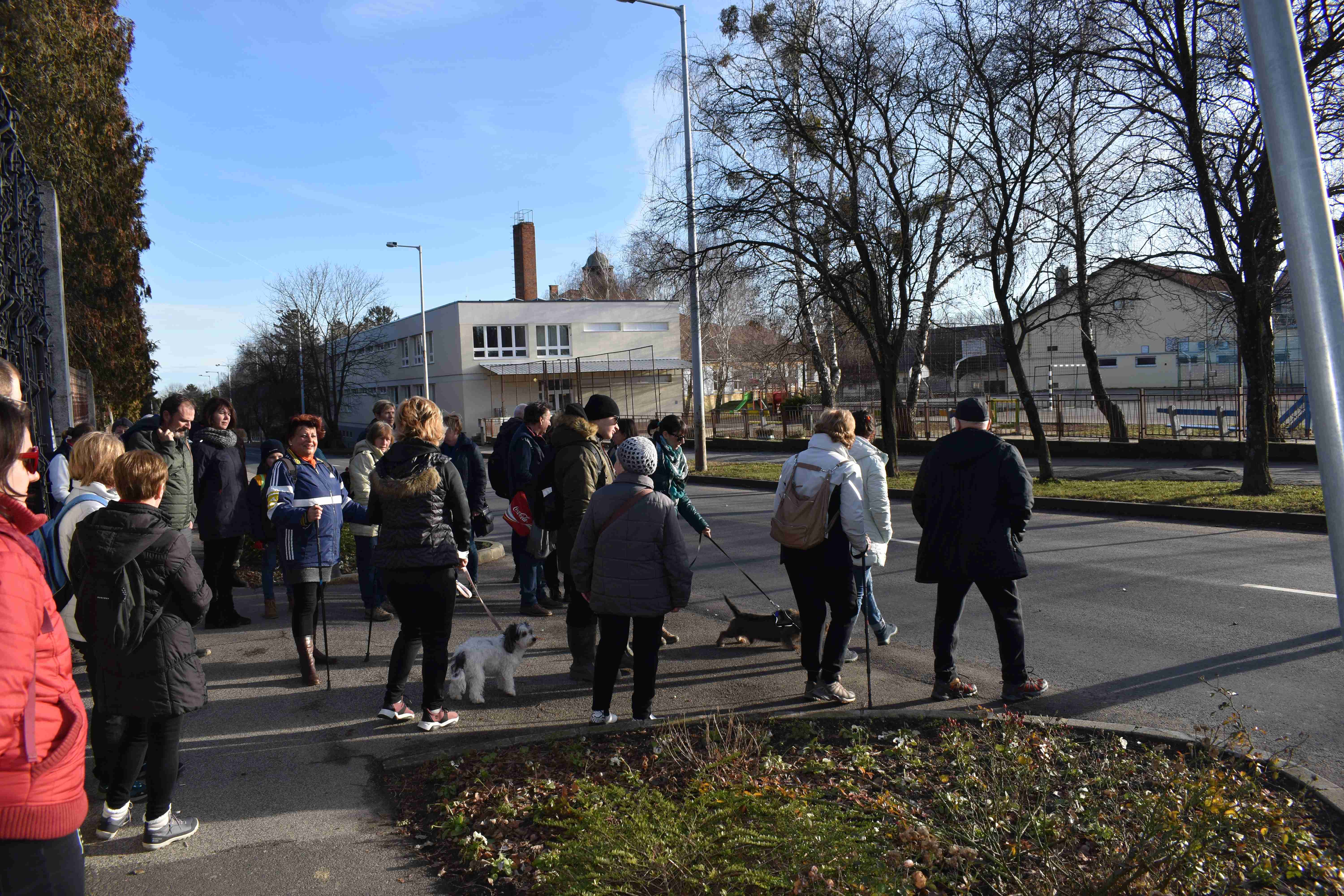 Közel negyven elszánt természetbarát gyűlt össze a Noszlopy iskola előtt Újév délutánján. Ha a két kutyust is beleszámoljuk, akkor éppen 40. 🙂