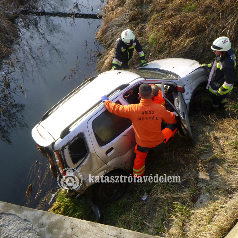 A marcali hivatásos tűzoltók először rögzítették a járművet, majd feszítővágóval kiszabadították a beszorult sofőrt, akit a mentők kórházba szállítottak.