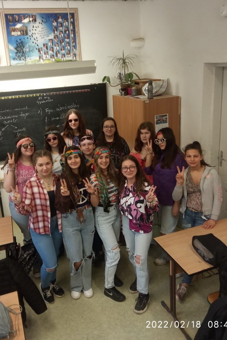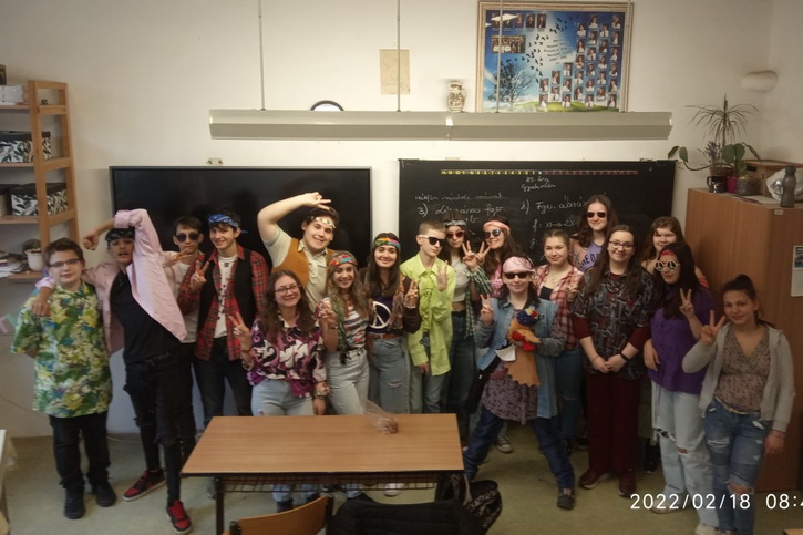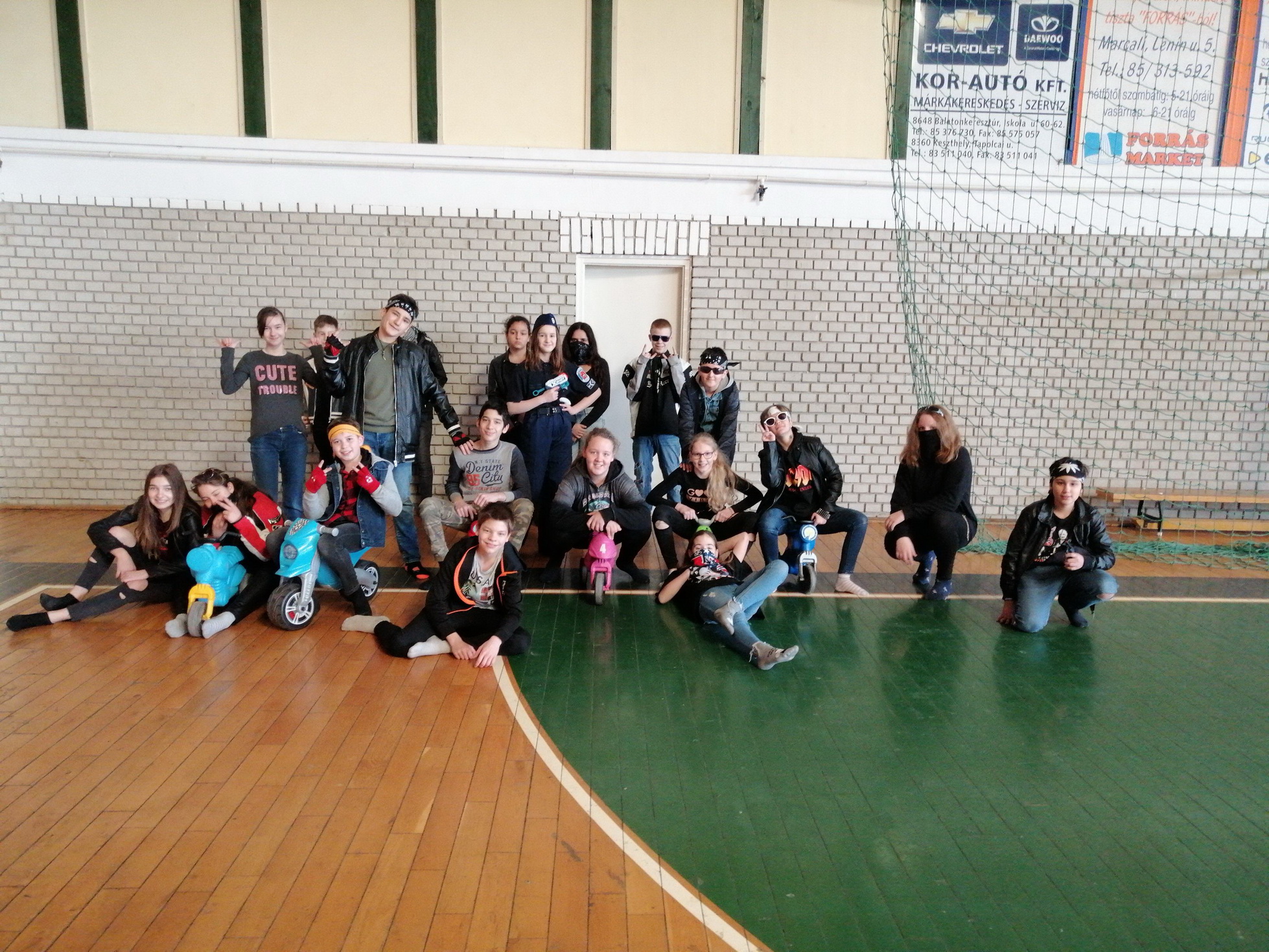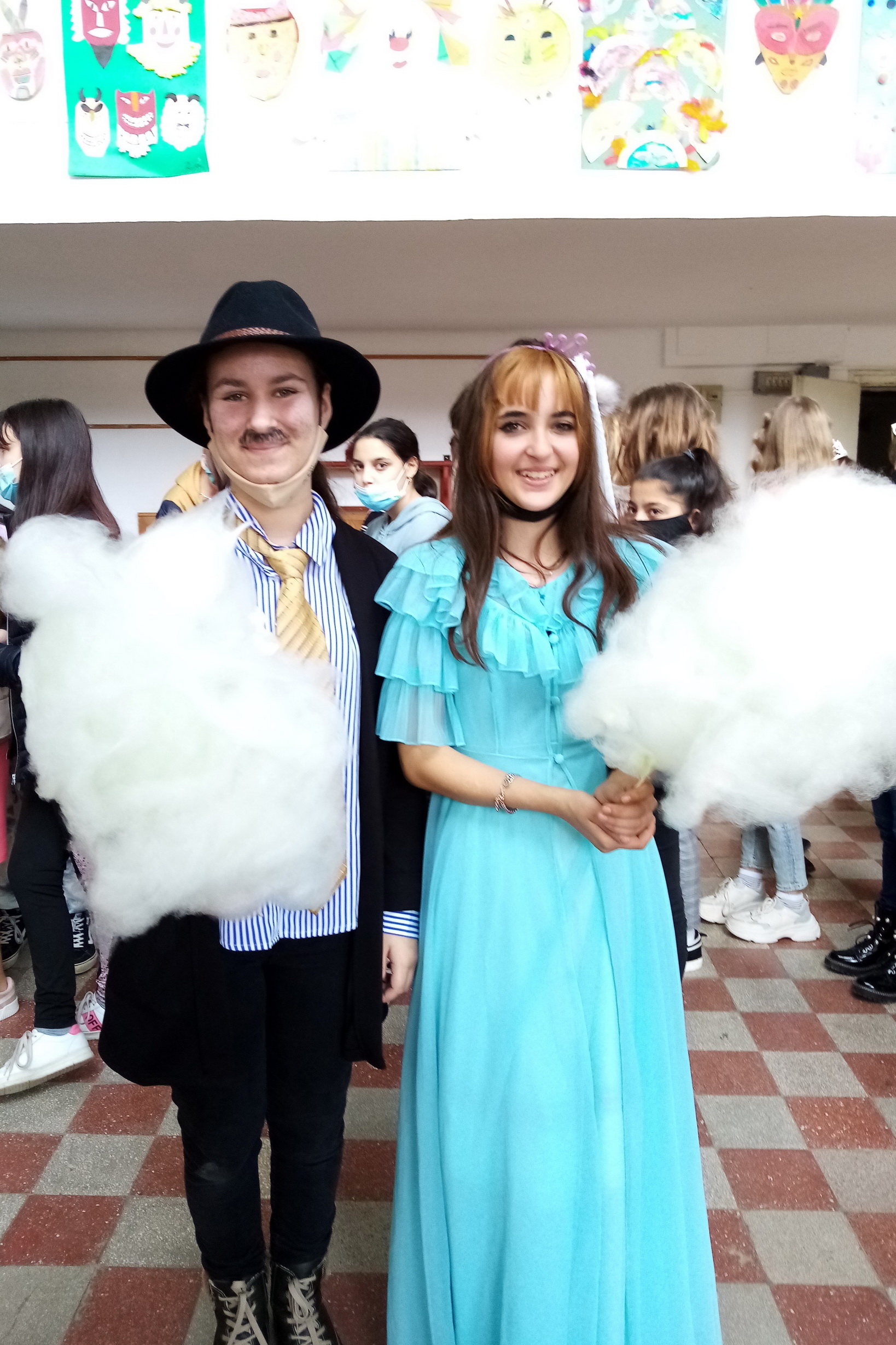 2022. február 18., péntek. Fura lények, szelíd motorosok, vattacukorból ki sem látszó maszkos alakok lepték el a Marcali Noszlopy Gáspár Általános Iskola felsős folyosóit.
