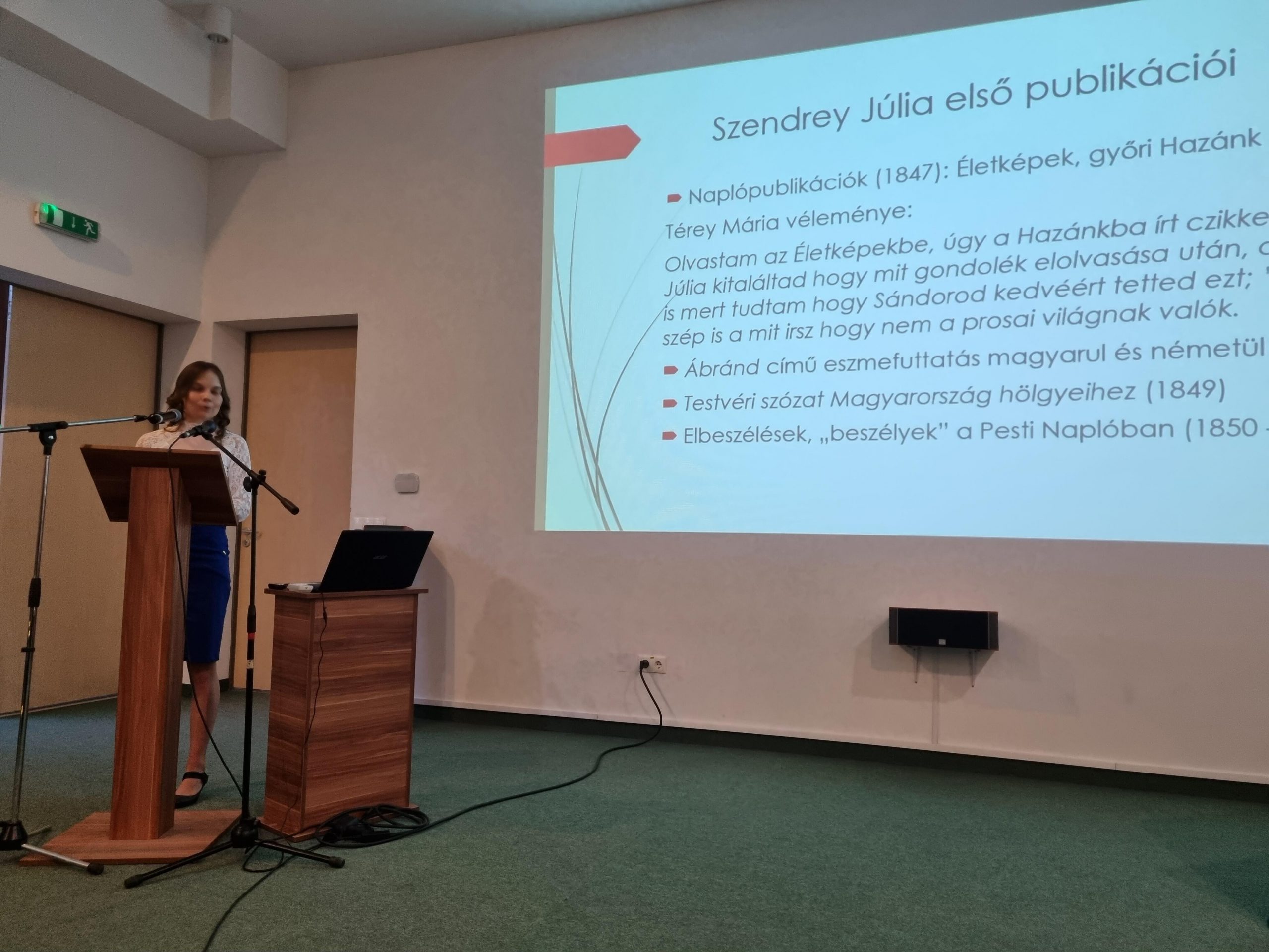 Az irodalom- és társadalomtörténész érdekfeszítő prezentációjában bemutatta, hogy Petőfi Sándor özvegye a reformkor és az 1850–60-as évek egyik kiemelkedő női alkotója is volt. Ahogyan a kortárs, Zilahy Károly fogalmazott: „Szendrey Júlia nyitja meg azon időszakot, midőn költőnőink általános irodalmi színvonalra emelkednek.”