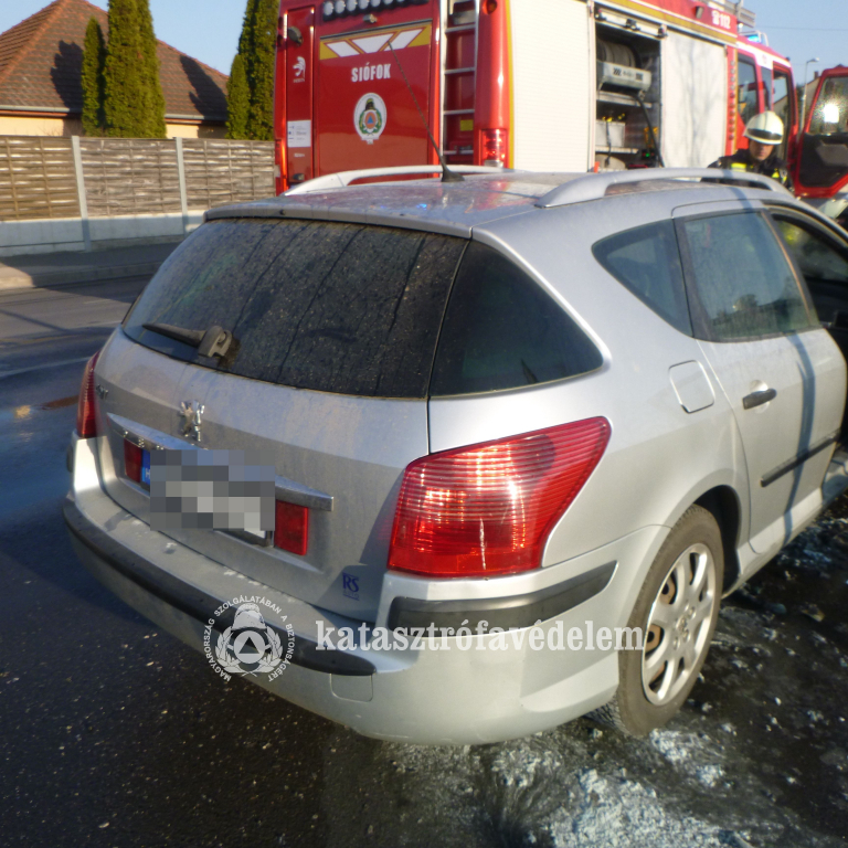 A jármű vezetője, ahogy észlelte a motorháztető alól felszálló füstöt, azonnal félrehúzódott, de a következő pillanatban már lángok is felcsaptak. A gépkocsi tulajdonosa egy kézi tűzoltó készülékkel megpróbálta elfojtani a lángokat, de nem járt sikerrel. A siófoki hivatásos tűzoltók fékezték meg két vízsugárral a tüzet, amely így az utastérre nem terjedt át. Az autóvezető nem sérült meg az eset során.