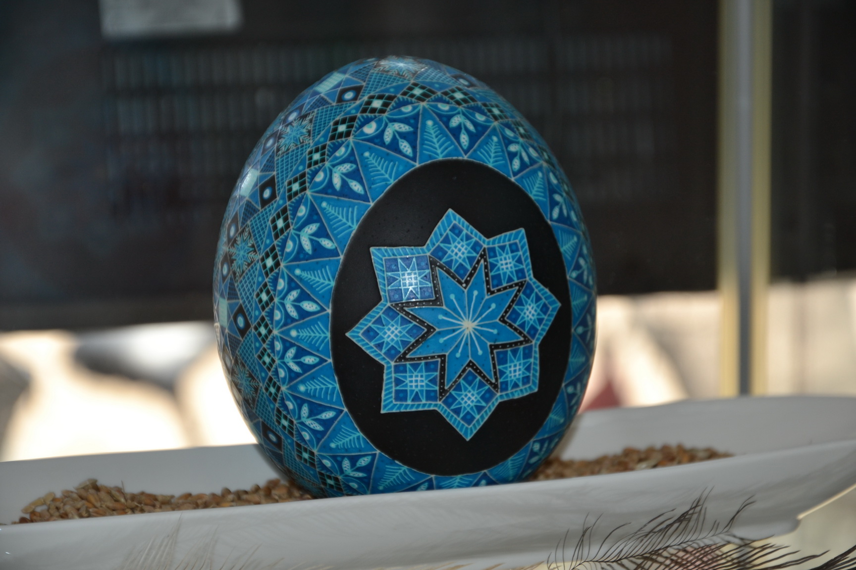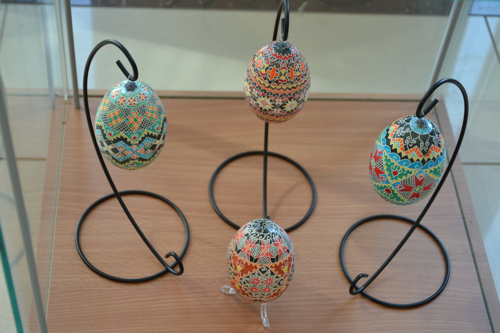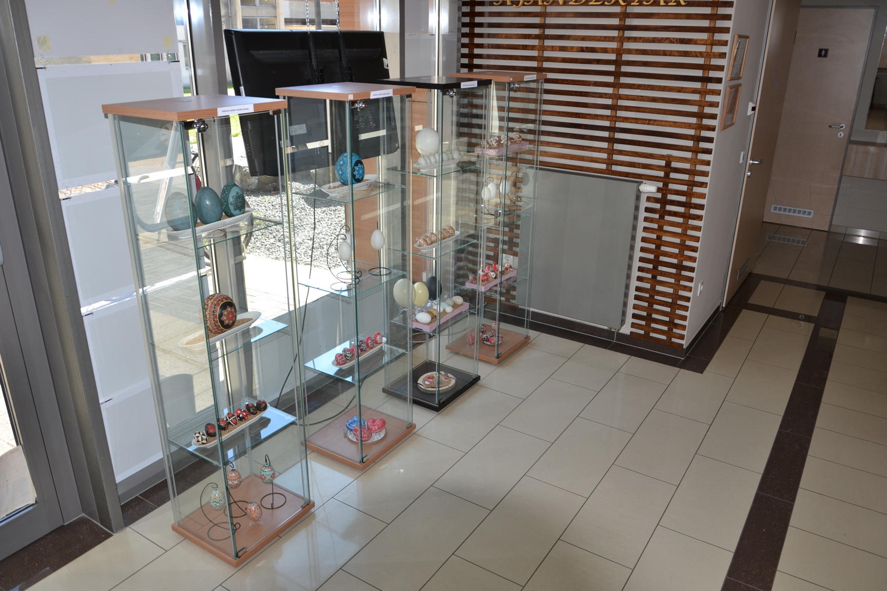 A hagyományos tojások mellett liba, fürj, strucc, nandu és emu tojások, valamint strucc tojásból készült ékszerek is láthatók a kiállításon.