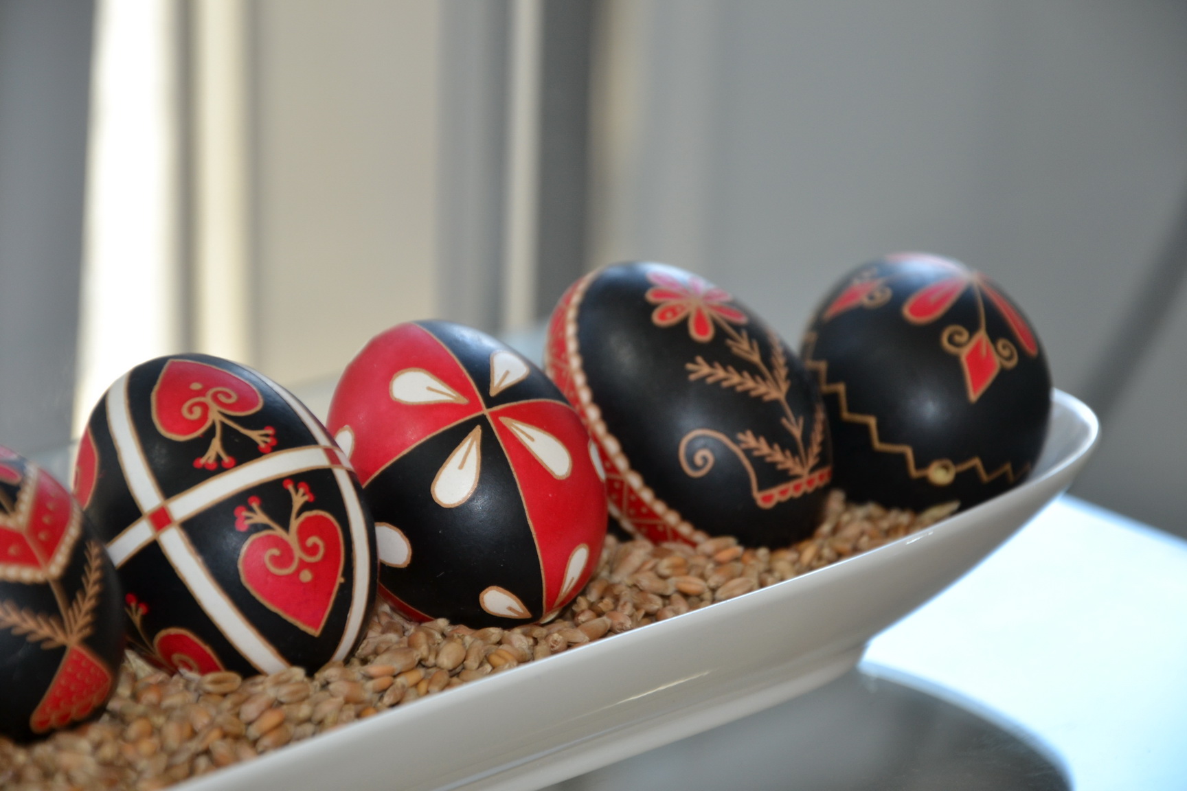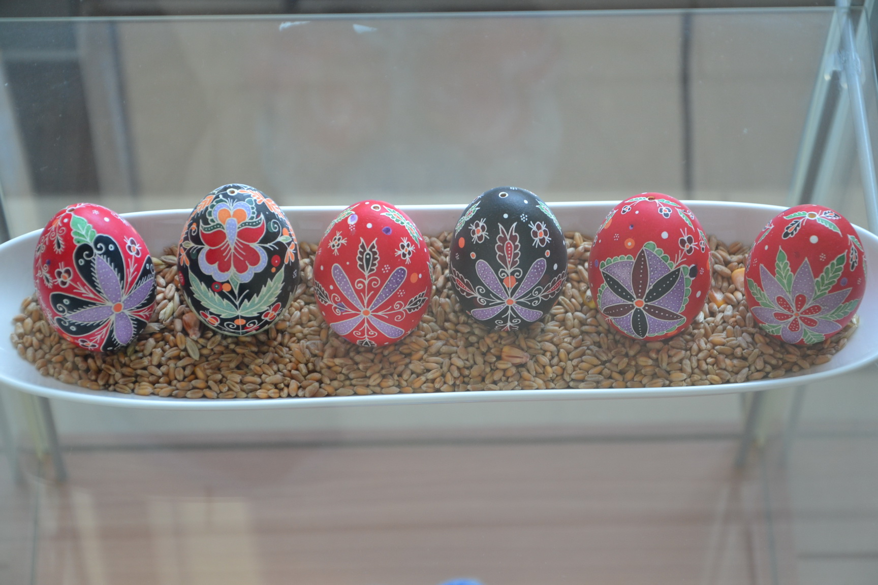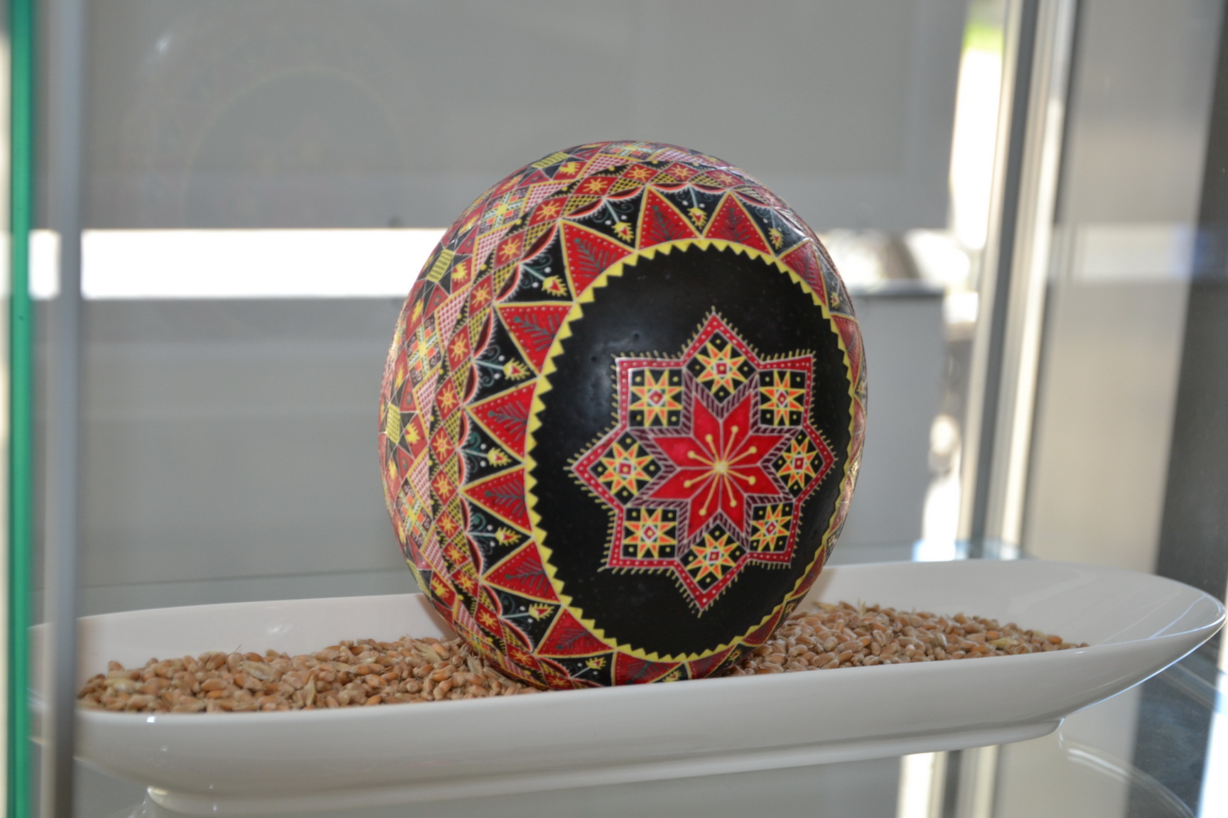 Az április 14-ig megtekinthető mini-tárlaton, a mívesen megfestett sárközi és gyimesi motívumos tojások mellett, ukrán népi motívumokkal díszítettstrucc tojásokat is láthatnak a Korzóba betérők.