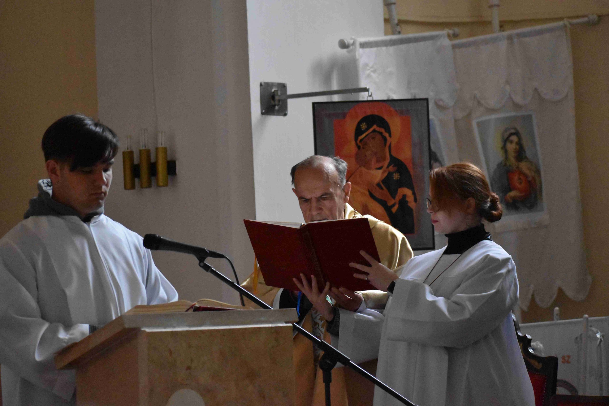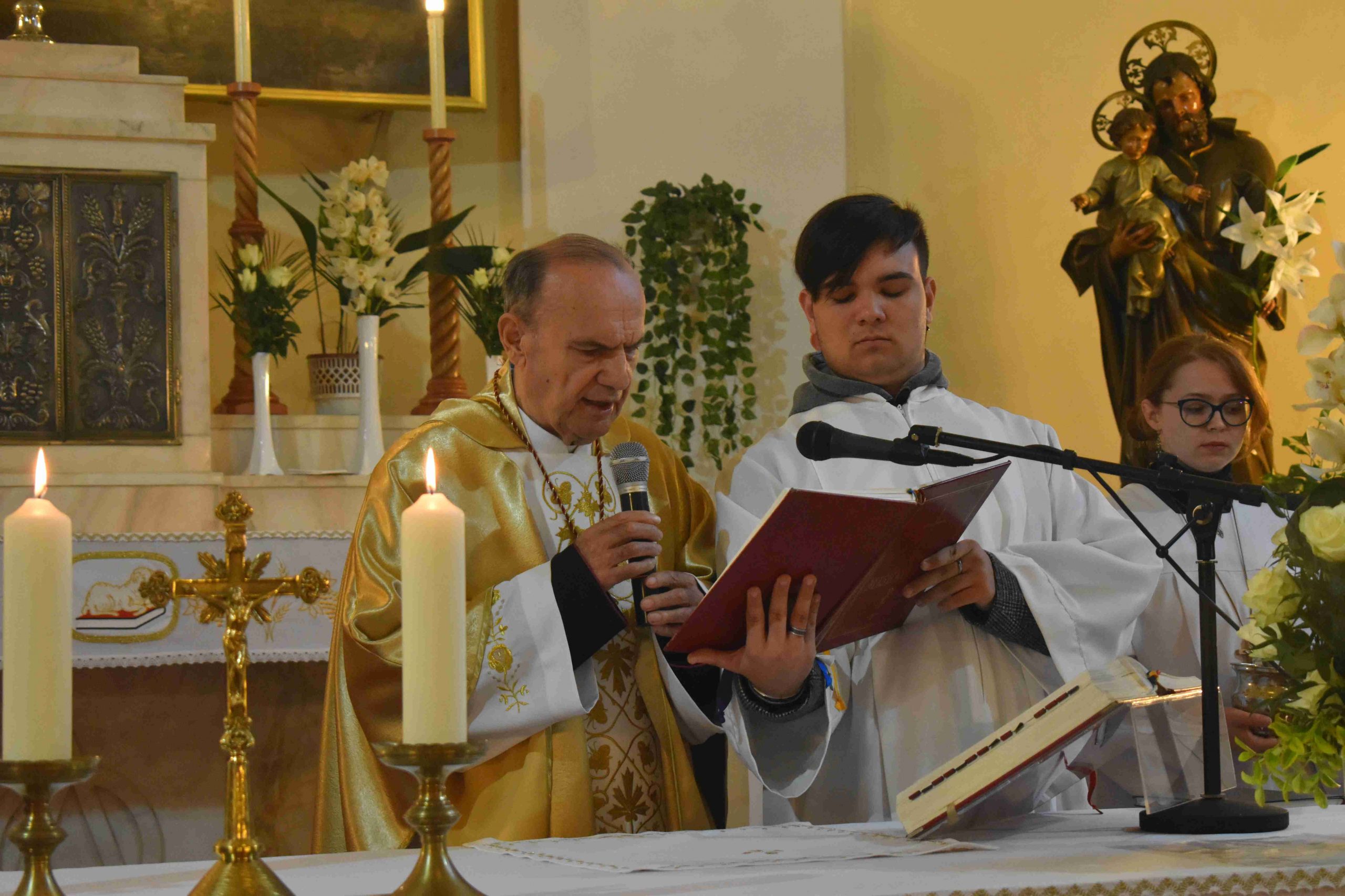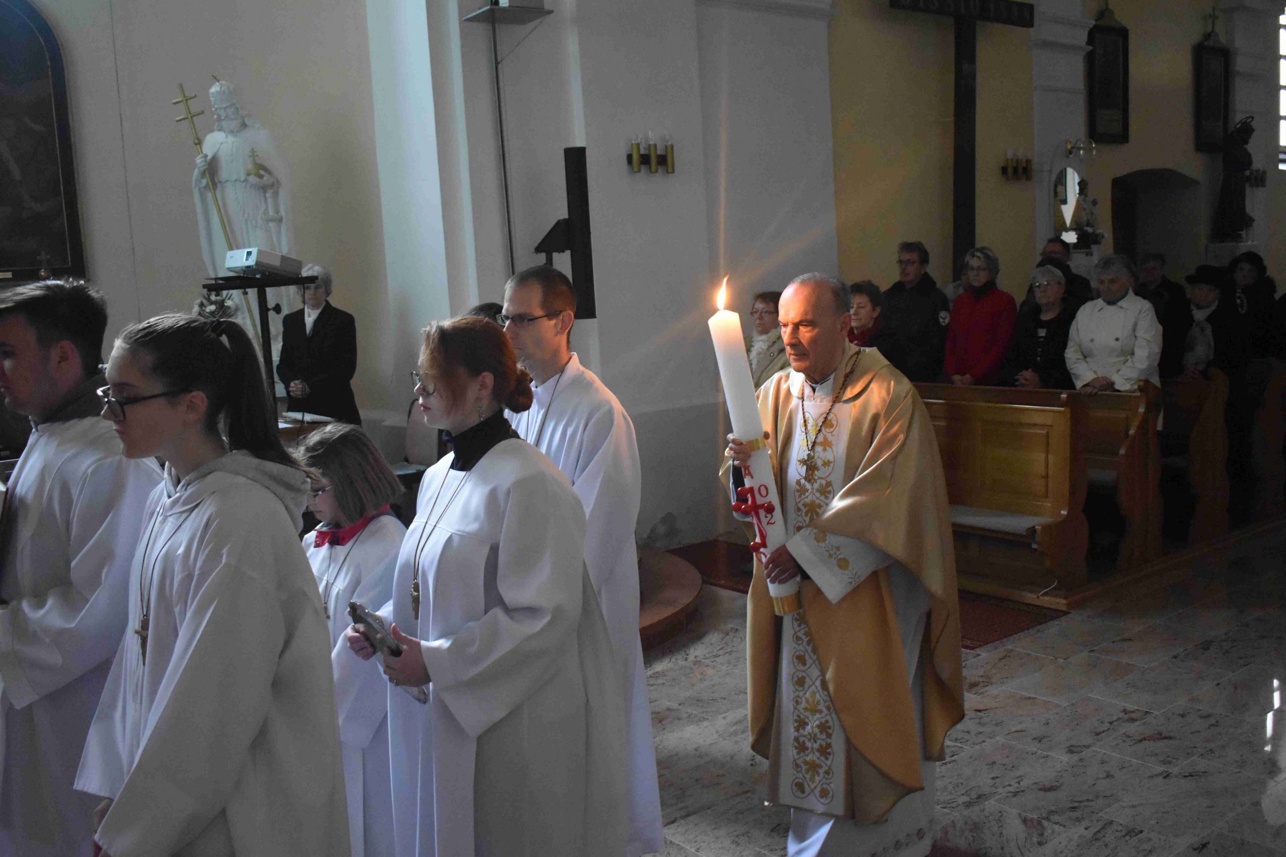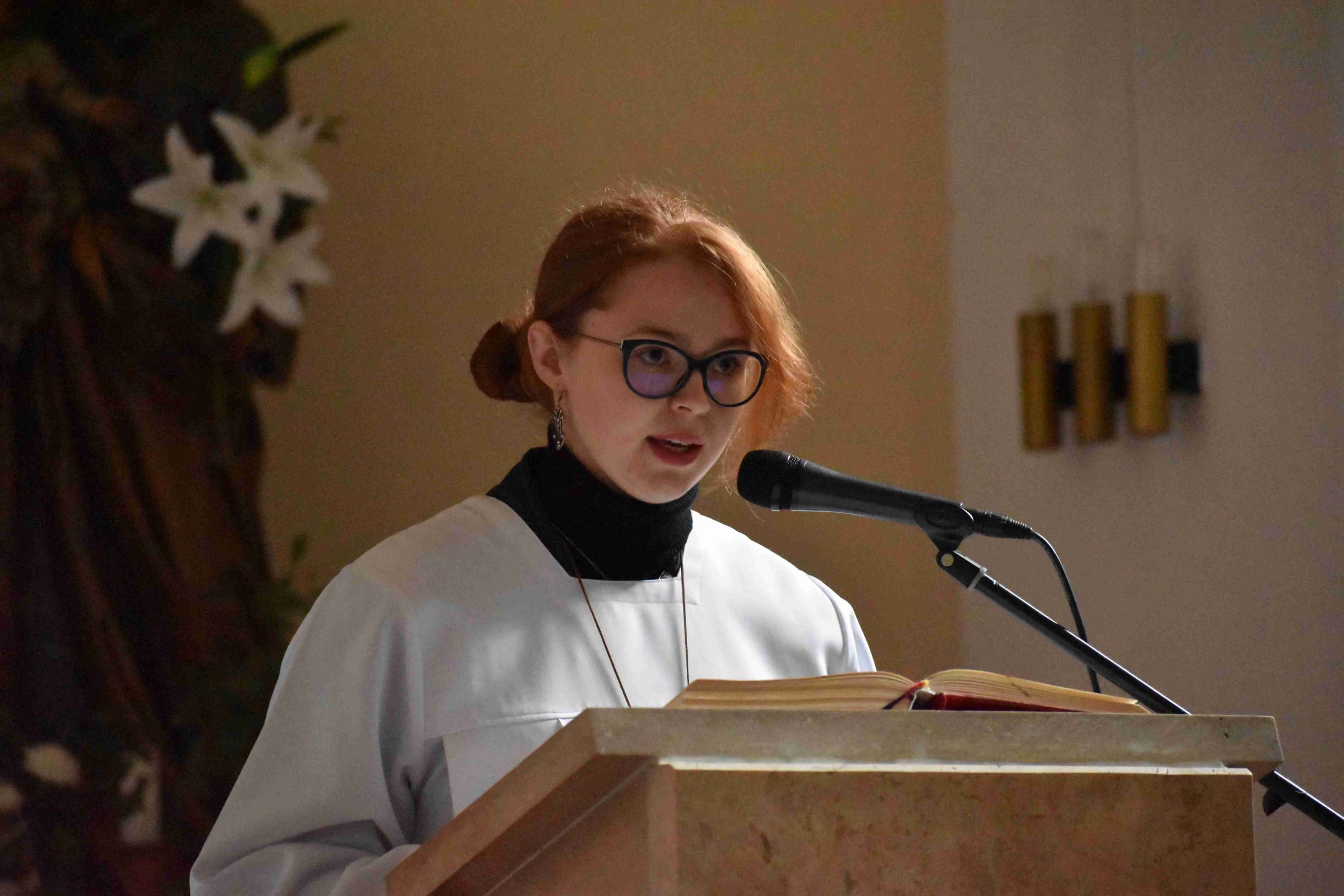 Ezután az ószövetségi olvasmányok következtek, melyek az üdvösségtörténet nagy állomásain keresztül vezetik a híveket. A felolvasó diákok: Bognár Emese, Pozsonyi Anna és Király Kristóf voltak. A harmadik olvasmány után felcsendült a Glória, Isten dicsőítése és „visszatérnek a harangok Rómából”, meghívva a hívőket Krisztus győzelmének ünneplésére. Jézus feltámadását, az igazi örömhírt hirdeti az evangélium: „Miért keresitek az élőt a halottak között? Nincs itt, feltámadt!” (Lk 24,1-12).A szentleckét dr. Gyulai Botond akolitus olvasta fel.