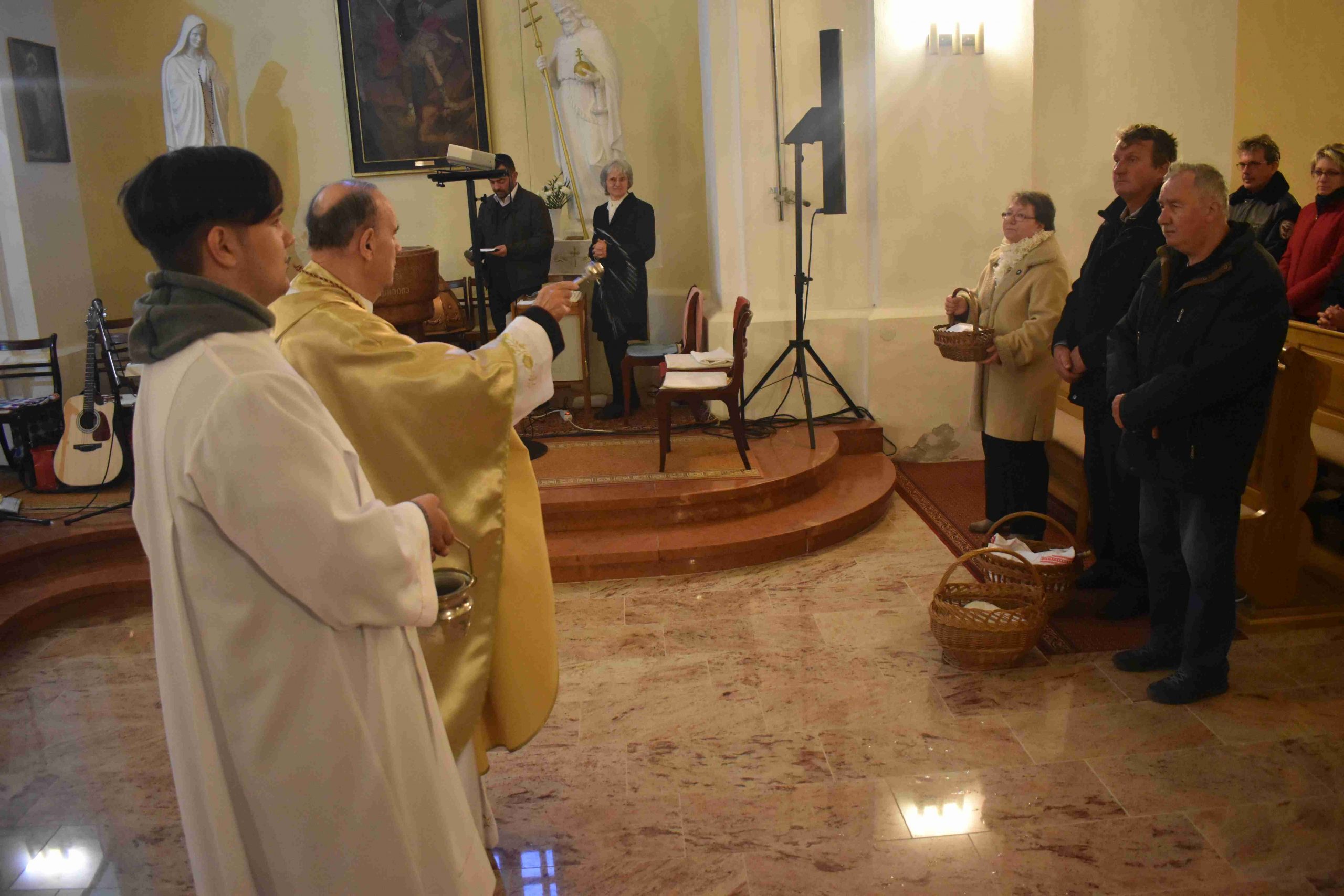 Kiss Iván atya ezután – a korábbi évek szokásaitól eltérően – ezen a szentmisén áldotta meg a résztvevők által elhozott húsvéti ételeket (a sonkát, kalácsot, tormát, tojást) is. (Ezen kívül a még az ünnepi, húsvétvasárnapi 9 órás szentmisén lesz újabb lehetőség az ételszenteltetésre.)