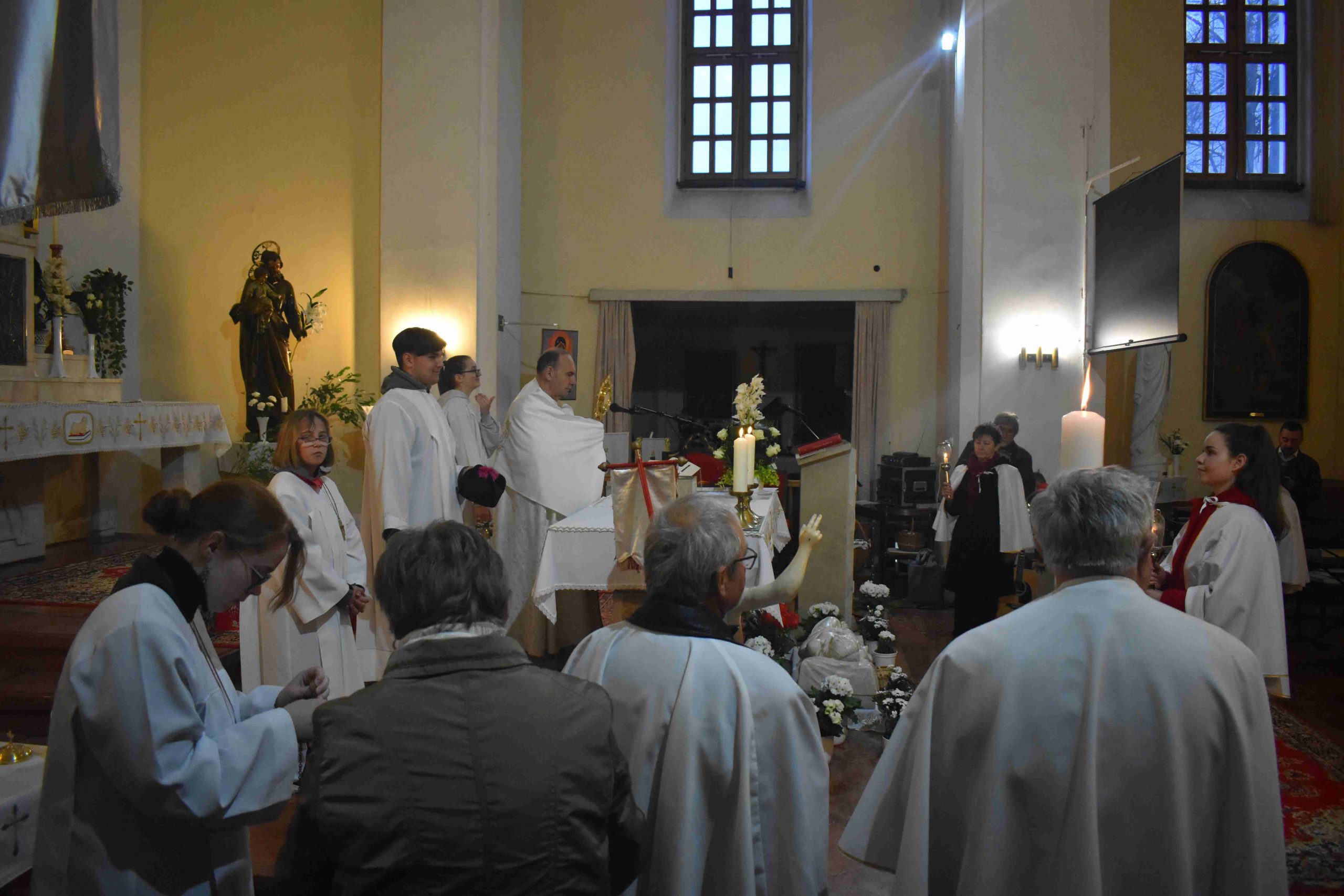 Ezt követően az istentisztelet a megszokott rend szerint folytatódott tovább. A nagyszombati vigílián Balogh Bálint kántor és a Marcali Fény Gyermekei Katolikus Zenekar működött közre gitáros énekekkel. A liturgia ünnepi áldással ért véget.
