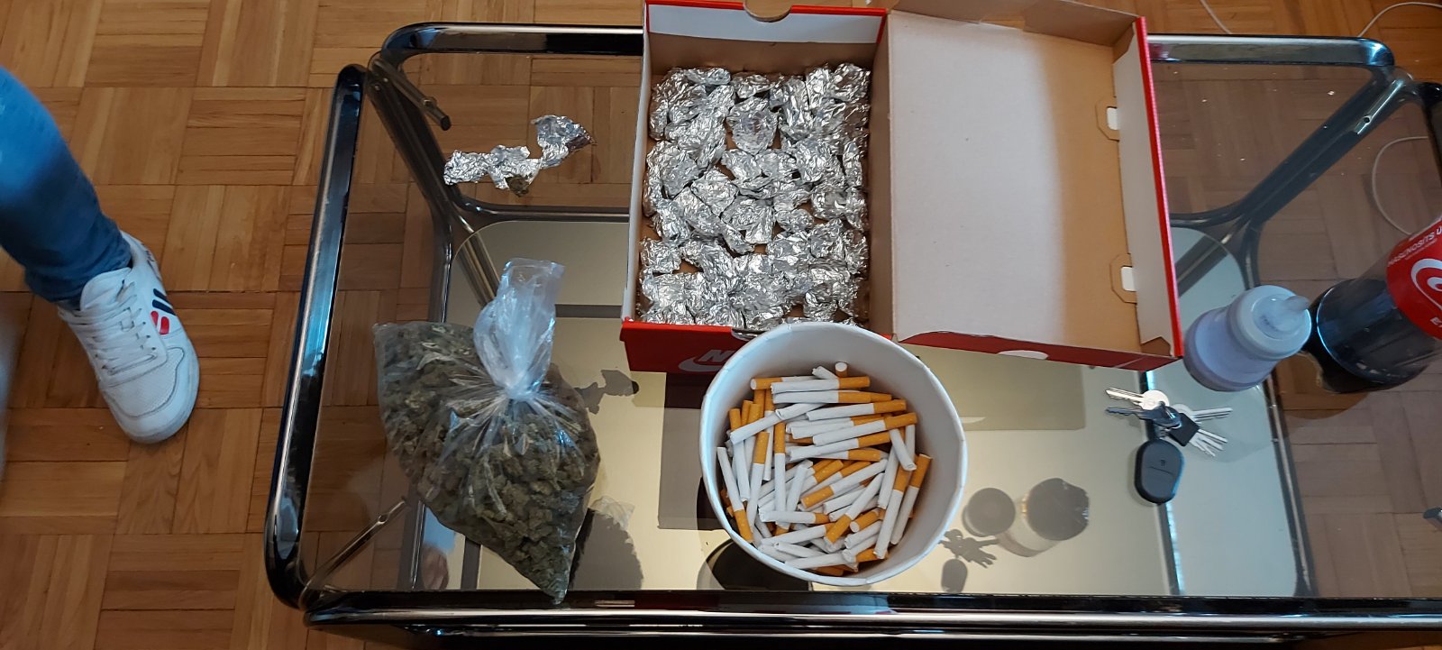 A Kaposvári Rendőrkapitányság rendőrei a Somogy Megyei Rendőr-főkapitányság felderítőinek segítségével előzetesen beszerzett információk alapján 2022. április 27-én 16 óra körül Kaposvár belvárosában -a somogyi bevetési egység közreműködésével- házkutatást tartottak. A nyomozati cselekmény során több mint egymillió forint készpénzt, közel fél kilogramm kábítószergyanús anyagot – köztük majdnem kétszáz darab cigarettát és közel száz darab alufóliába csomagolt tasakot-, kábítószer előállításához és fogyasztásához szükséges eszközöket, mobiltelefonokat, valamint a vagyonvisszaszerzés érdekében egy gépkocsit foglaltak le. Az egyenruhások az akció során öt embert fogtak el és állítottak elő a Kaposvári Rendőrkapitányságra.