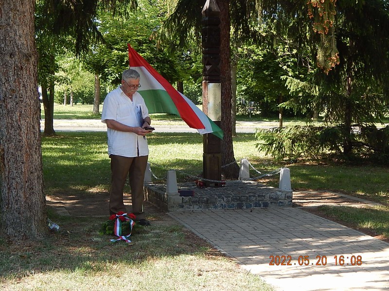 Az Európa Parkban elhelyezett kopjafánál először Huszár Géza ny. őrnagy, a Honvéd Nyugállományúak Klubjának elnöke köszöntötte a megjelenteket, majd szólt a Honvédelem Napja jelentőségéről. Ezután Szentes István ny. alezredessel, a Bajtársi egyesület elnökével, együtt koszorút helyeztek el az emlékműnél.