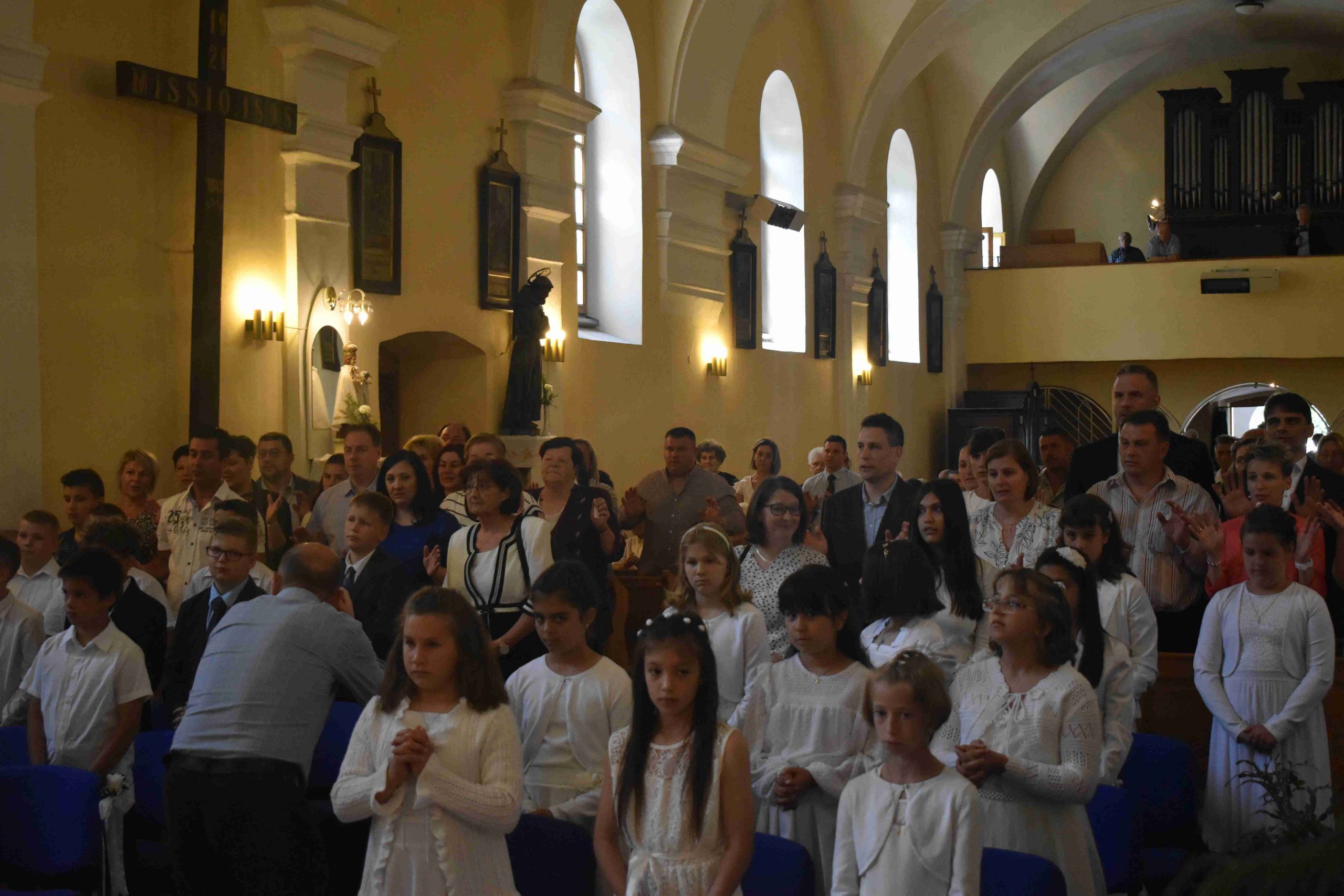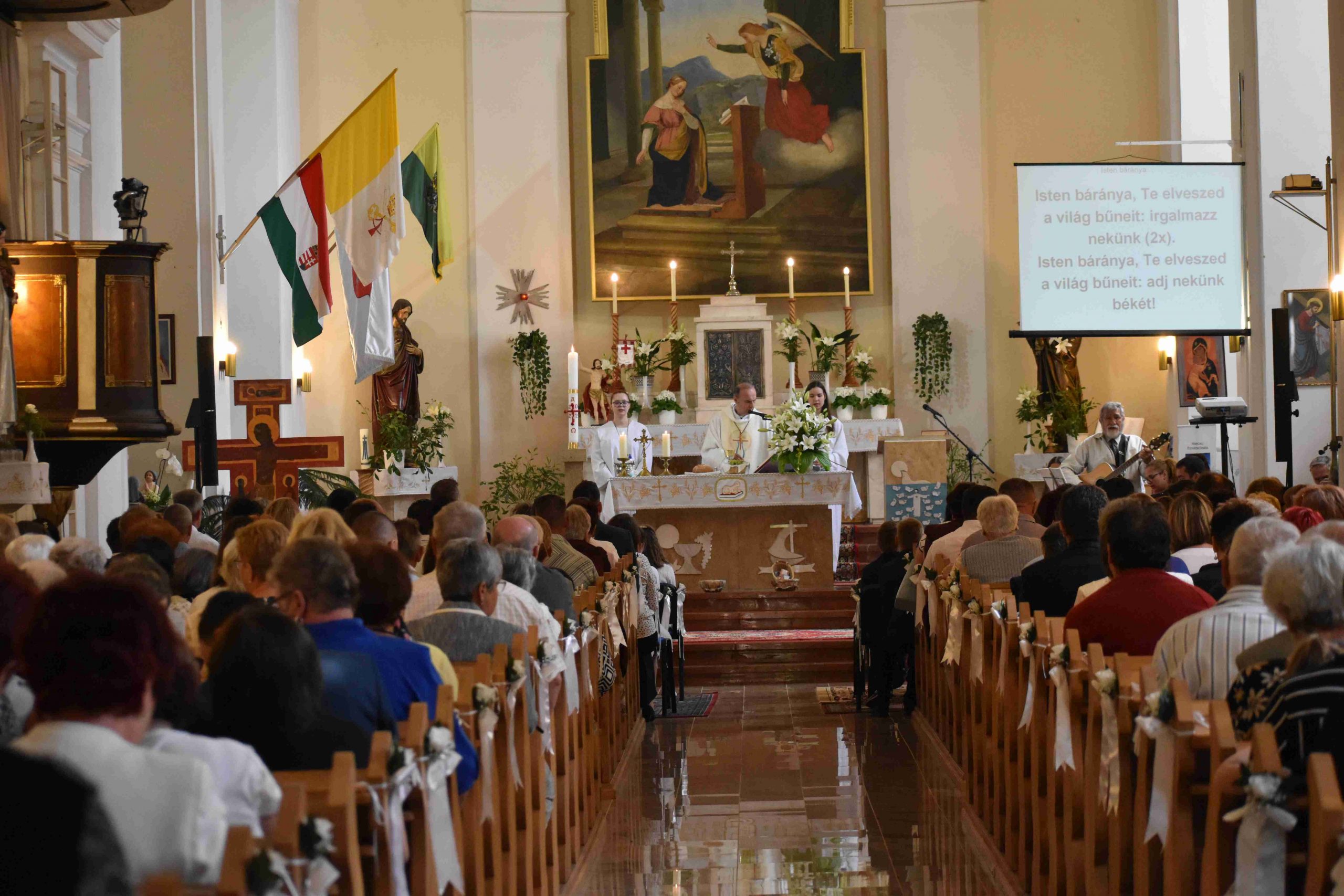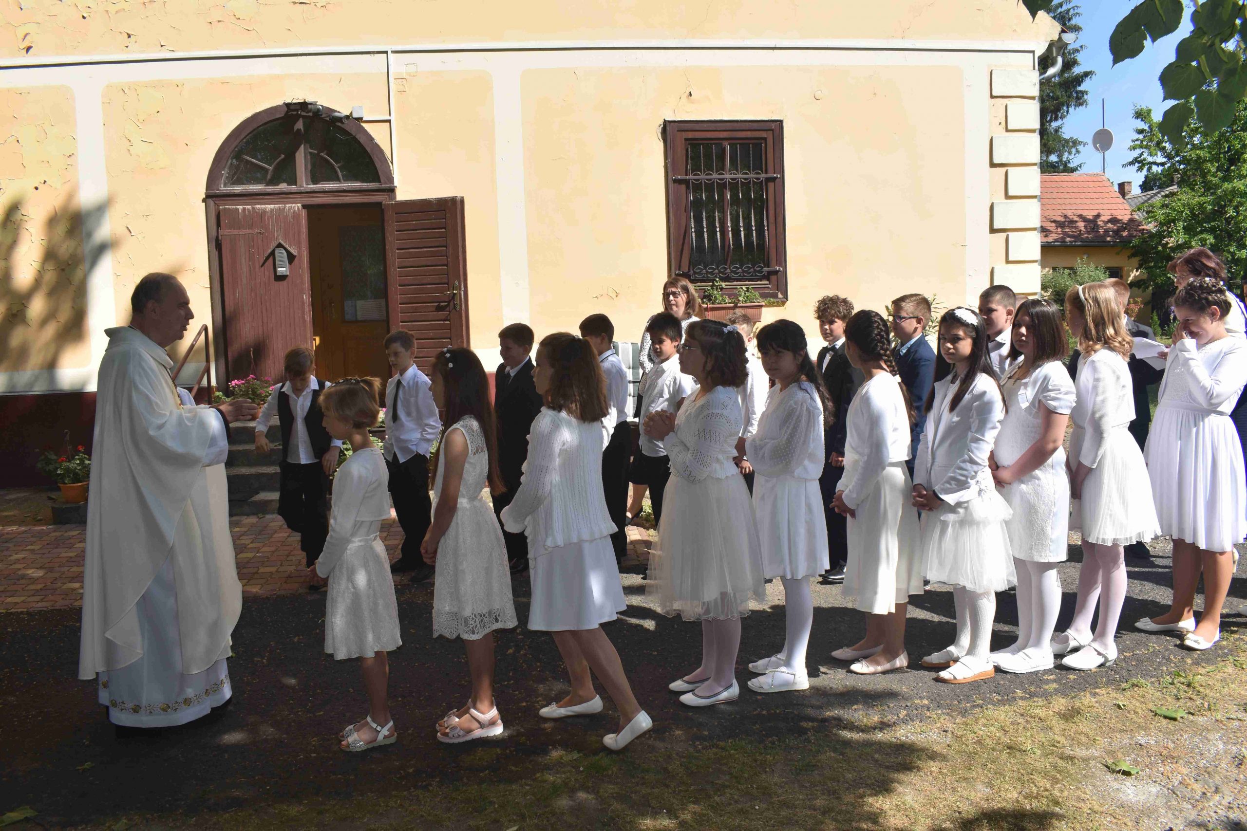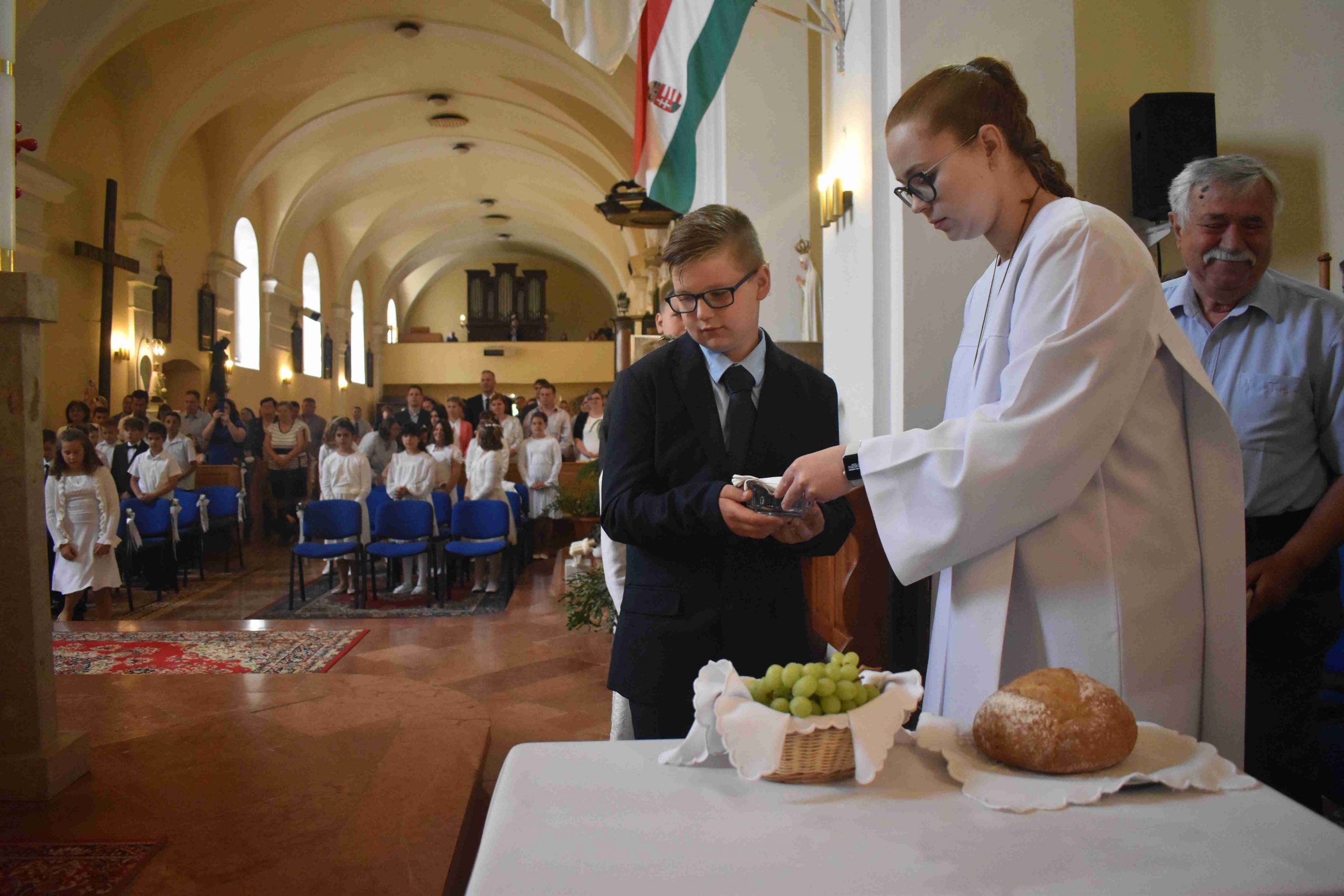 2022. május 22-én, vasárnap 10 órakor ünnepre gyűltek össze azok a hittanos gyermekek és családjaik, hogy– a koronavírus-járvány miatt – egy év kihagyás után elhalasztott elsőáldozás kegyelmében részesüljenek.