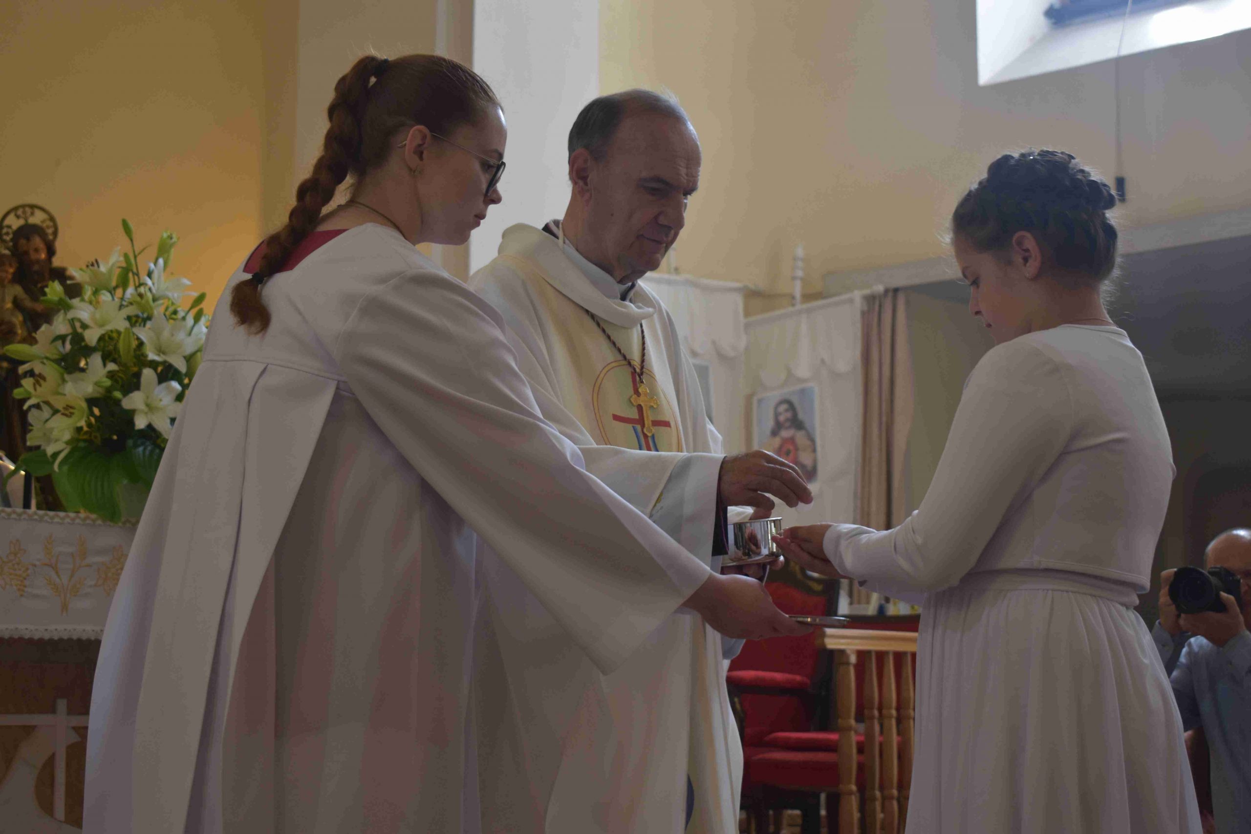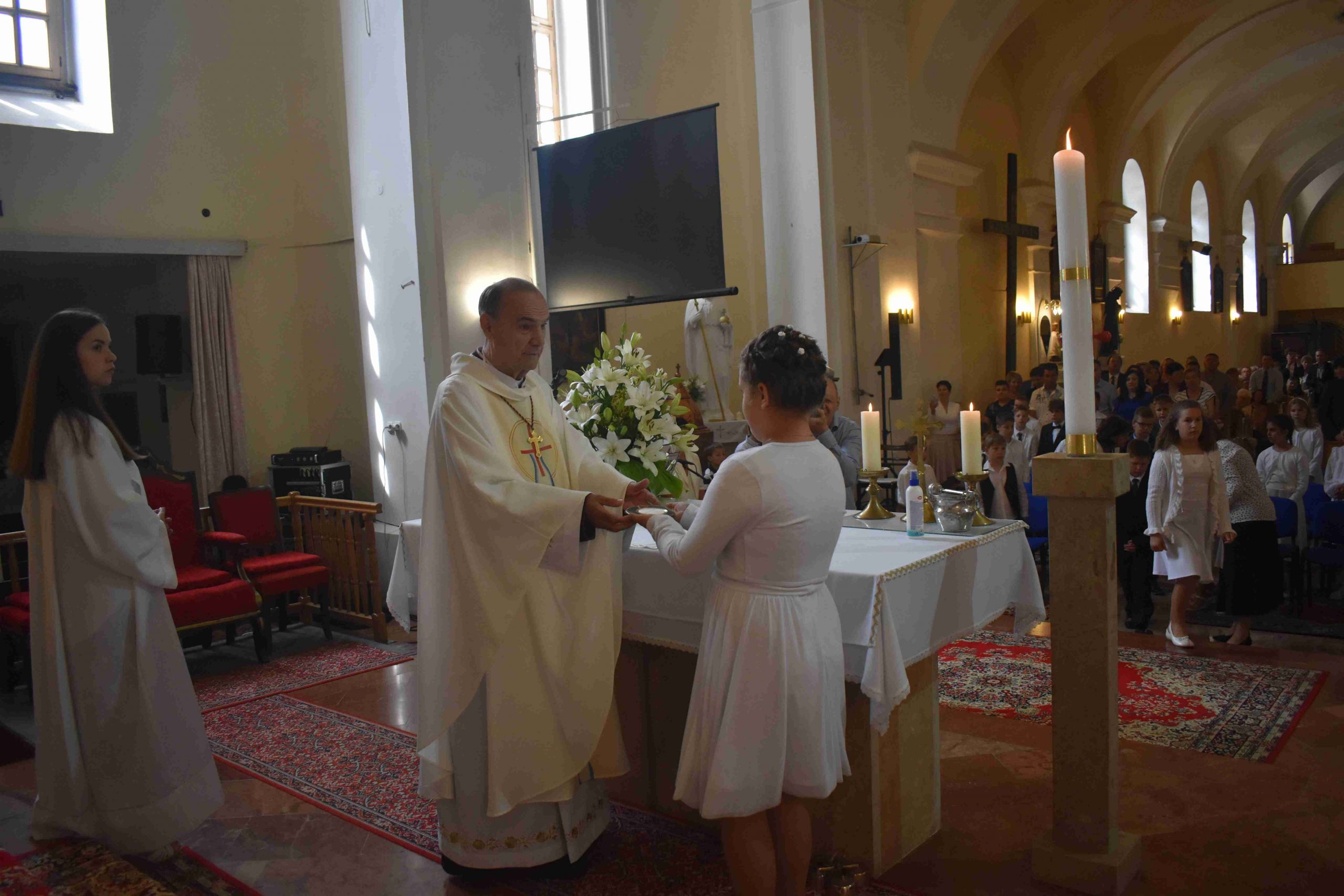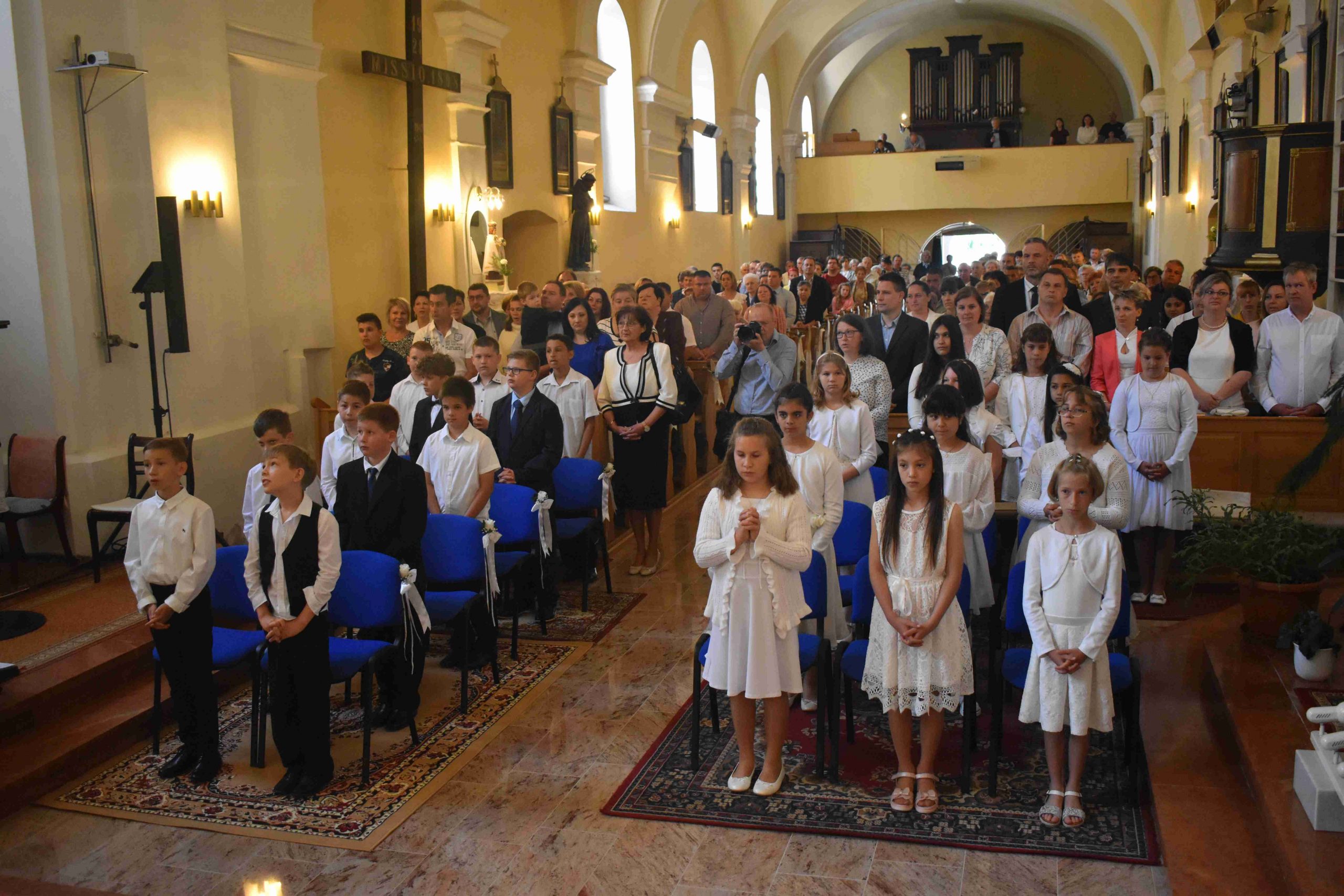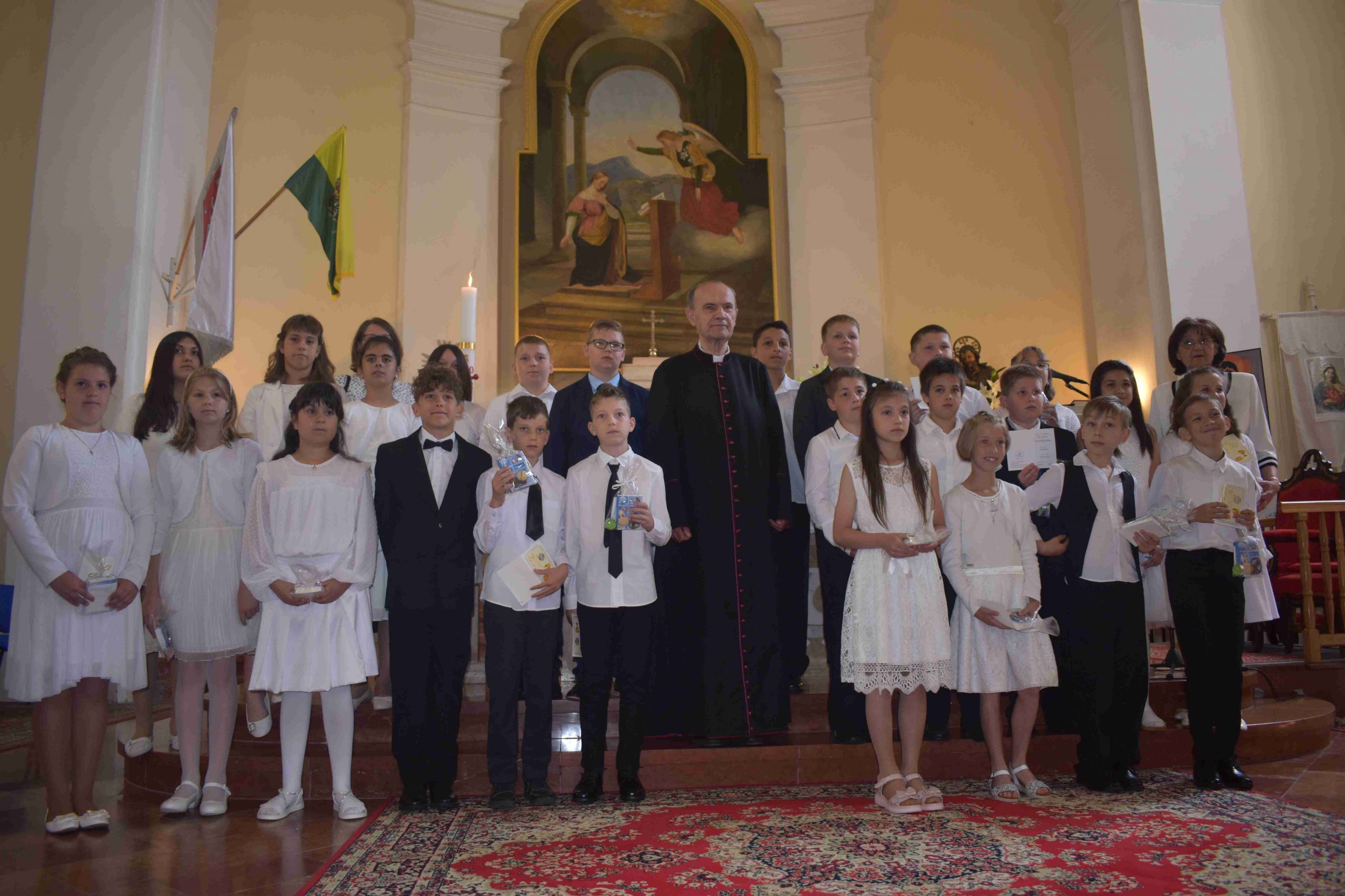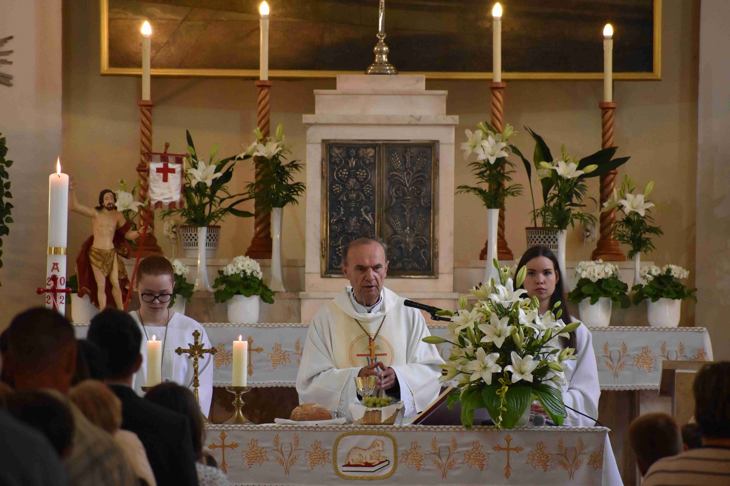 2022. május 22-én, vasárnap 10 órakor ünnepre gyűltek össze azok a hittanos gyermekek és családjaik, hogy– a koronavírus-járvány miatt – egy év kihagyás után elhalasztott elsőáldozás kegyelmében részesüljenek.
