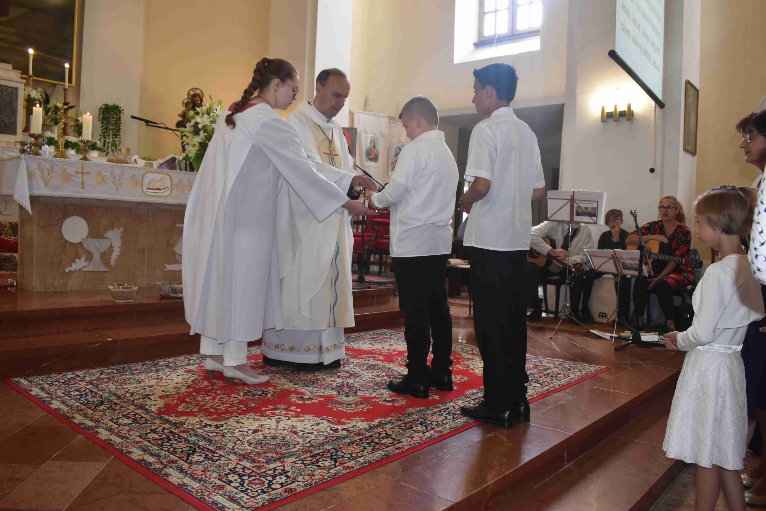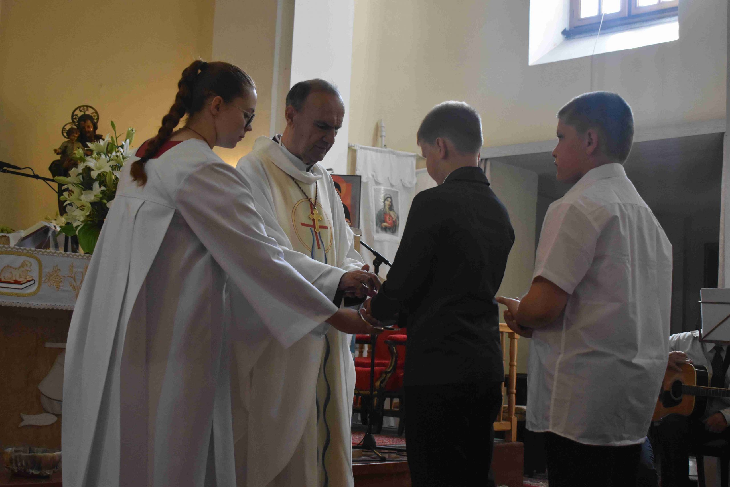 A szentmisén Iván atya és a gyermekek megköszöntéka szülőknek, hogy idáig elvezették őket a hit útján. A szülők pedig megáldották gyermekeiket.