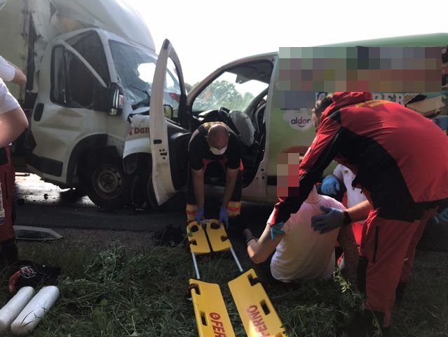 Egy kisteherautó és egy furgon ütközött össze a 68-as főúton, Szenyér térségében szerda délelőtt.