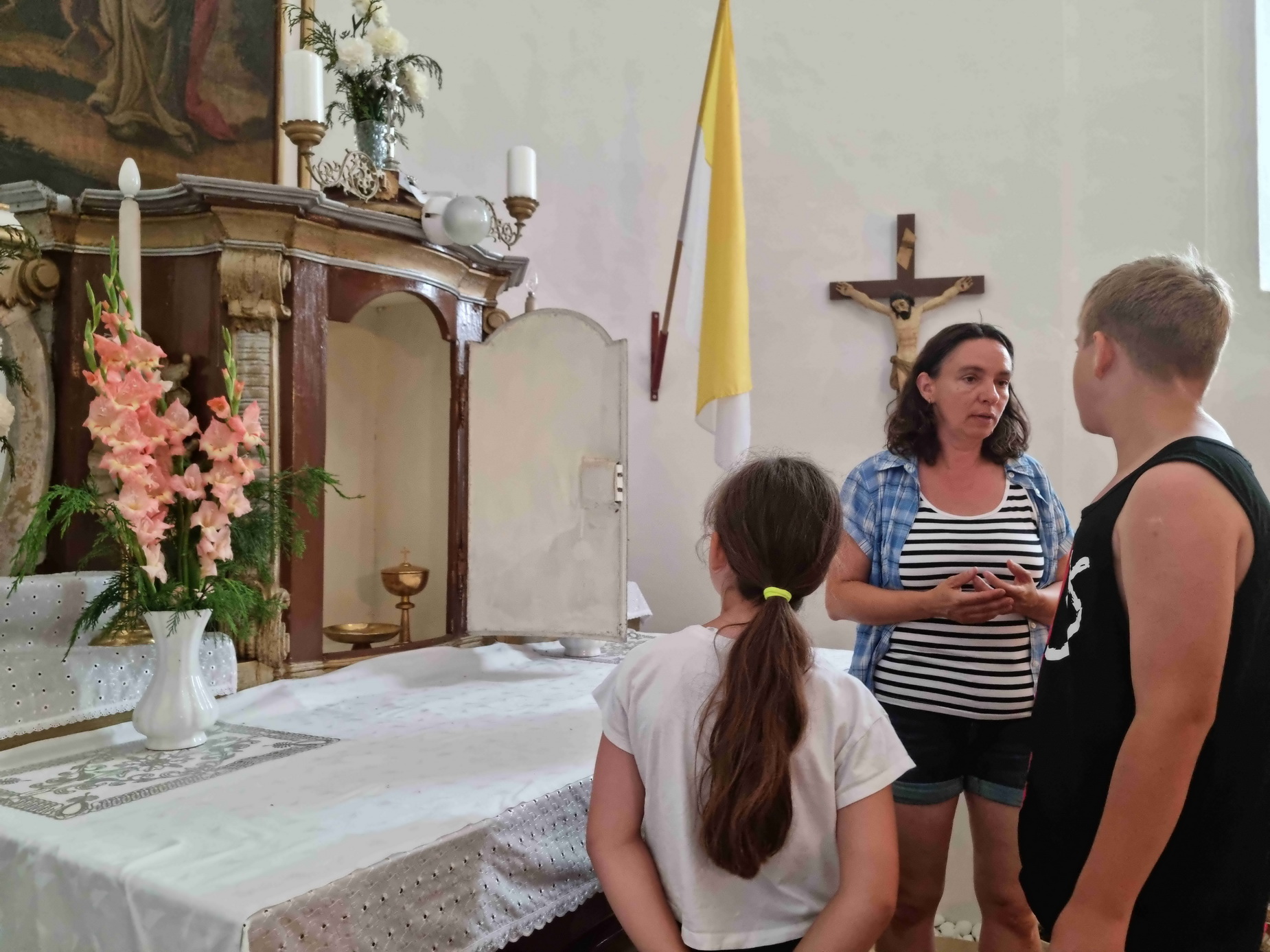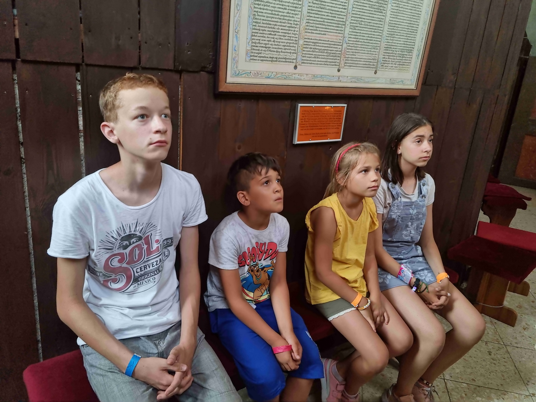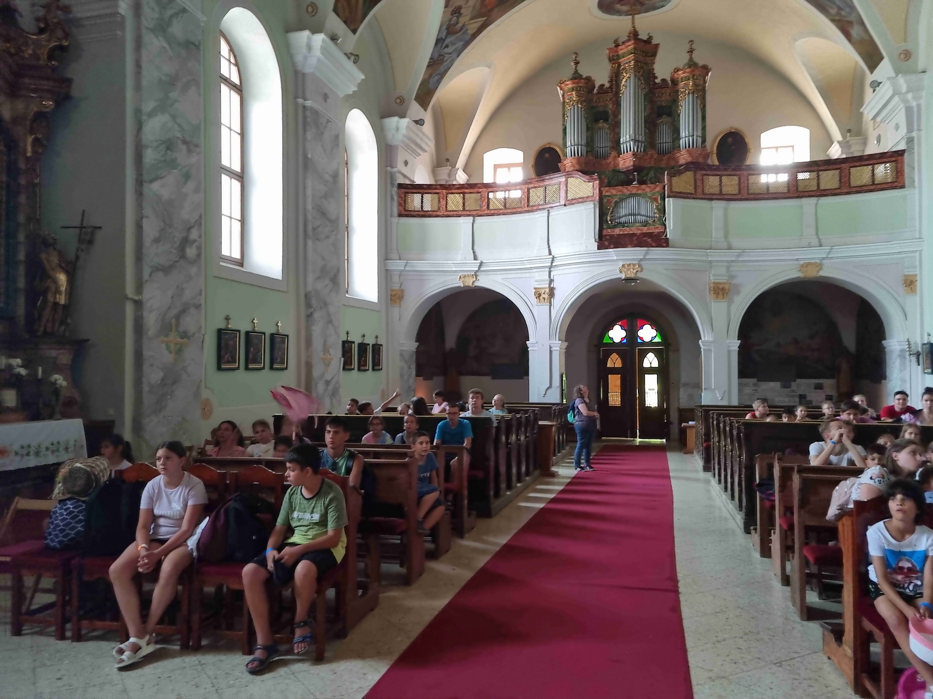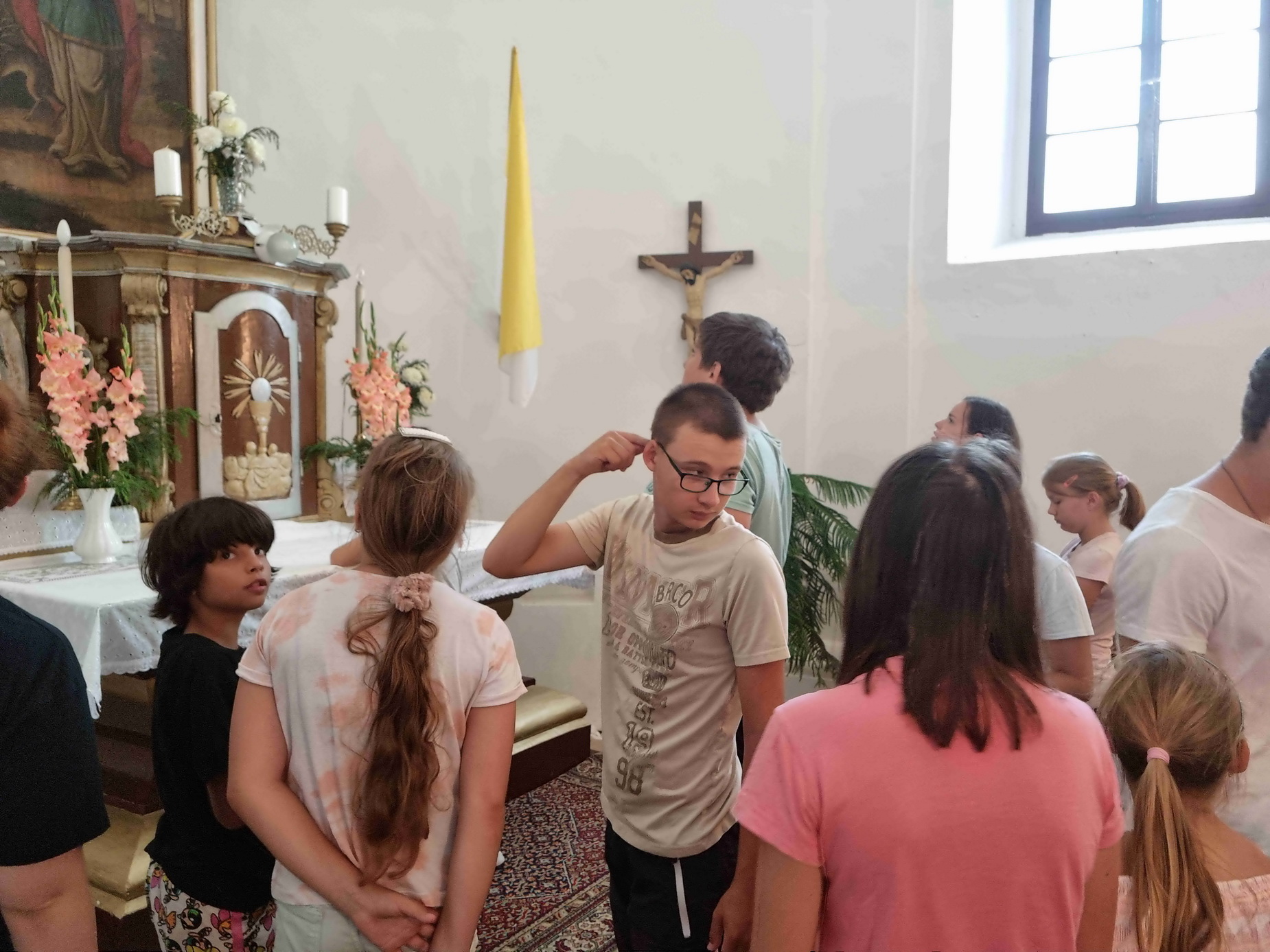 A szerdai napon a város legújabb építésű, a Boldog Gizella templomnál gyülekeztek a hittanosok, akiket reggeli tornával vártak a hitoktatók. Majd pedig bent a templomismertetőt Kiss Kálmán történész, a plébánia irodavezetője mondta el, kiemelve a védőszent és Szent István király szerepét. Végül az altemplomban lévő temetőt szintén megnézhették a kíváncsi gyermekszemek, akik egy imát is elmondtak nemcsak az ott nyugvók lelki üdvéért, hanem mindenki a saját elhunyt hozzátartozójáért is.
