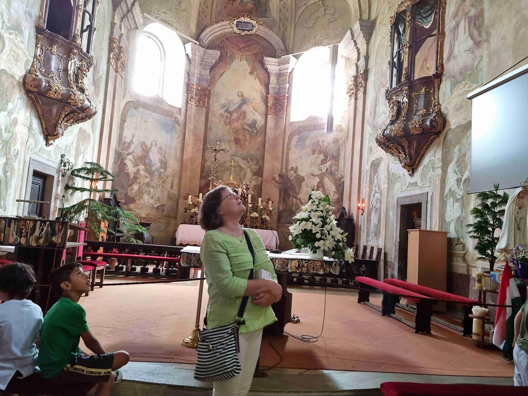 Hétfőn, az első napon a Gyümölcsoltó Boldogasszony Plébániatemplom históriáját Tombor Erzsébet hitoktatónő ismertette, majd pedig a gyermekek kívülről és belülről is felfedezhették a régi épület rejtelmeit: megtekintették a kórust az orgonákkal, az oratóriumot az egyházközség állandó kiállításával, valamint a sekrestyében a Prágai kis Jézus szobrának a ruháit csodálták meg. A négy csapatra osztott társaság külön-külön feladatokat oldott meg, miközben betekinthettek a keresztelési anyakönyvekbe is.