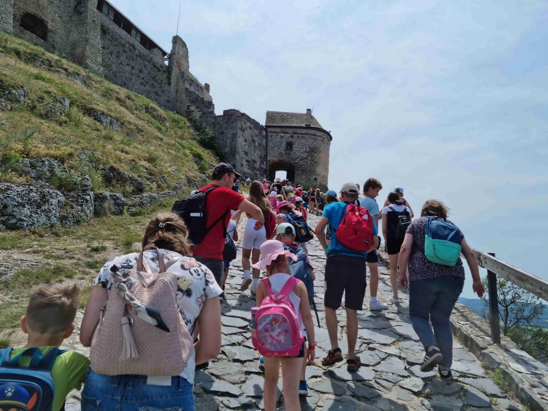 A keddi szintén rekkenő hőségben eltöltött napot a sümegi buszos-vonatos kirándulás tette emlékezetessé a nebulók számára, miközben megtekintették az ottani Urunk mennybemenetele plébánia-, illetve a ferences Sarlós Boldogasszony kegytemplomot is. Ezen kívül nagy élményt jelentett a vár „meghódítása” is, ahol újabb élményekkel, látnivalókkal gazdagodtak a gyermekek.