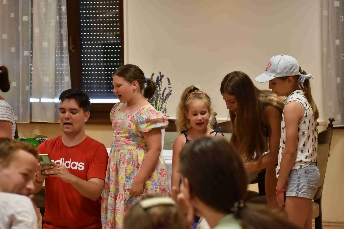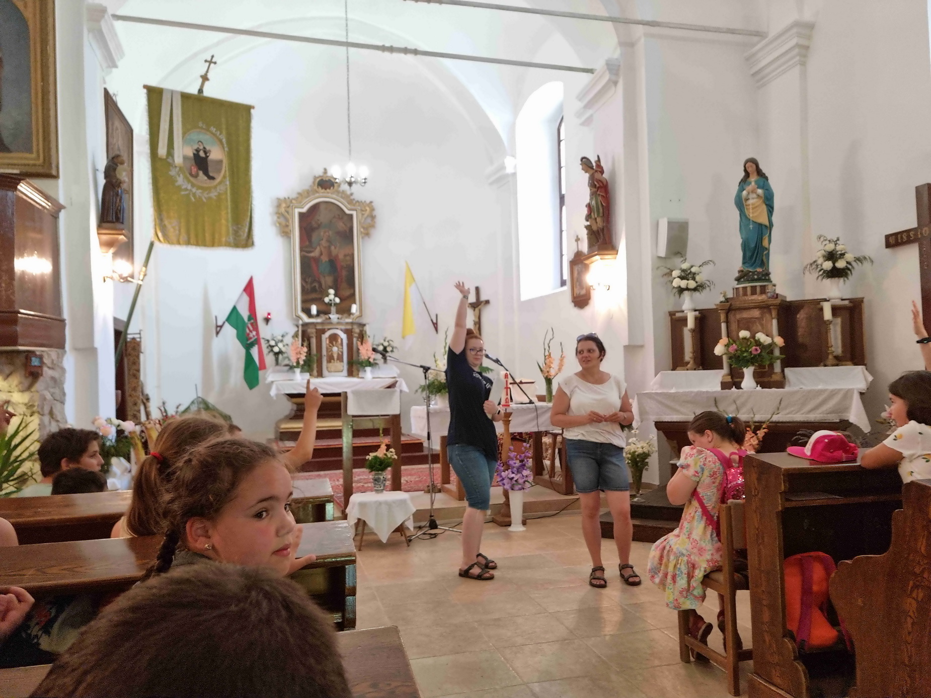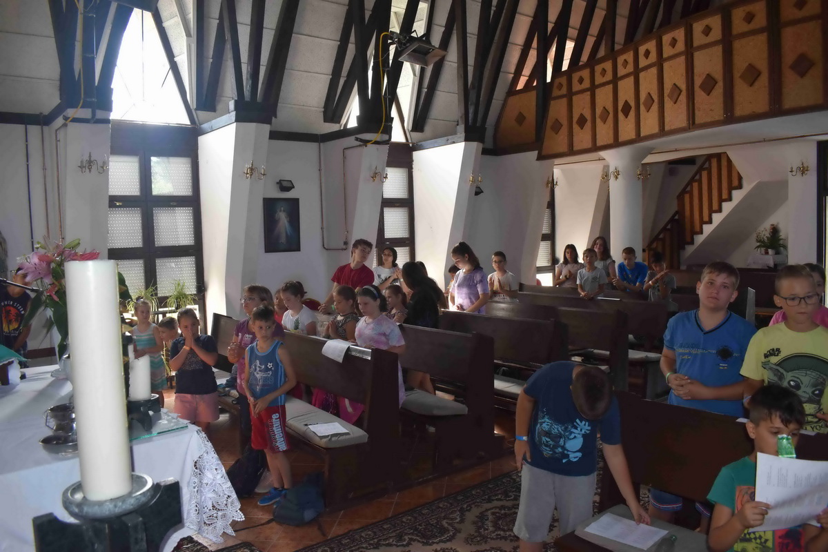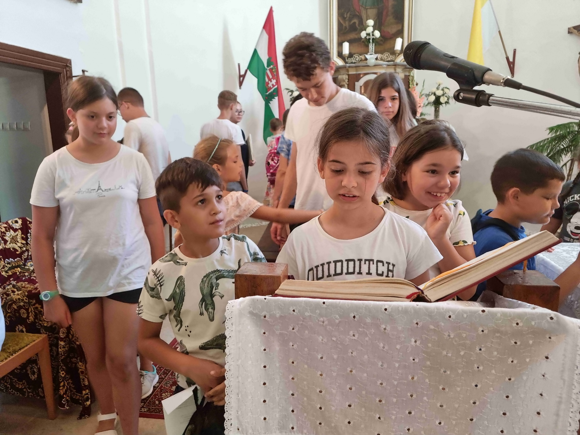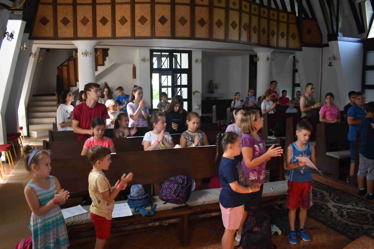 Július 4-én, vasárnap a 9 órás ünnepi szentmisével zárult az idei napközis hittanos tábor, ahol Iván atya, a hitoktatók, a segítők és a gyermekek is hálát adtak Istennek a sikeresen megvalósult tartalmas programért.