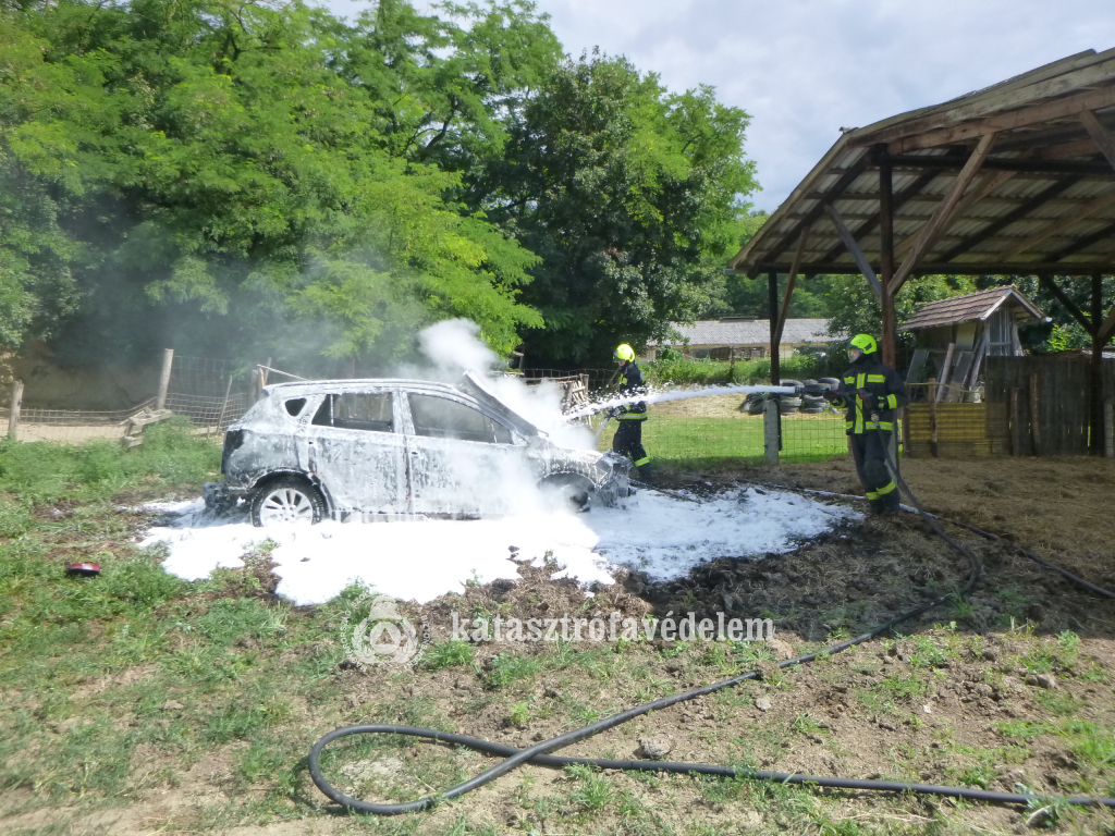 Pénteken egy személygépjármű égett teljes terjedelmében Kaposszerdahelyen. A kaposvári hivatásos tűzoltók két vízsugárral oltották el a tüzet és akadályozták meg, hogy a lángok továbbterjedjenek a közeli tárolóra.