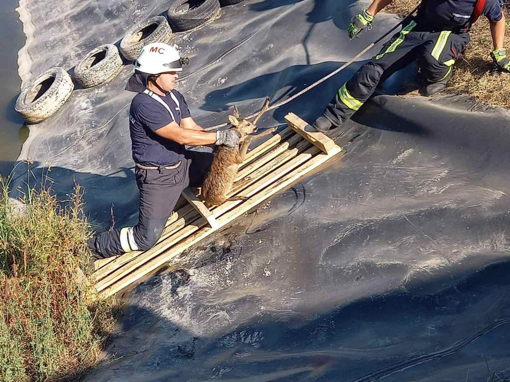 Marcaliban egy víztározóba esett őzet mentettek meg a város hivatásos tűzoltói.