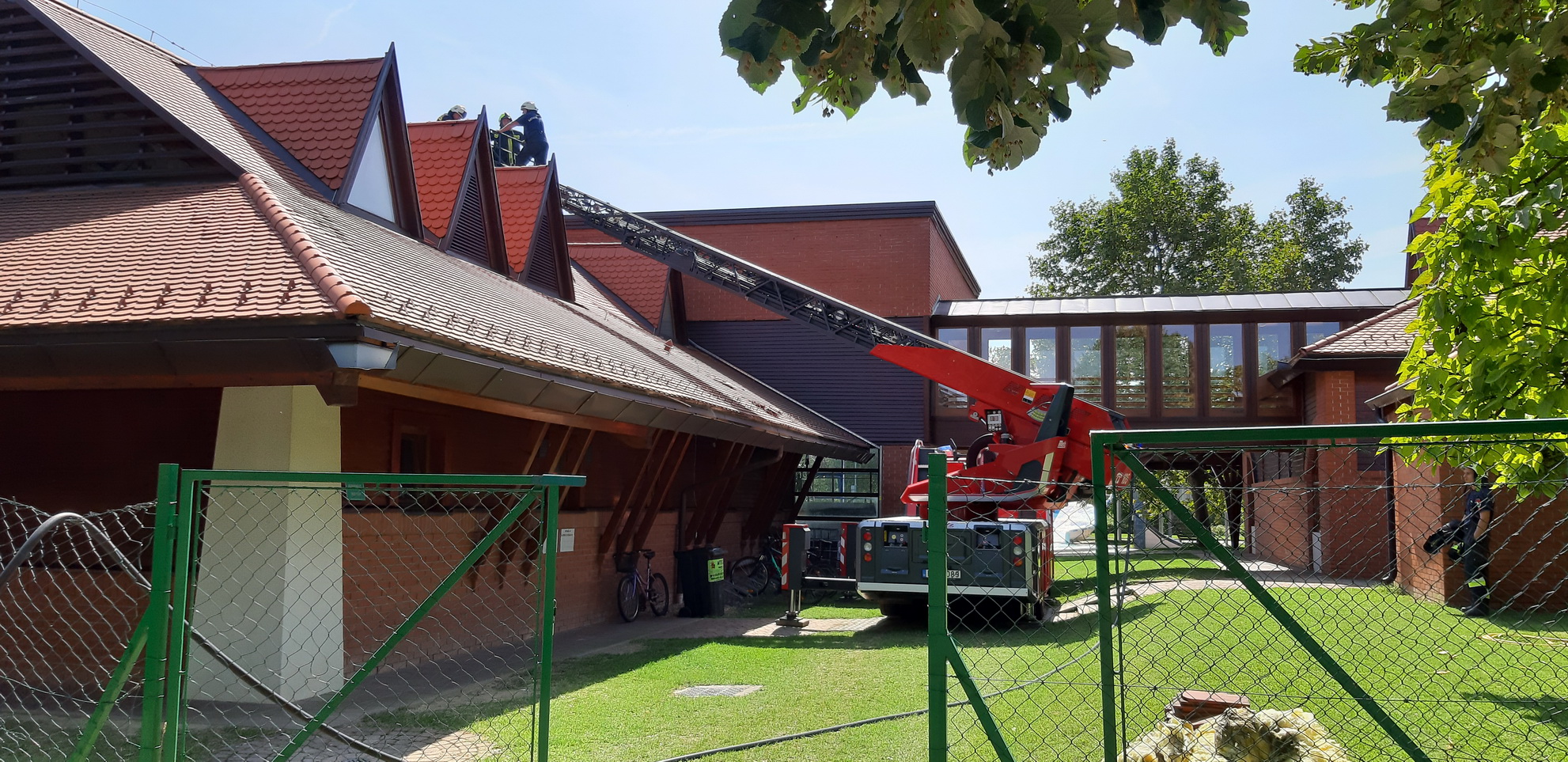 Egy elektromos kapcsolószekrényben keletkezett tűz Marcali fürdőjében, a Rózsa utcában. A lángok belekaptak az épület tetőszerkezetébe is. Az oltást a dolgozók porral oltóval megkezdték, a tüzet a város hivatásos tűzoltói egy vízsugárral fékezték meg. A fürdőt az egység kiérkezése előtt kiürítették. Az esetleges izzások feltárása érdekében a rajok megbontják és átvizsgálják a tetőhéjazatot.