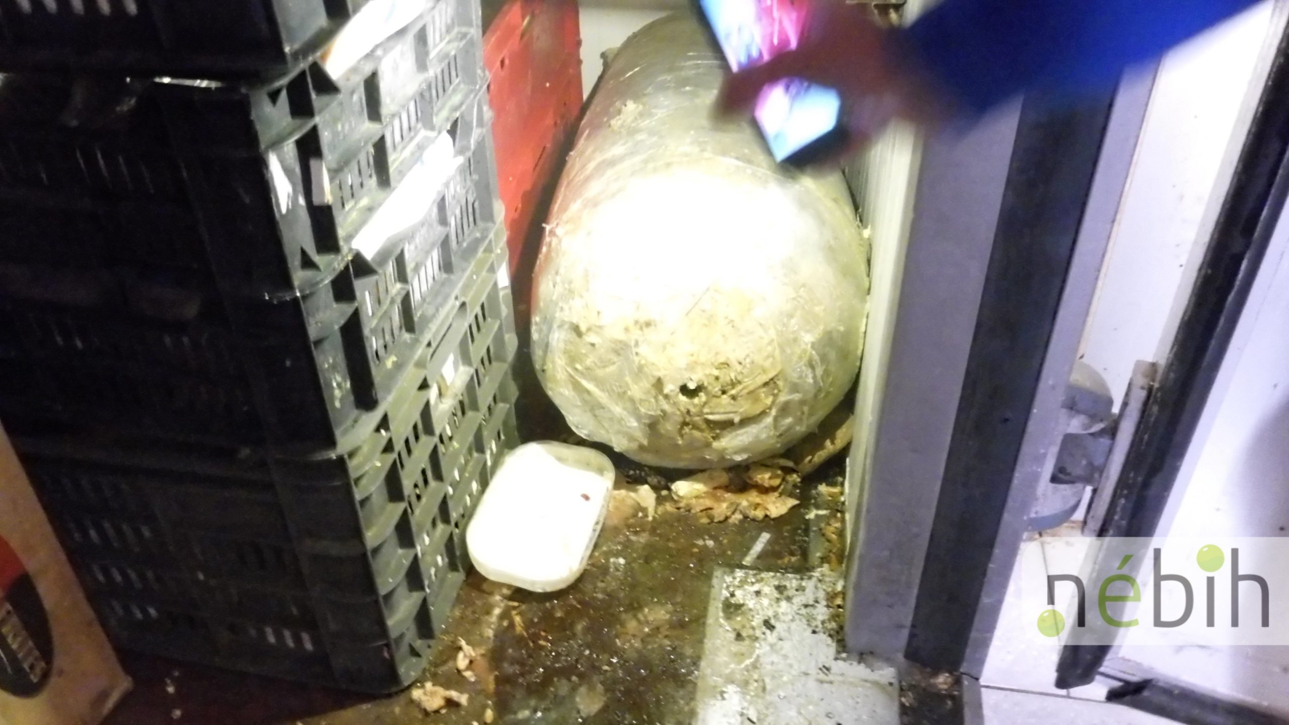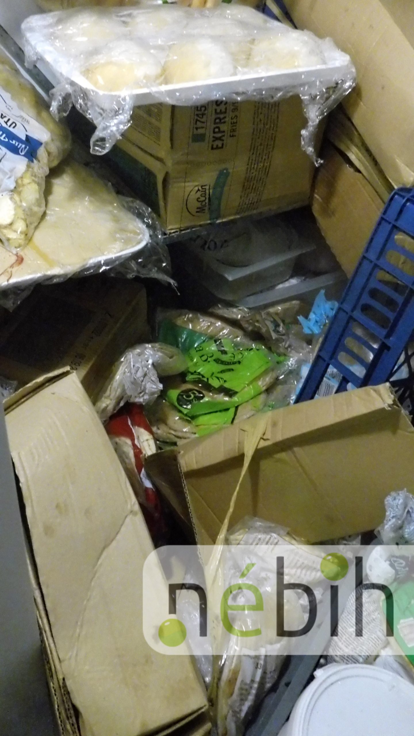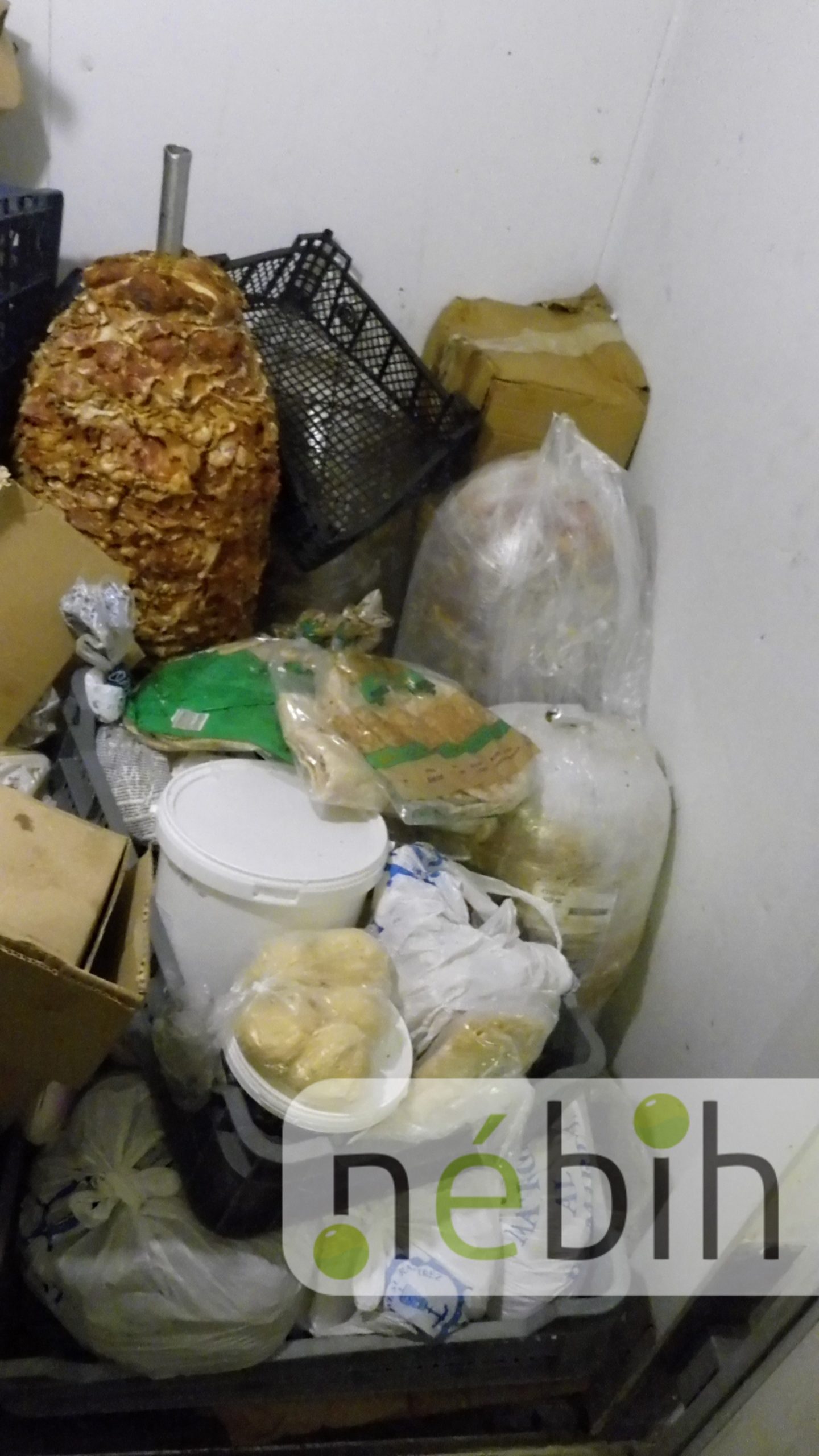 A fekete mosogató helyiségben a mosogató feletti mennyezetről pergett a vakolat, a hűtőkamrák teteje poros, a helyiség oldalfalai koszosak voltak. További problémát jelentett, hogy a hűtőterekben eltérő higiéniai megítélésű élelmiszereket, így földesárut, készételt és tejterméket tároltak együtt, kitéve őket a szennyeződés veszélyének. Mindezek mellett az ellenőrök csaknem 500 kg jelöletlen, nem nyomonkövethető fagyasztott gyroshúst és több mint 120 kg jelöletlen, nem nyomonkövethető fagyasztott birkahúst találtak az egységben.