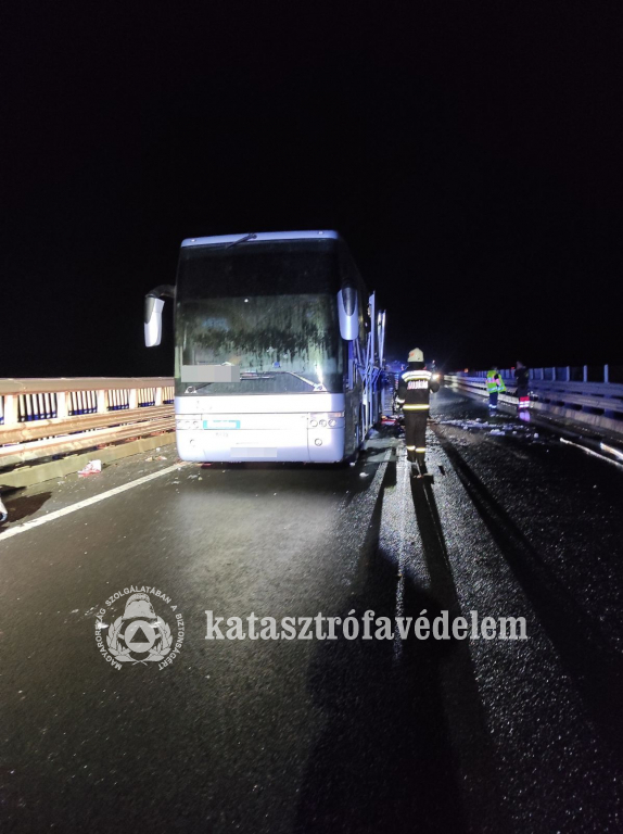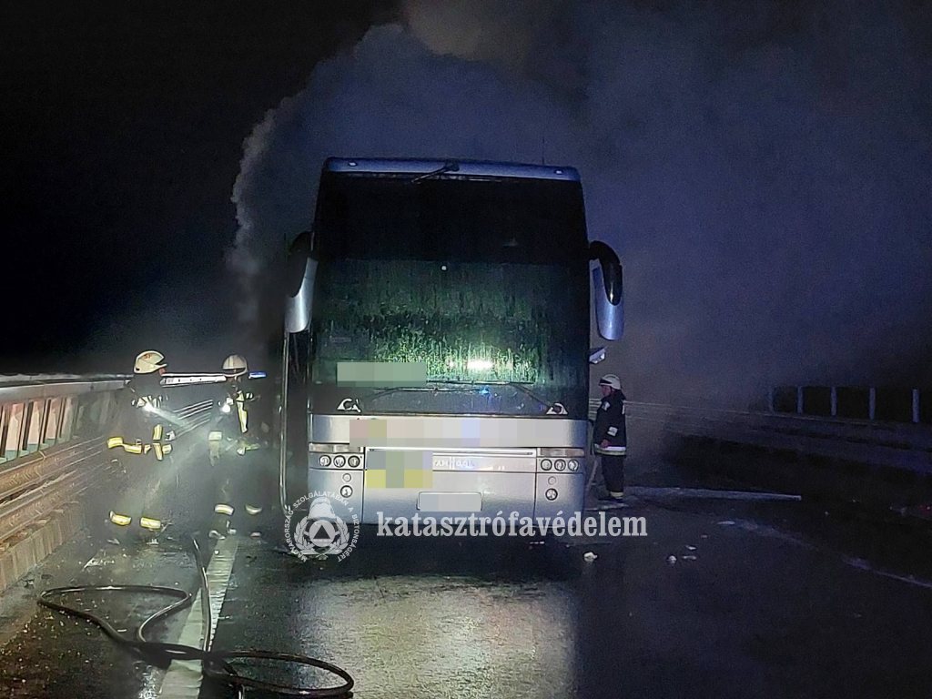 Teljes terjedelmében égett egy autóbusz vasárnap este az M7-es autópálya Budapest felé vezető oldalán, a kőröshegyi völgyhídon.