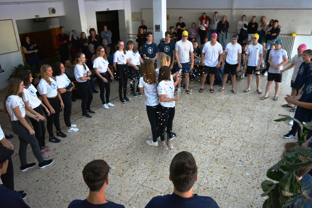Pénteken a 9.B osztály fergeteges bemutatkozó műsorával kezdődött a Diáknap és Gólyaavató rendezvény a Diákönkormányzat szervezésében.