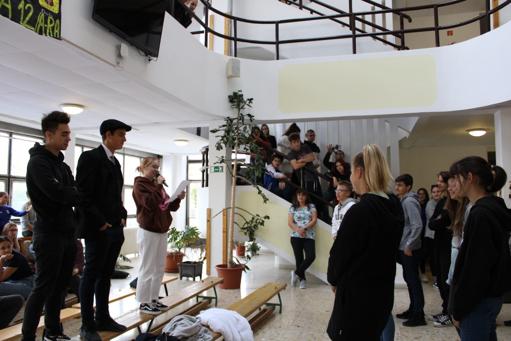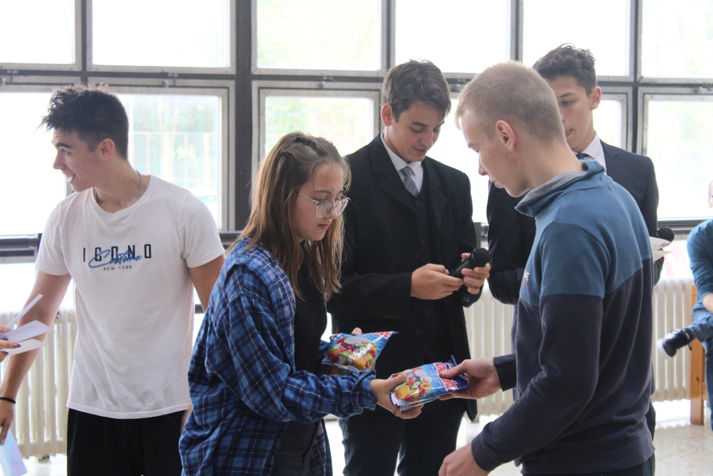 A 11.B osztály által szervezett Aulás vetélkedőn az osztályok csapatai mérték össze tudásukat. A Gimnázium rejtett titkaival kapcsolatosan eddig megszerzett ismereteiket tudták kamatoztatni a megmérettetésen. A Tanárok csapata is kitett magáért és a tanulók lelkesedését helyenként felülmúlva oldották meg a feladatokat – nagy sikert aratva a diákság körében. A vetélkedő jutalmazásához a Vincze ABC is hozzájárult. Köszönjük szépen!