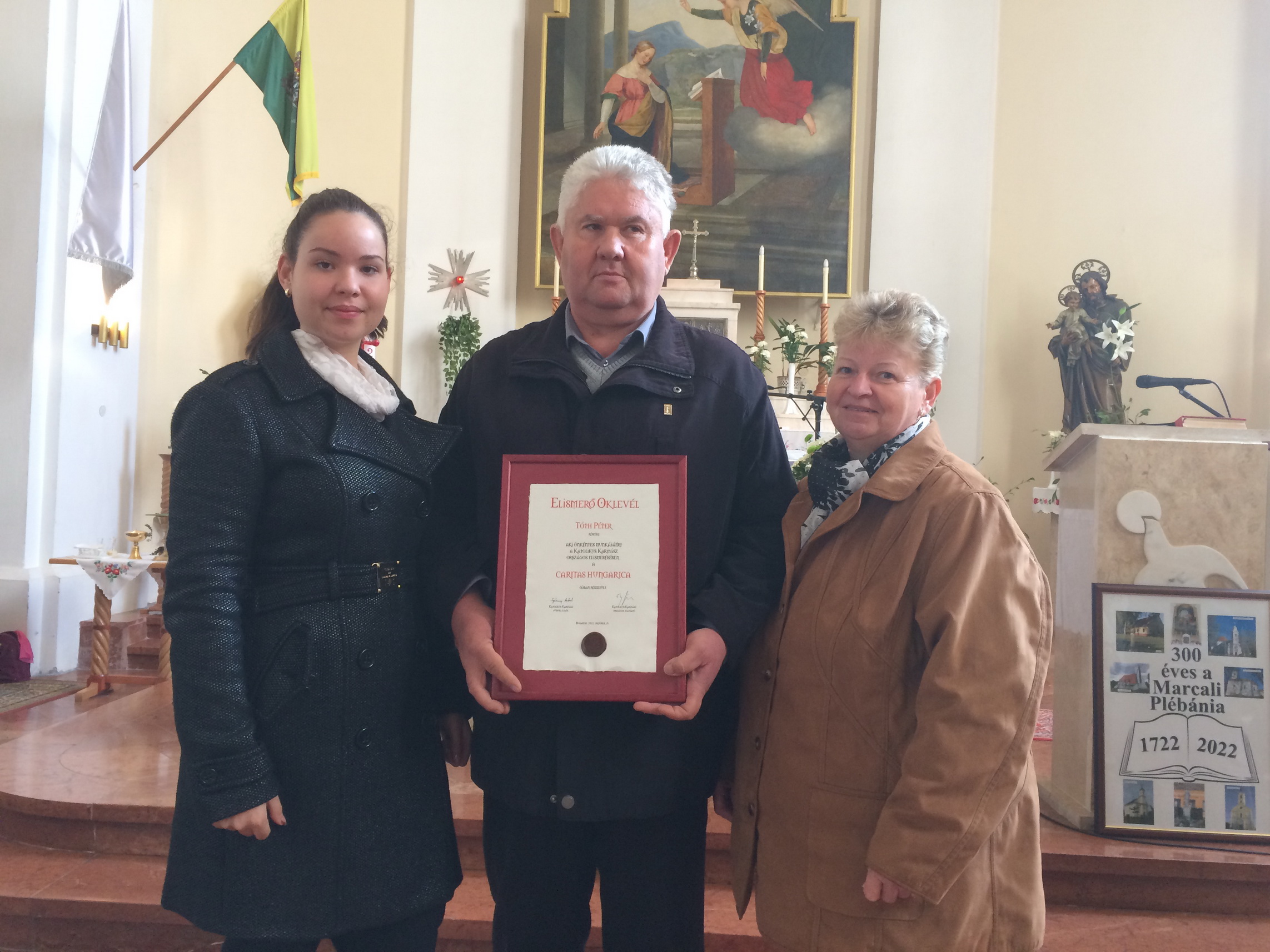 2022. október 15-én, szombaton, Budapesten az újbudai Magyar Szentek Templomában ünnepi szentmise keretében adták át az idei év Caritas Hungarica kitüntetéseit azoknak az aktivistáknak, akik Katolikus Karitász keretein belül önkéntes munkával segítik a lakhelyük rászorulóit. Marcaliból a mostani alkalommal Tóth Péternek, a Marcali Karitász csoport helyettes vezetőjének ítélték oda és adták át a ragos elismerést.