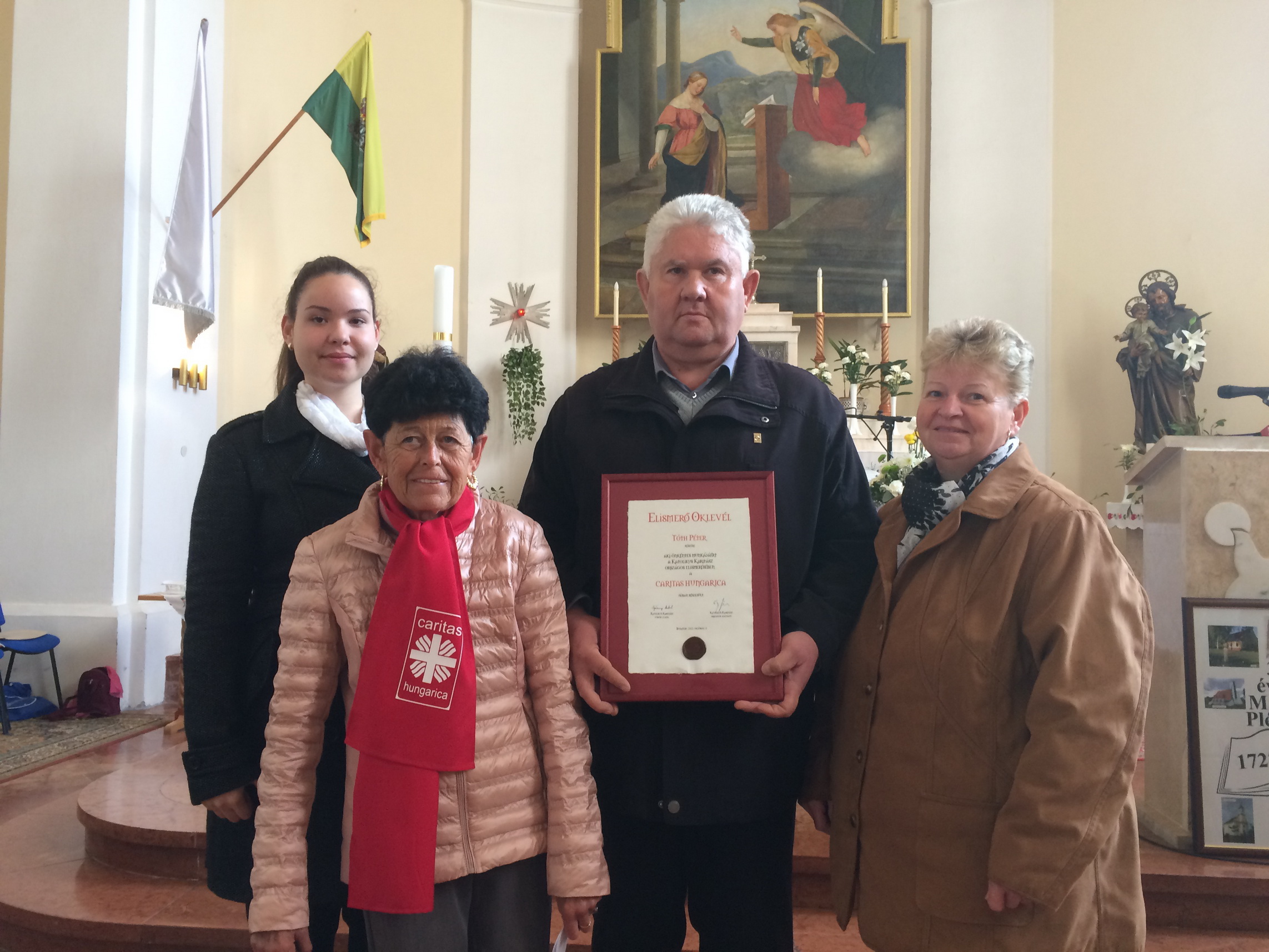 Az idei esztendőben összesen 36 karitász aktivista – szerte az országból – részesült a kitüntetésben, a Kaposvári Egyházmegyéből a marcali Tóth Péter mellett Merényi Vanda és Vajda Attiláné kapta meg a rangos elismerést.