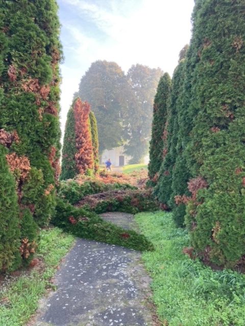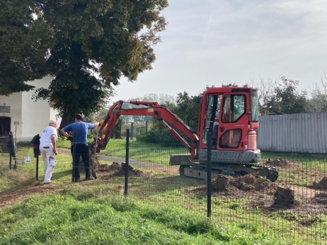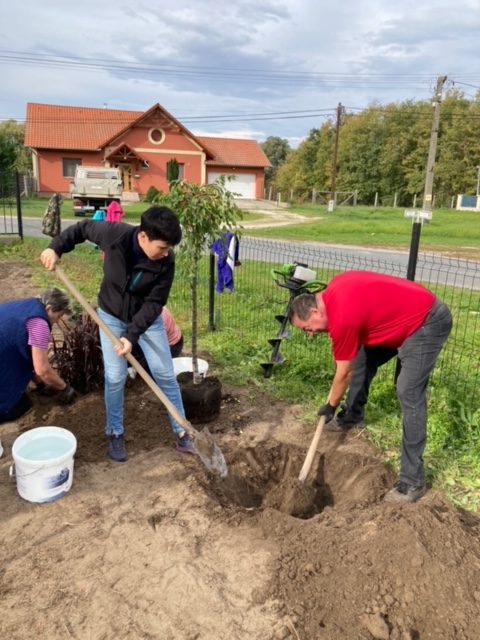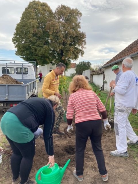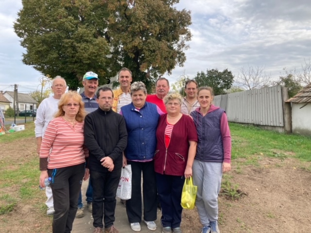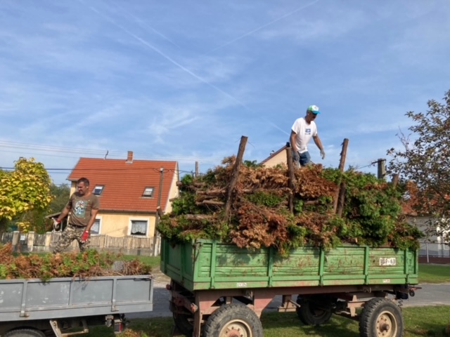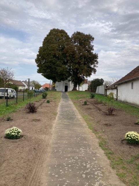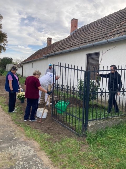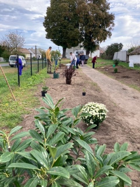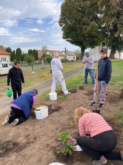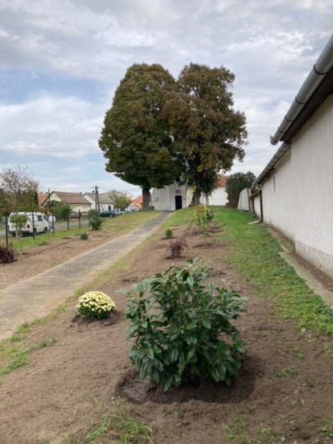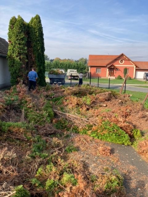 Két hétvégén is összegyűltek a lelkes segítők, hogy az öreg beteg tujákat eltávolítsák a templomkertből, majd új növényeket ültessenek a helyükre.