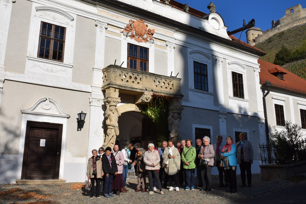 Röpke fél óra után máris a Sümegen voltunk a barokk püspöki palota előtt, melyet újjászületése után 2021 őszén adtak át a látogató közönségnek. Az épület kívül, belül nagyon szép, látványos. Teremről teremre járva tárul elénk 18. század társadalmának élete,