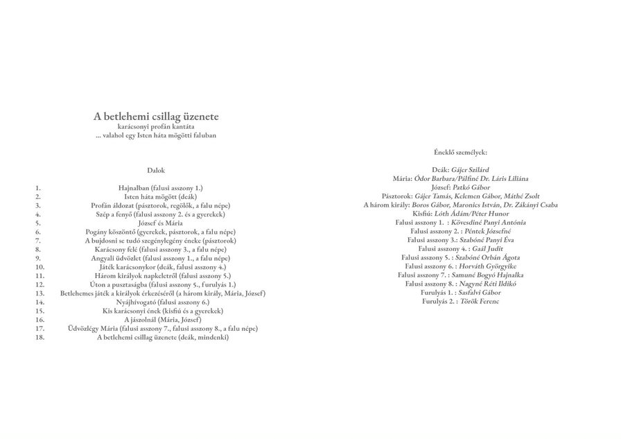 Hálásak vagyunk Zsirai Tibornak a plakát, a meghívók, a műsorfüzet grafikai munkáiért, valamint a rengeteg fotóért, amelyek révén a próbák és az előadások pillanatait is megörökítette számunkra.