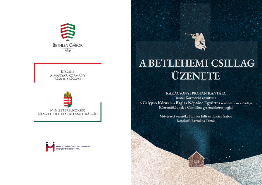 A betlehemi csillag üzenete című karácsonyi kantáta a Kormorán együttes 1989-ben megjelent darabja. Színpadra állítása Marcaliban Stamler Edit karnagy számára régóta dédelgetett álom volt. A megvalósításra azzal nyílt esély, hogy Marcali Város Önkormányzatától javaslat érkezett a Baglas Néptánc Együttes és a Calypso Kórus közös műsorára. Az egyesületek vezetői egyeztettek, majd a kórusnak a Városi Civil Alaphoz benyújtott pályázatával ehhez a nagyszabású tervhez a forrást is elnyertük. Bár a nyári hónapokban a hőségtől szenvedtünk, megkezdtük a darab bemutatásának előkészületeit: kiosztottuk a szerepeket, és művészeti vezetőnk, Stamler Edit lekottázta a karácsonyi dalok kórus szólamait, mert az eredeti műhöz nem maradtak fenn sem a kották, sem a zenei alap.