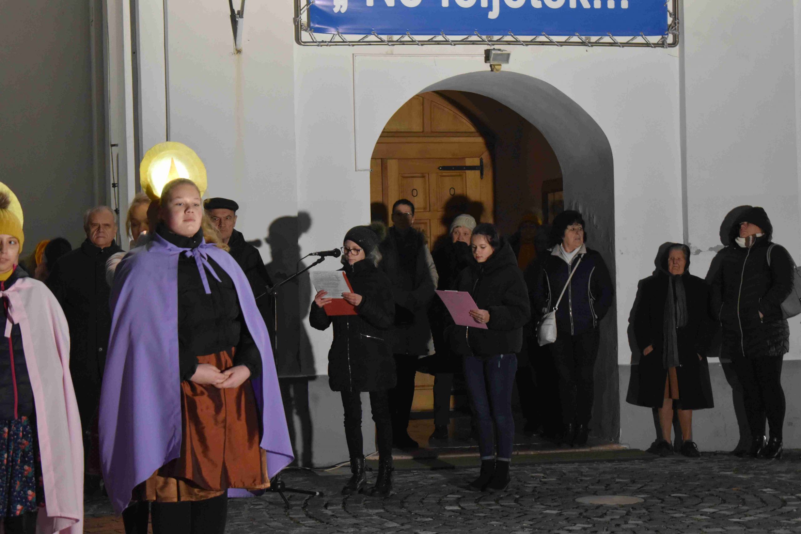 A megjelenteket Kiss Iván c. prépost, plébános köszöntötte, majd bevezető gondolataiután 10– zömében Noszlopys – tanuló adott elő verses-zenésösszeállítást, melyet Dr. Gyulainé Domján Zsuzsanna hitoktatónő tanított be a diákoknak, akik közül 7 hittanos, 3 művészeti iskolás gyermek volt.A műsor létrejöttében Takács Gáborné Edina pedagógus és Bojtorné Király Márta hitoktatónő működött közre.