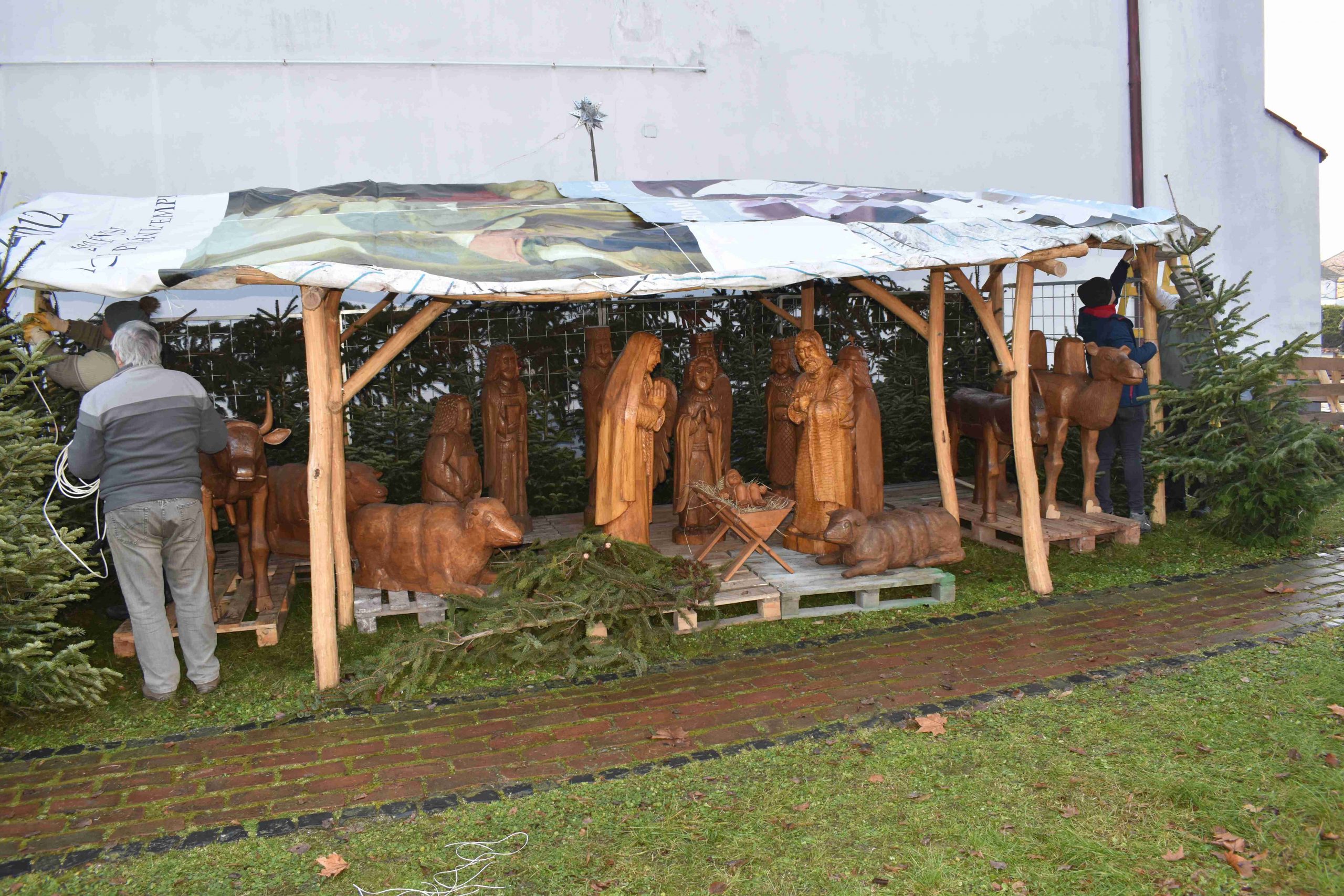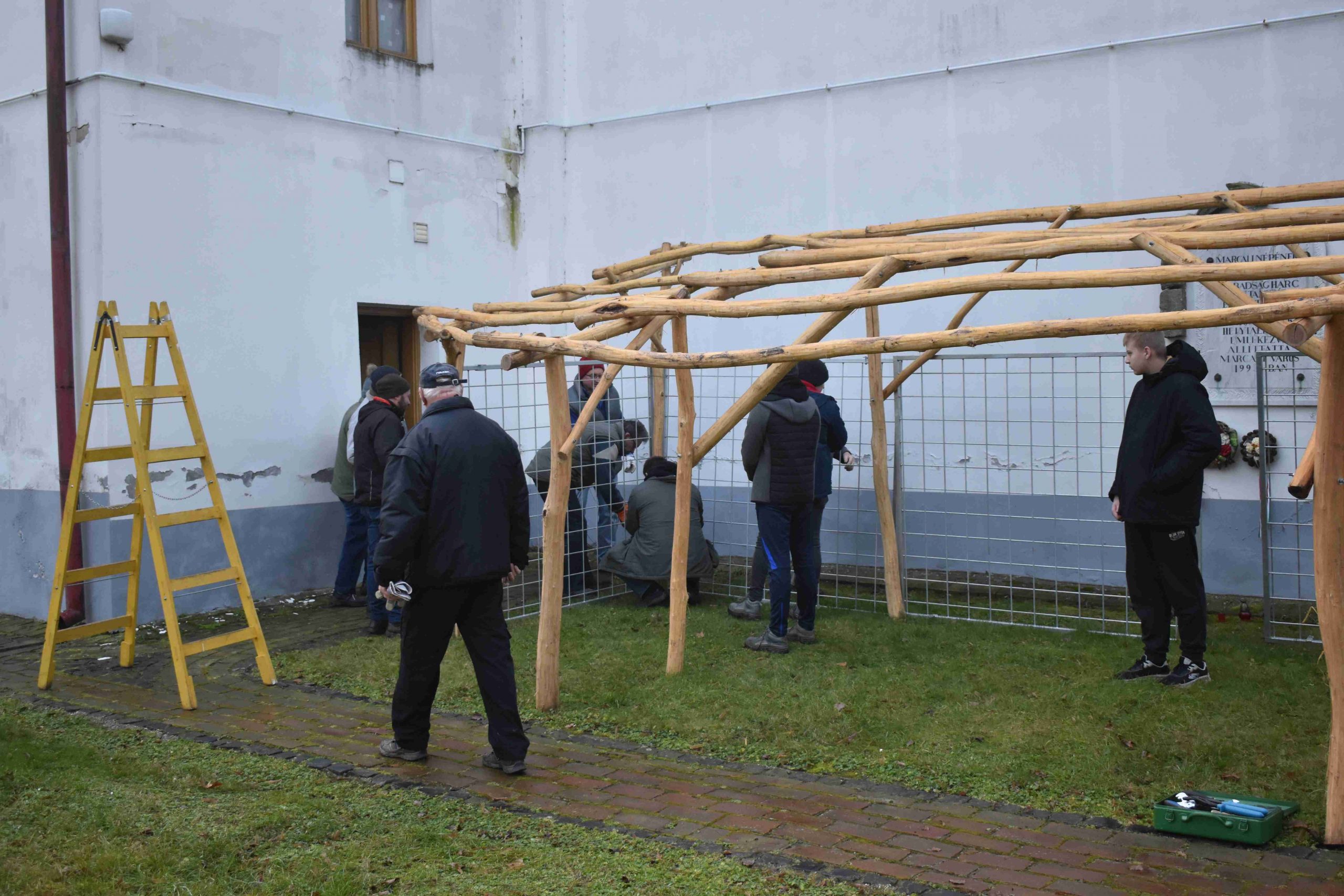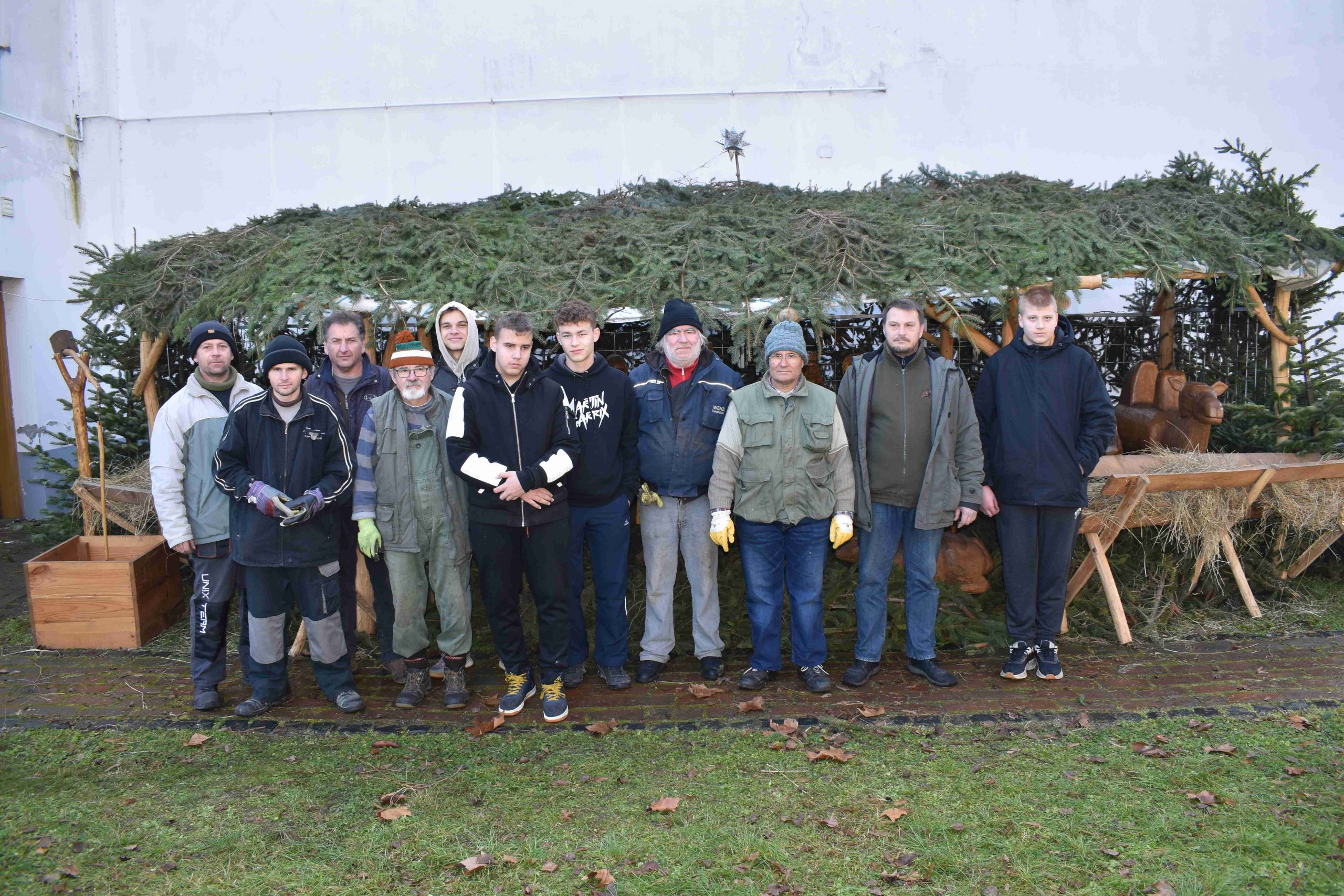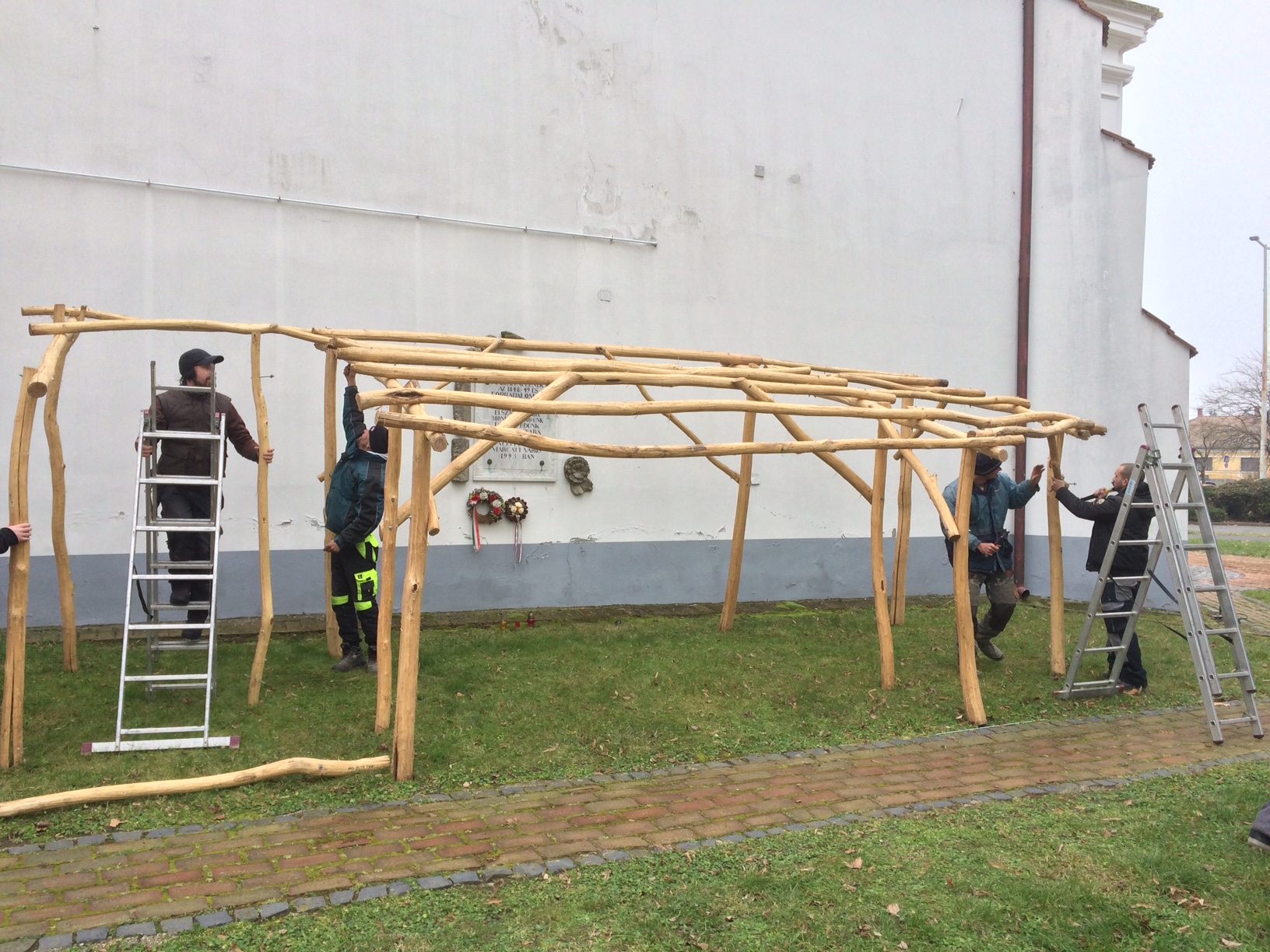 Elsőként 2022. december 21-én, szerdán délelőtt, rövid idő alatt épült el a betlehem akácfa-vázszerkezete, melyet Ságvári Róbert ácsmester és csapata, mindösszesen hét fővel ügyesen összeállított.