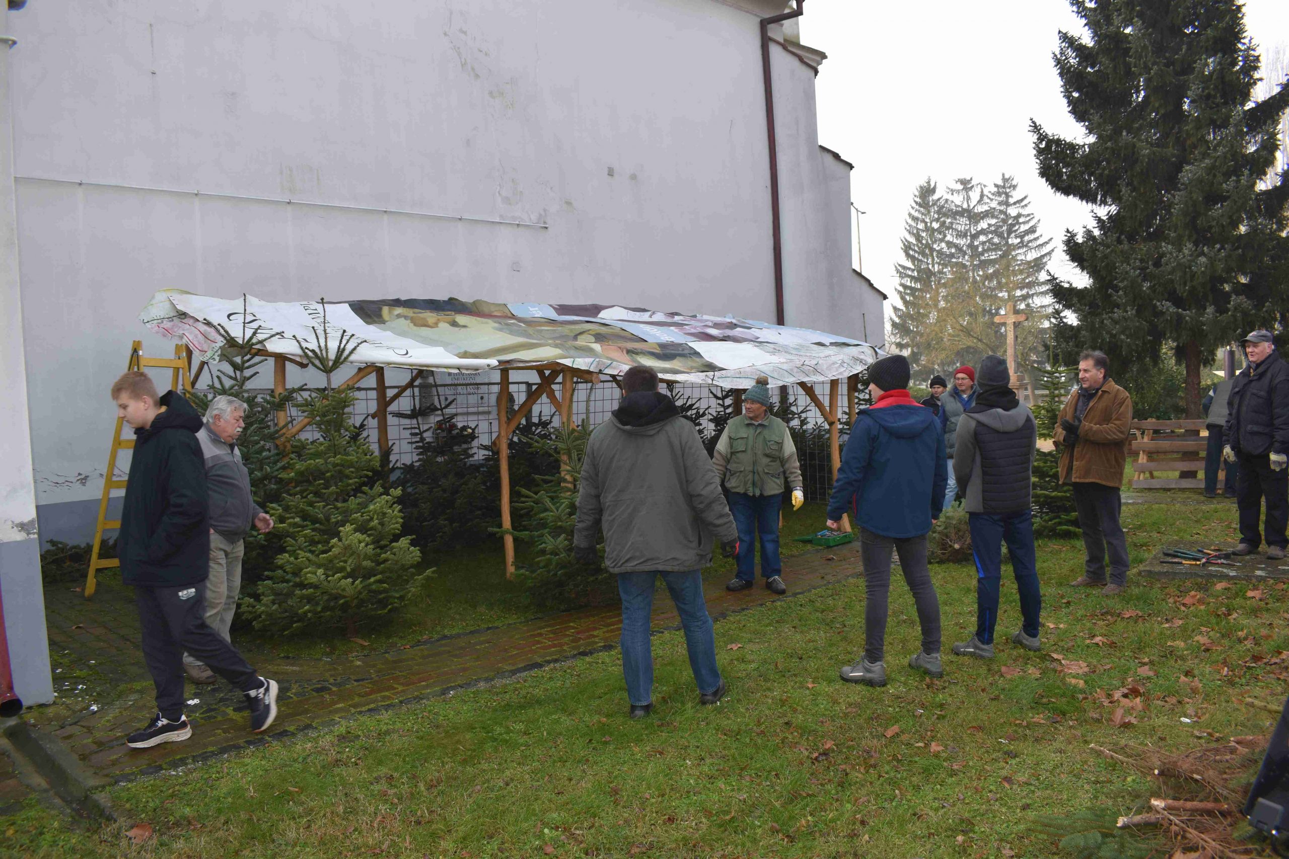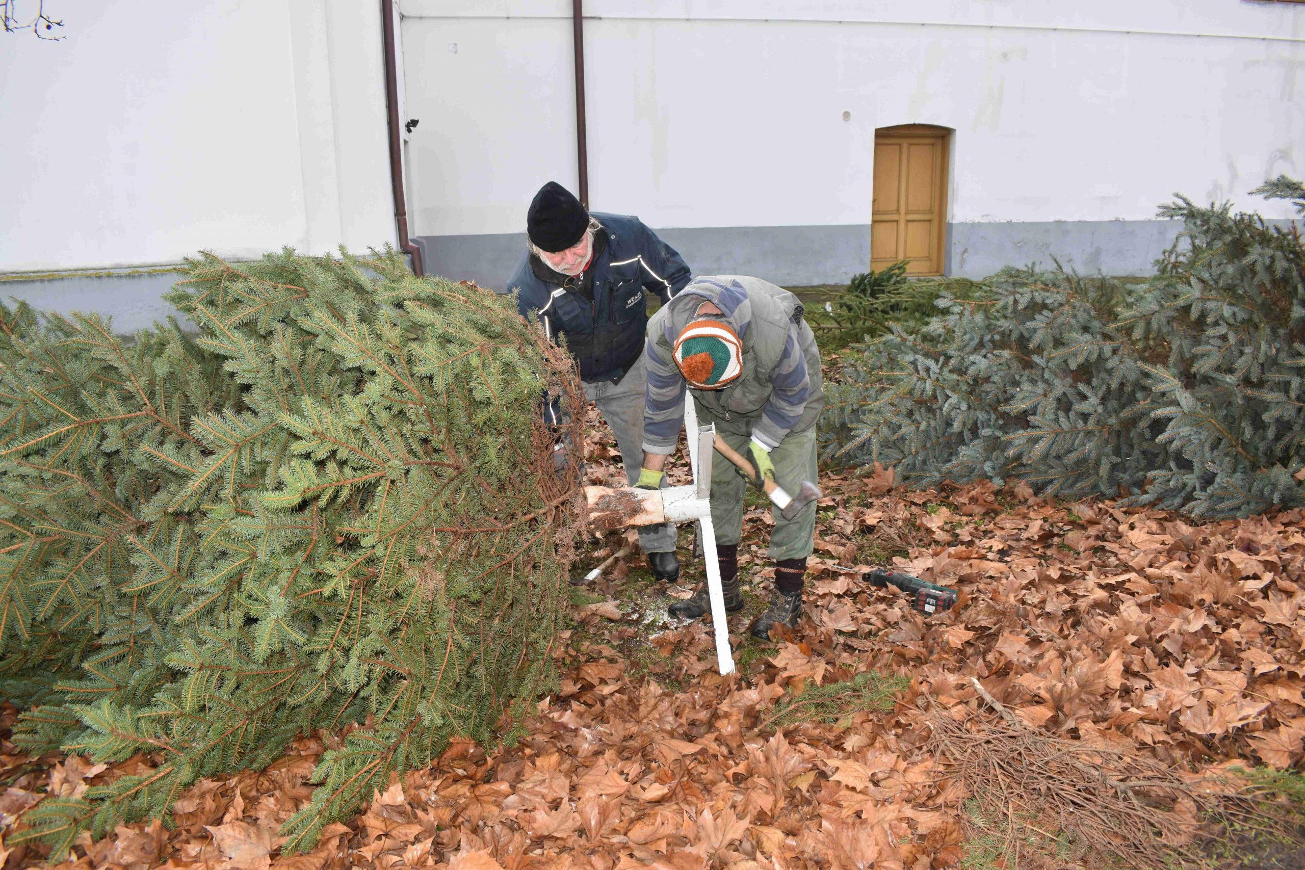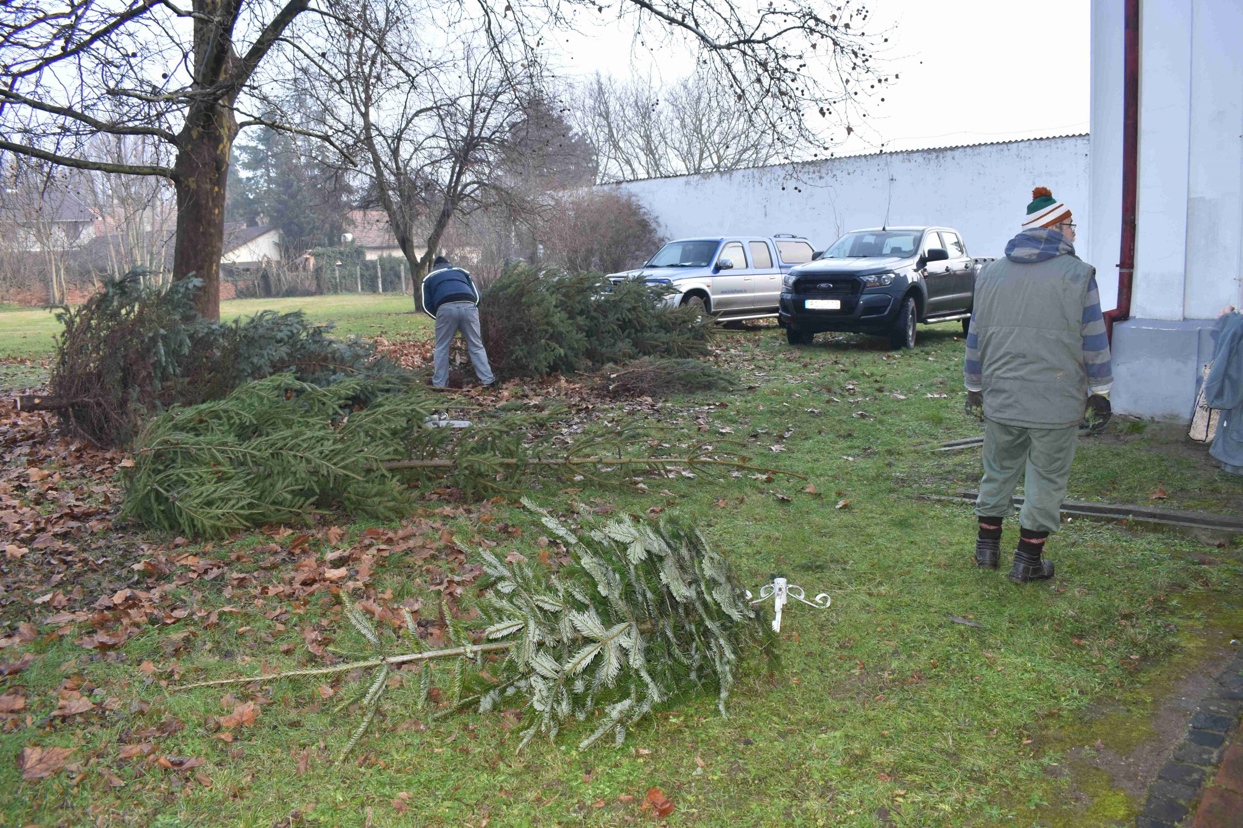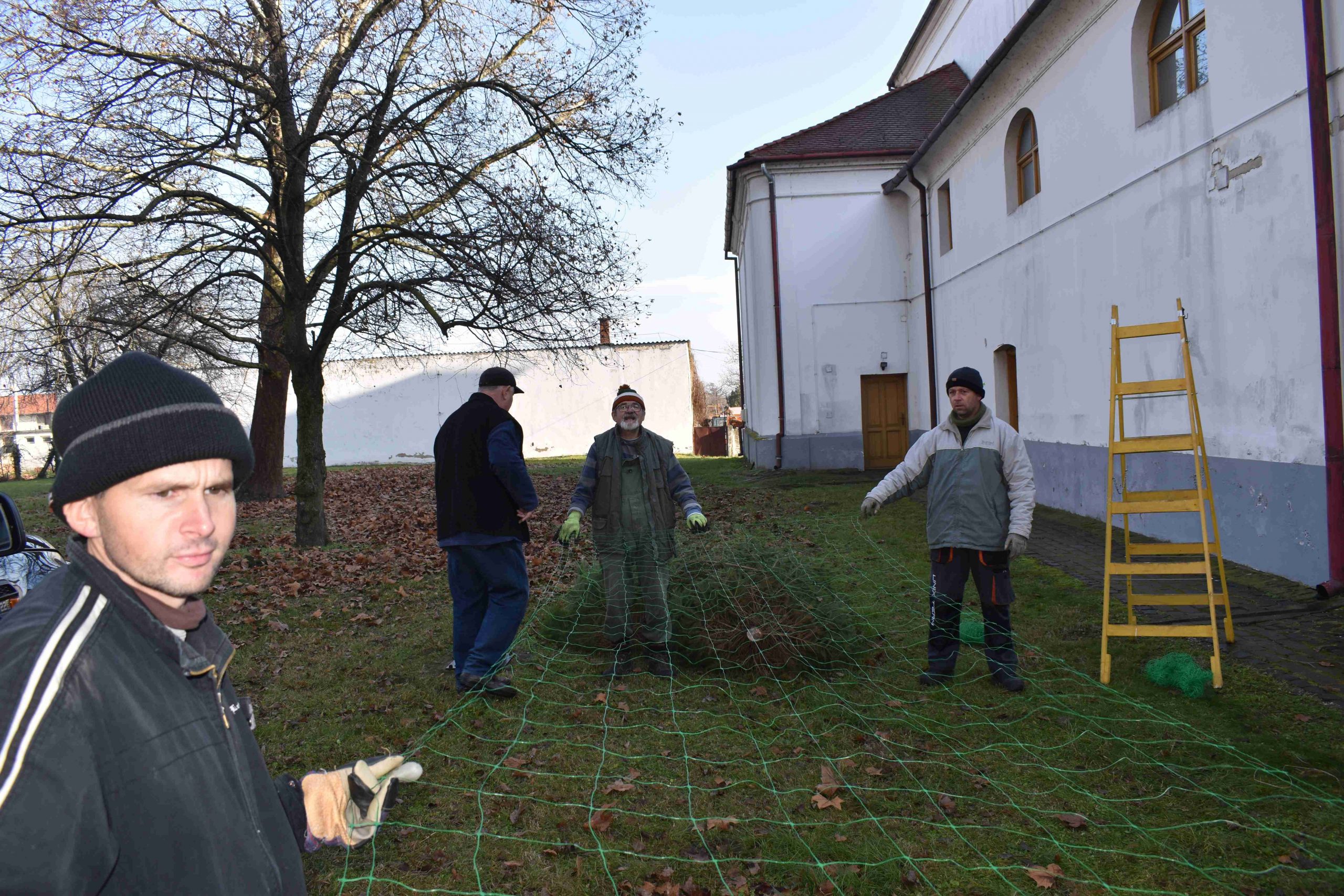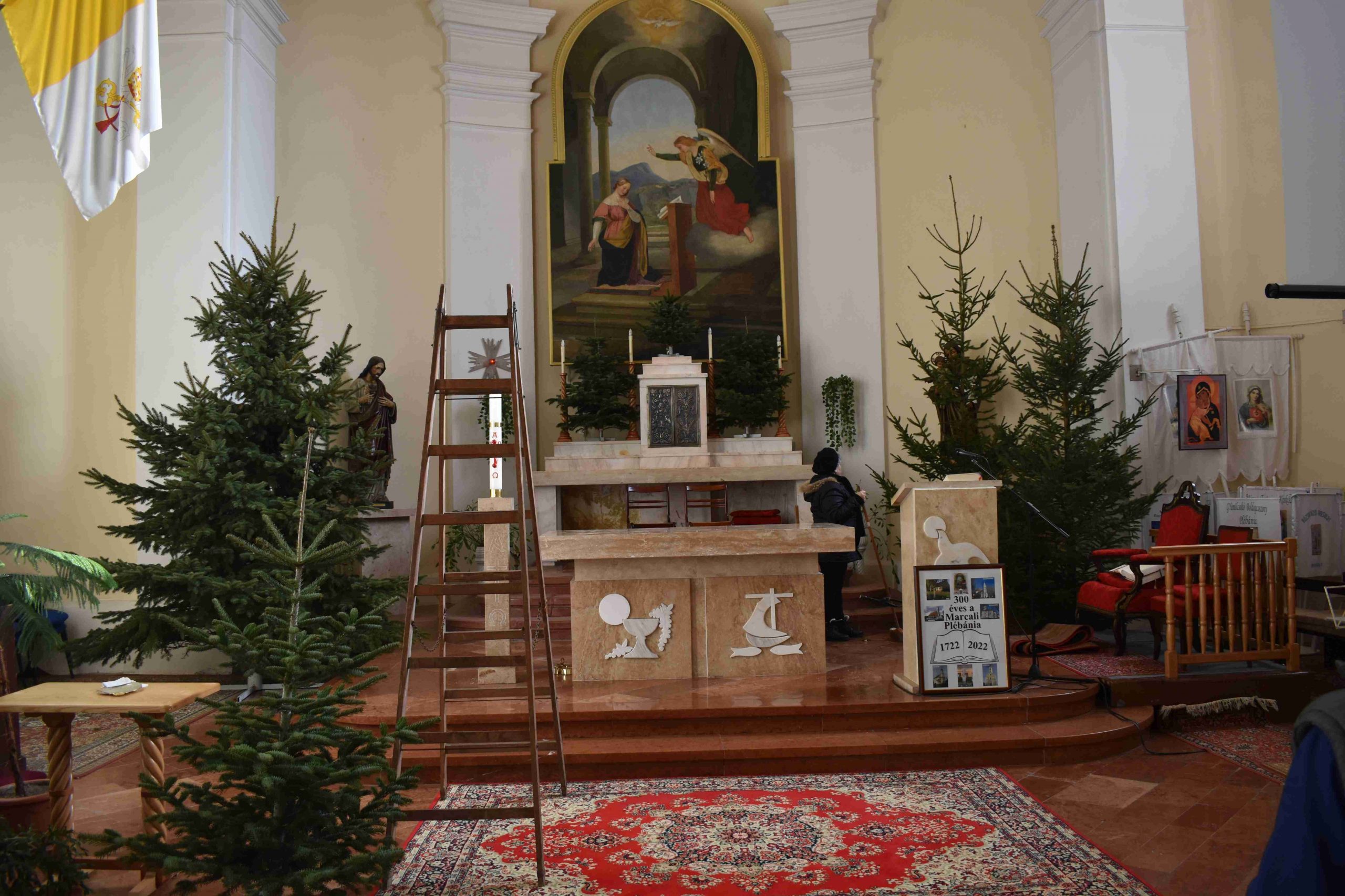 Közben a plébániatemplomban is helyükre kerültek a fenyőfák. A benti rendrakásban és a takarításban 3 imaköri tag segédkezett.