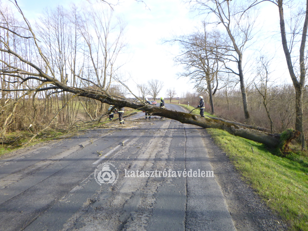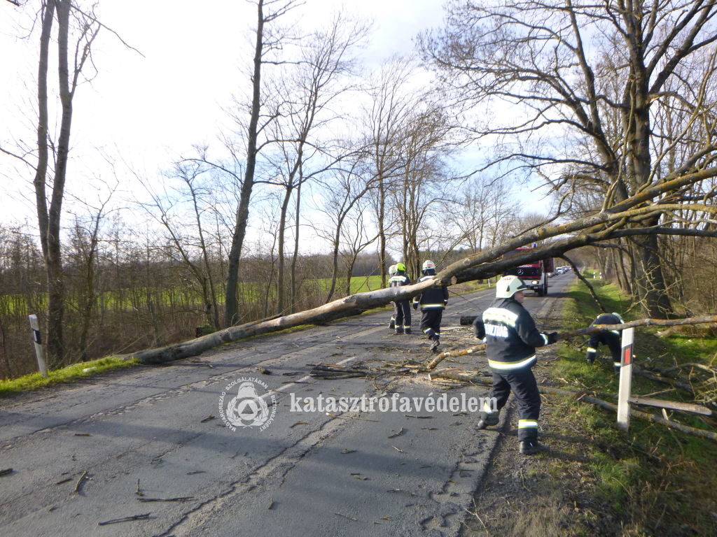 Vasárnap kidőlt egy húsz méter magas fa és teljesen elzárta az utat az arra közlekedők elől Lábod külterületén. A nagyatádi hivatásos tűzoltók motorfűrésszel feldarabolták a fát és megszüntették a forgalmi akadályt.