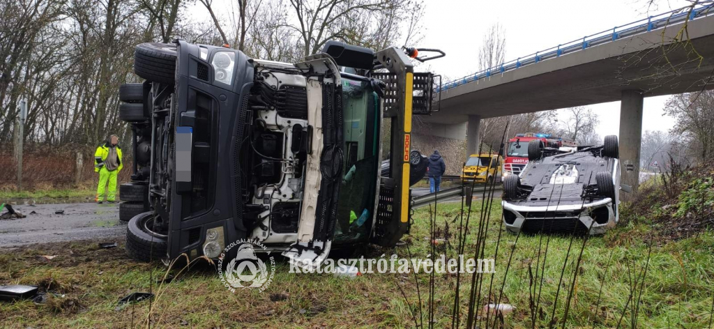 Felborult egy személyautókat szállító kamion a hét első napján, a 7-es főúton, Siófok térségében.