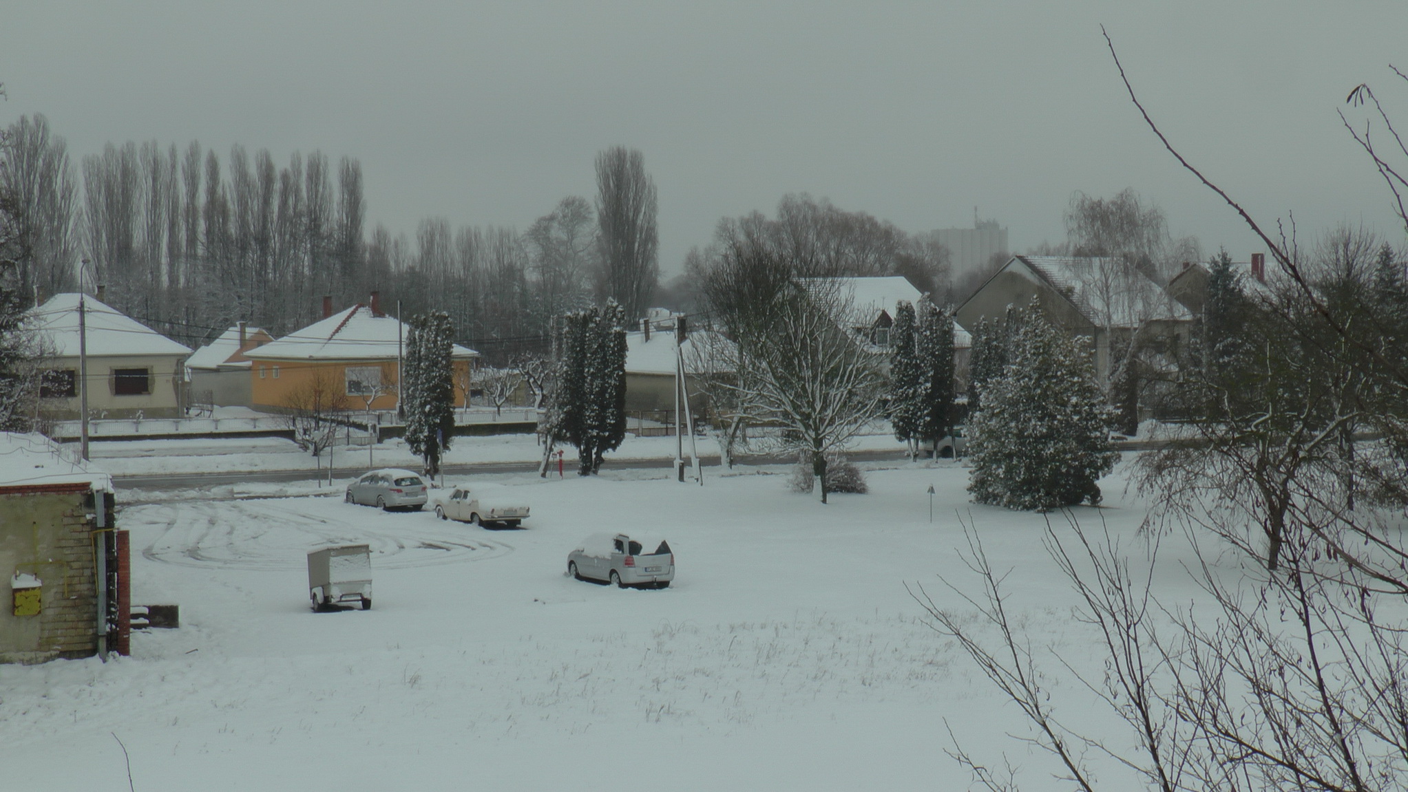 Vasárnap reggelre 10 cm friss hó esett Marcaliban, igy elő kerültek a szánkók is. A havazés elállt és sajnos a hó is olvadi kezdett, mivel most napközben már +1 fok van.